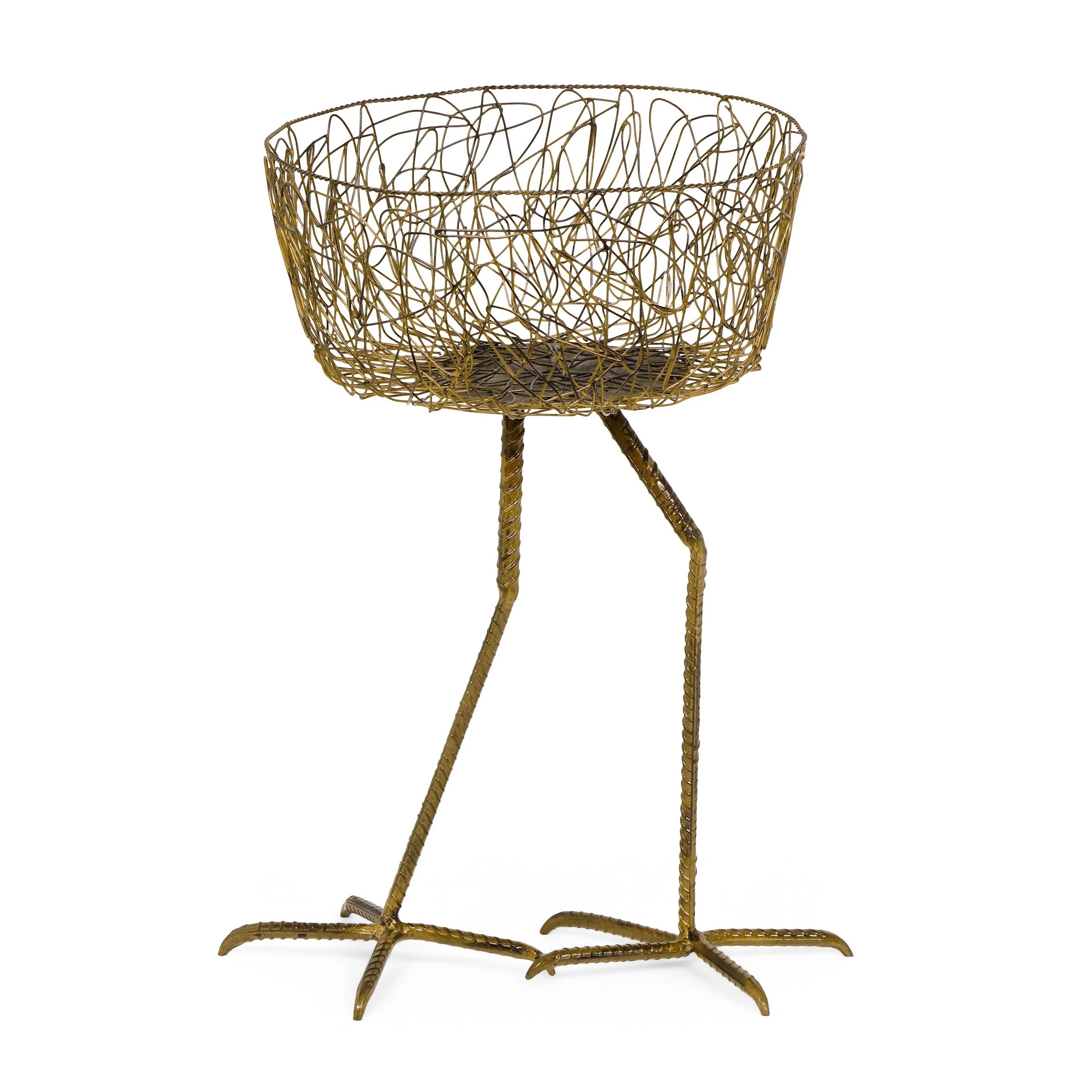 Sofie Planter, Flamingo Bird Legs, Basket Shape Antique Brass 22 Inch