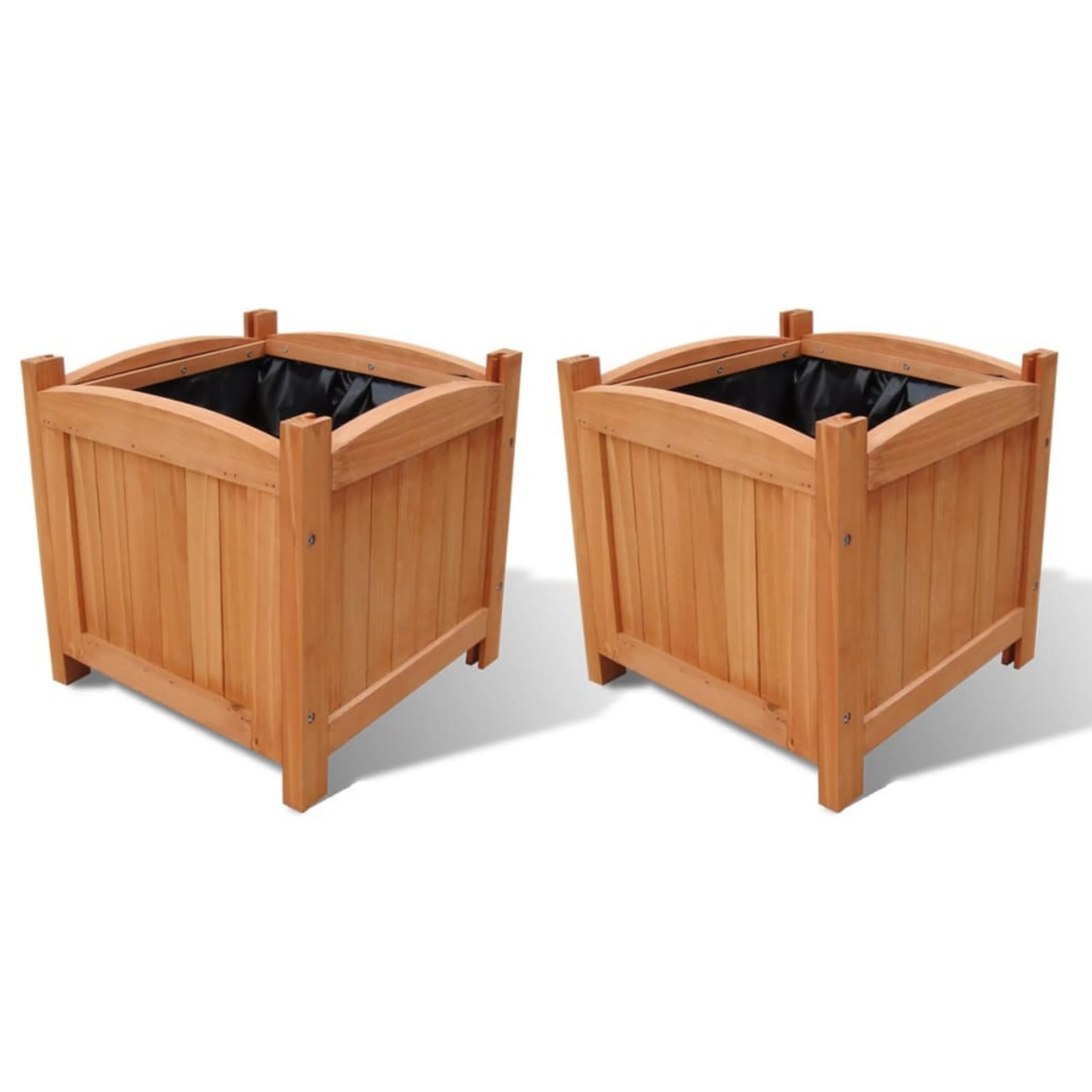 Outdoor Planter Set of 2, 12 Inch Square Natural Brown Solid Wood