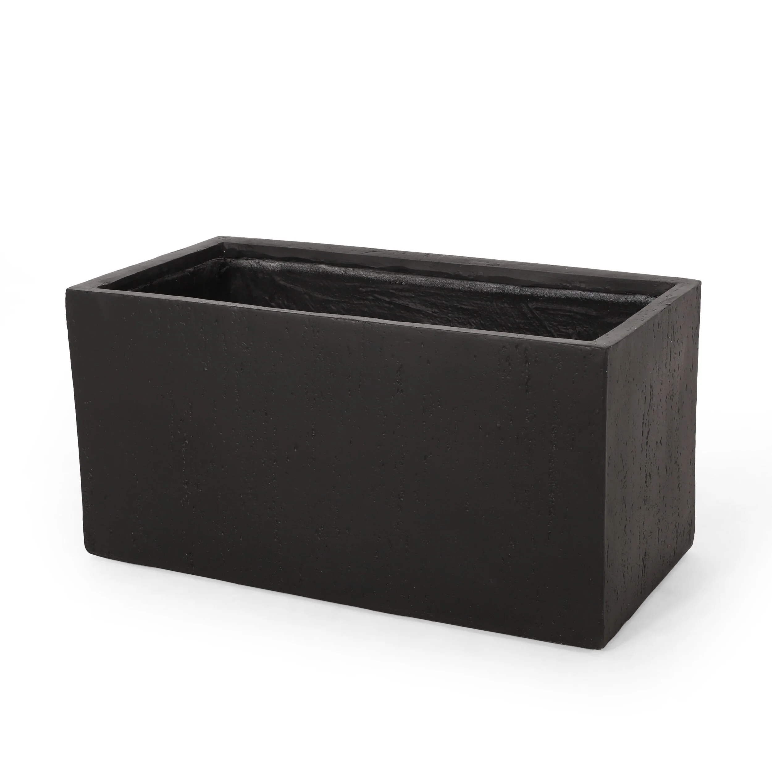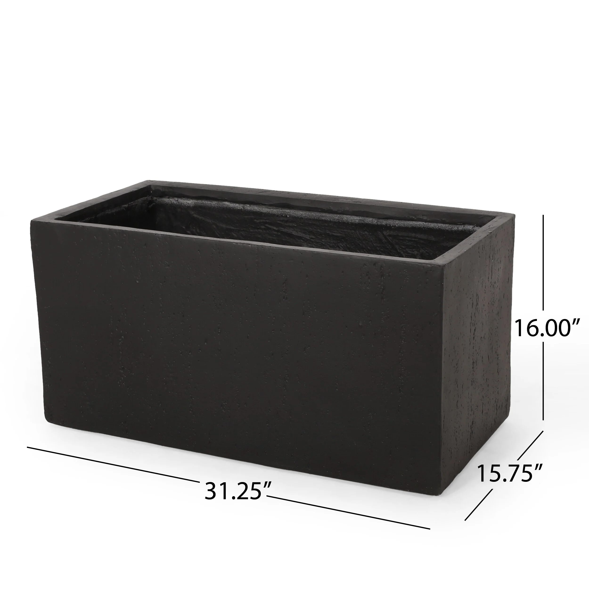 ELLA MGO L31 Black Magnesium Oxide Planter 31.25x15.75x16 Inch Outdoor Lightweight Concrete Rectangle Garden Decor
