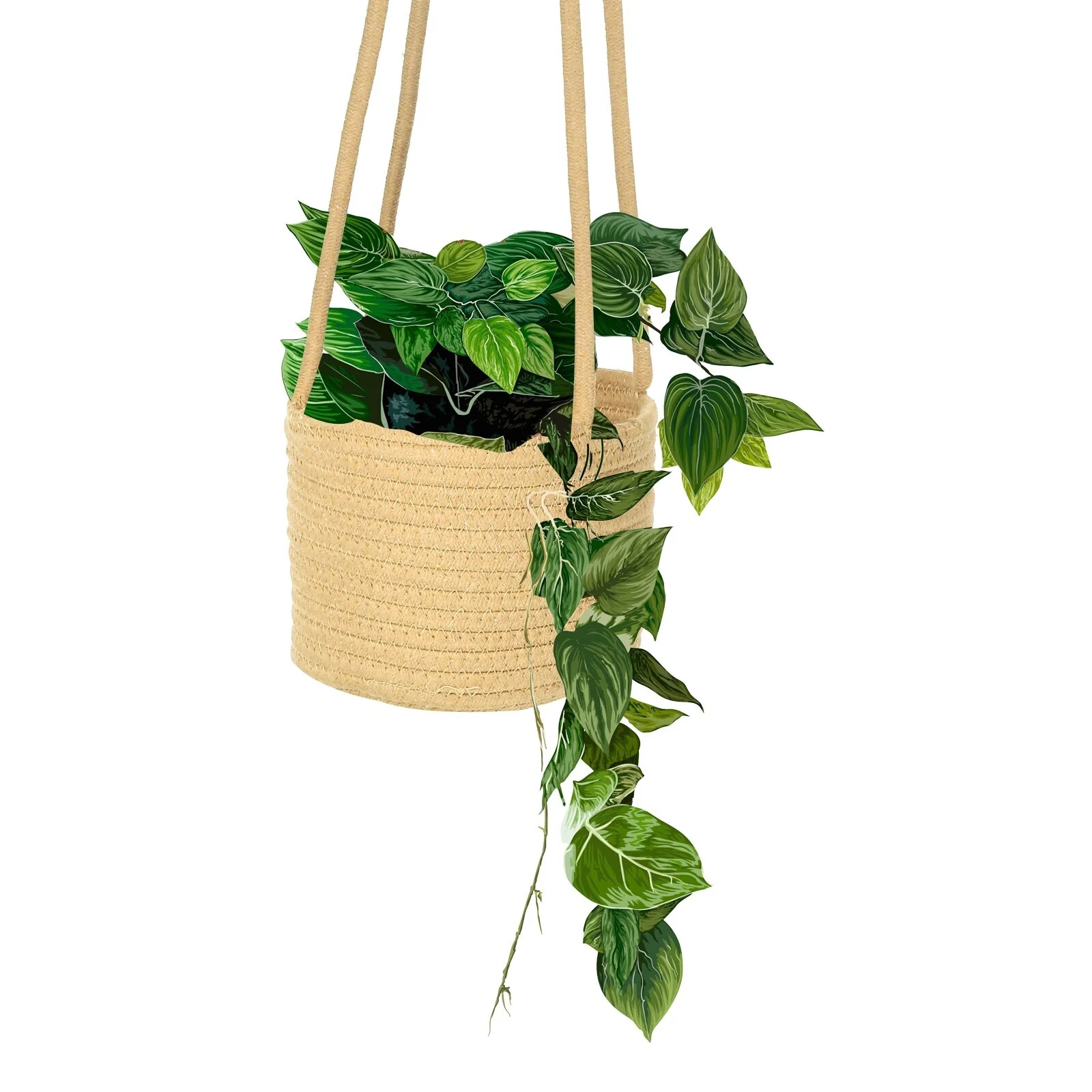 Garden Hanging Basket with Jute Rope Woven Planter for Indoor Plants
