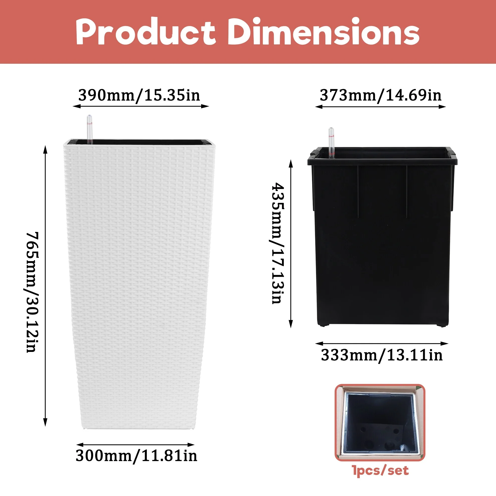 30" Large Flower Pots Planter with Self-Watering Drainage Holes&Inner Trays Plant Pot with Drain Holes, Water Level Monitor