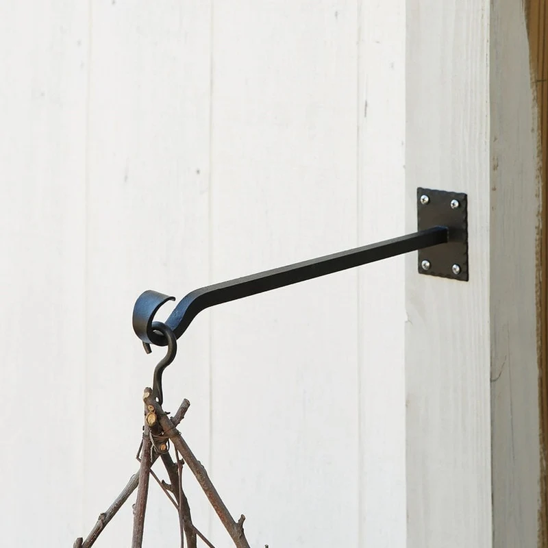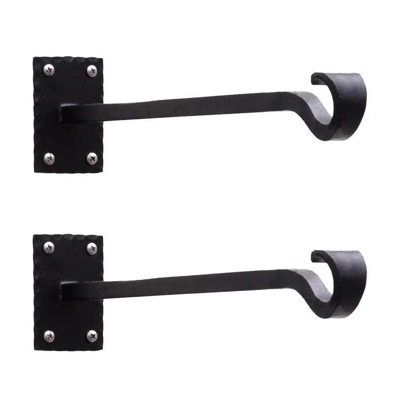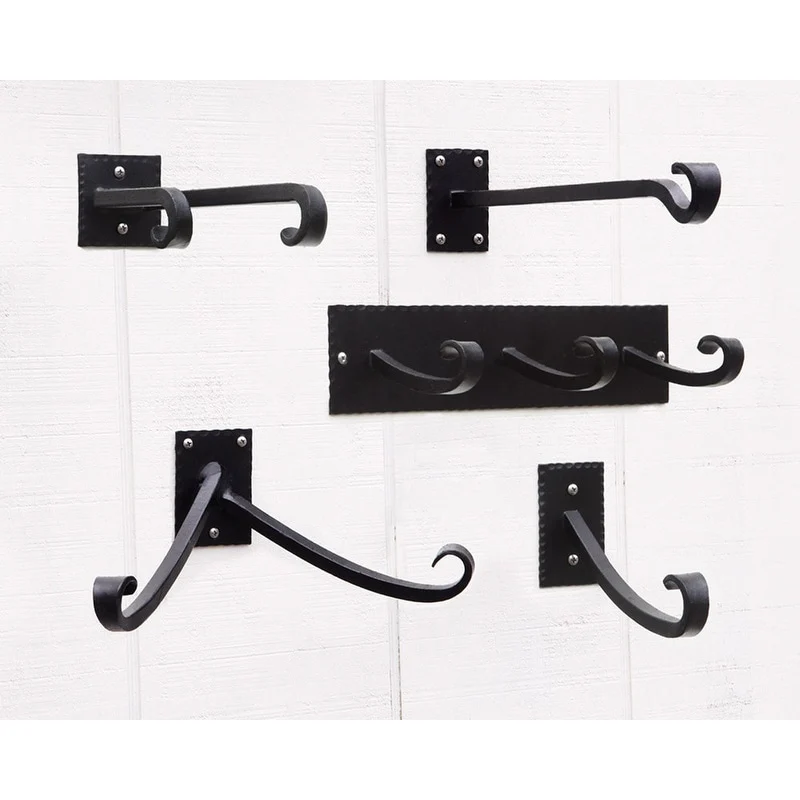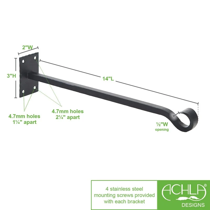 Achla Designs Set of 2 Lodge Straight Brackets w/Multiple Hooks, 14 Inch Long, Black Powder Coat Finish