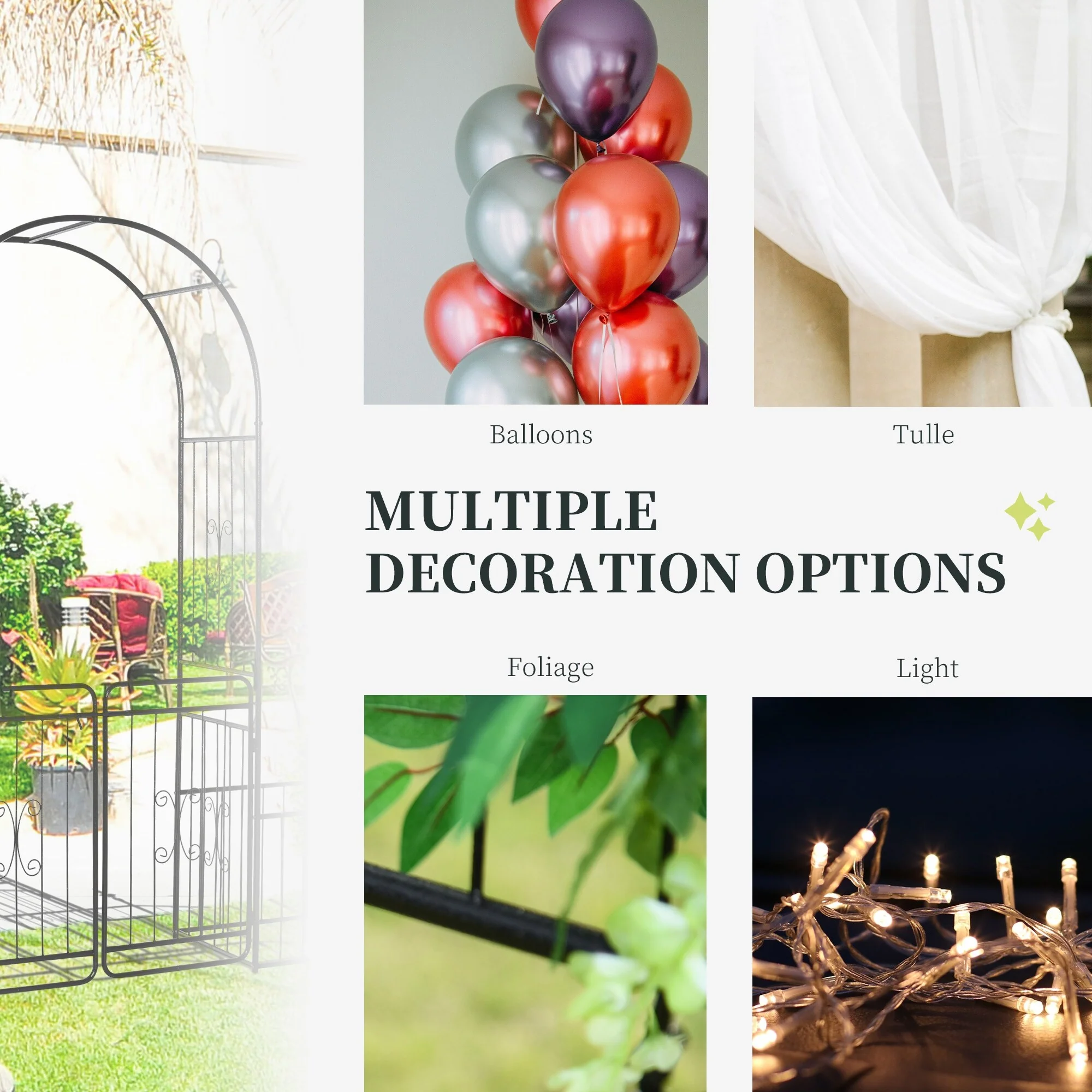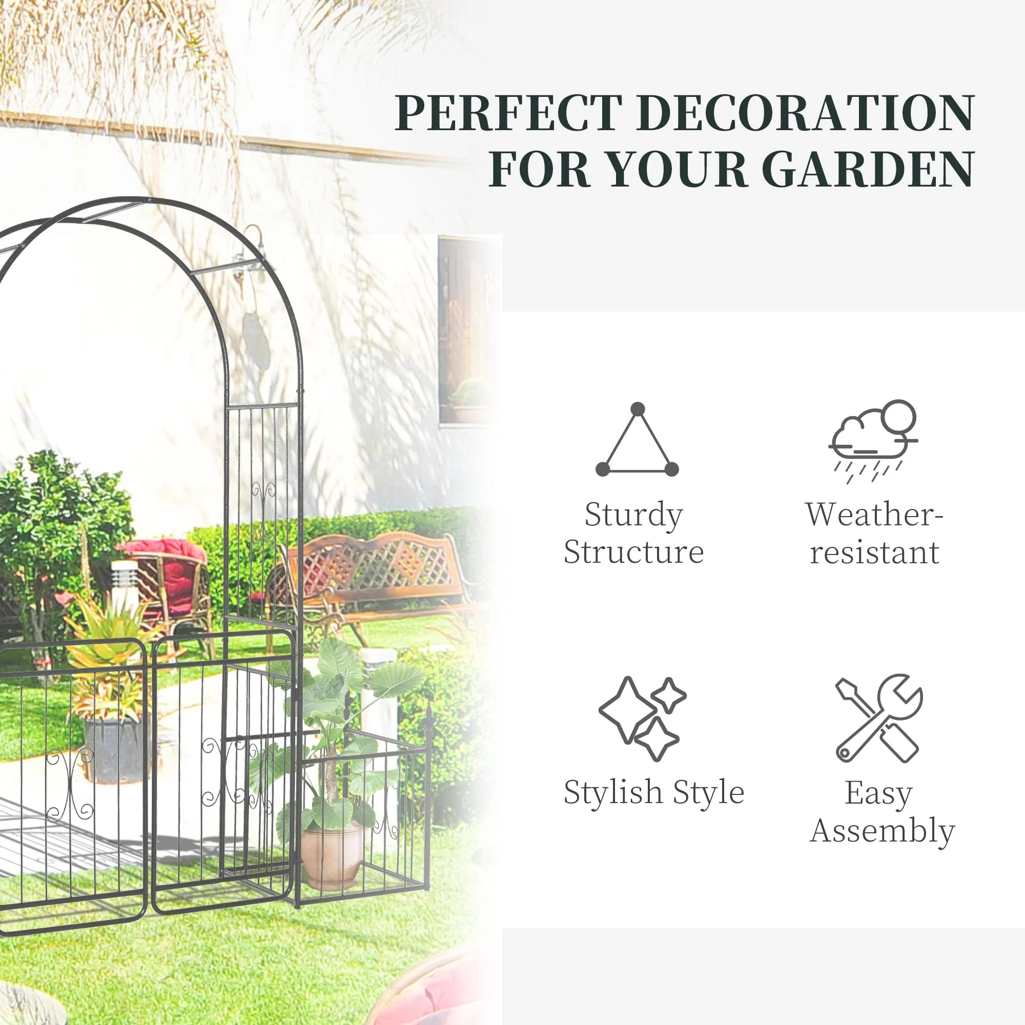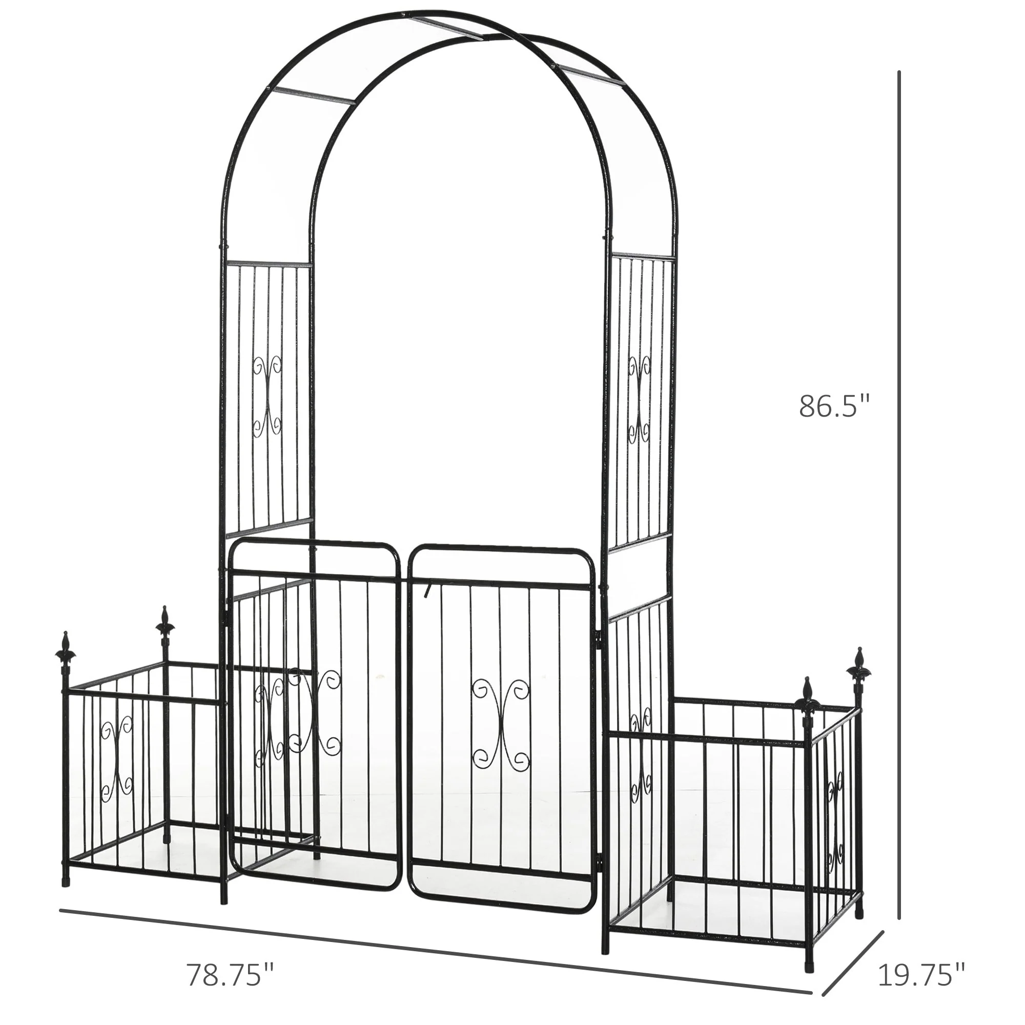 Outsunny 7.2' Metal Garden Arbor Arch Gate with 2 Side Planter Boxes, Climbing Vine Frame, & Double Door Design