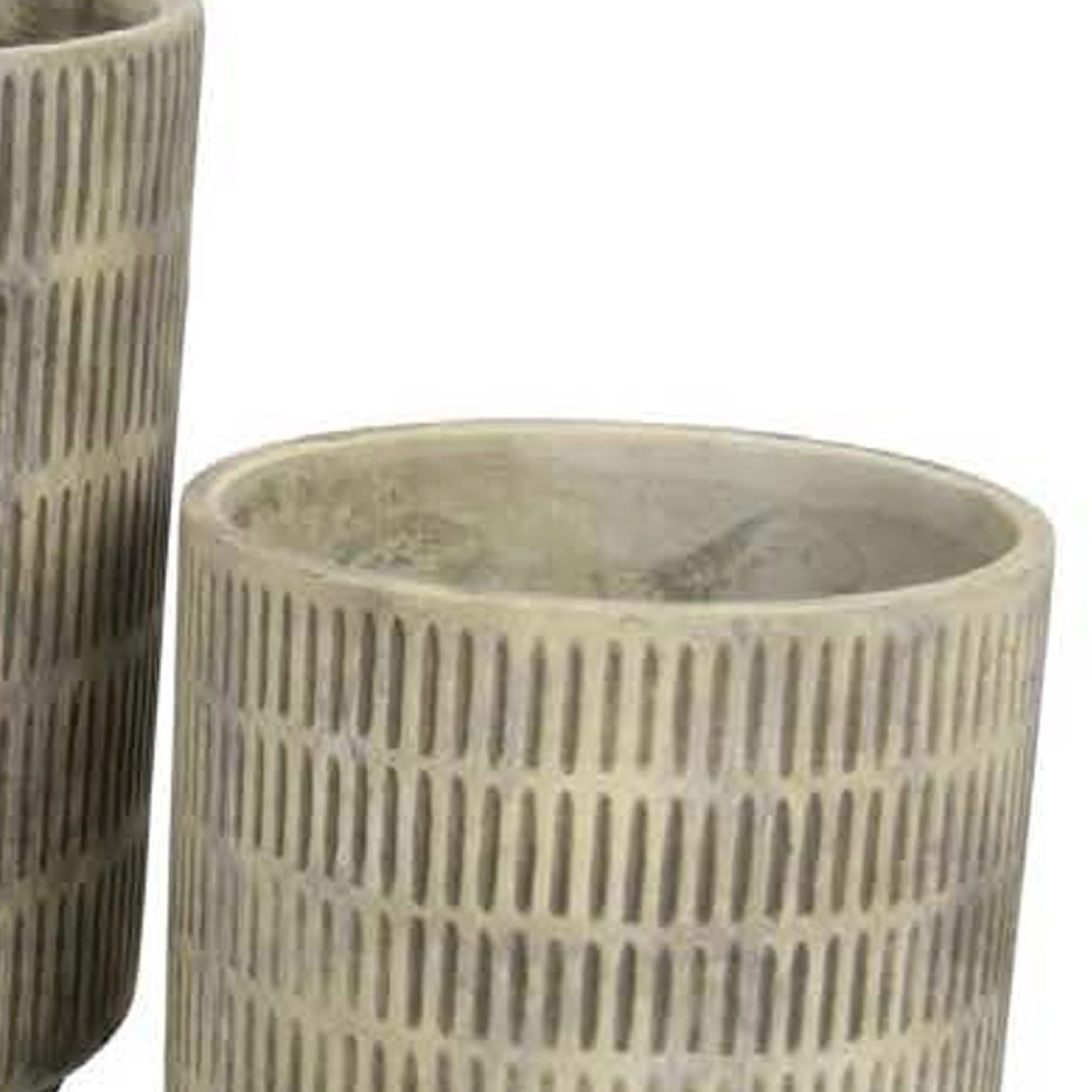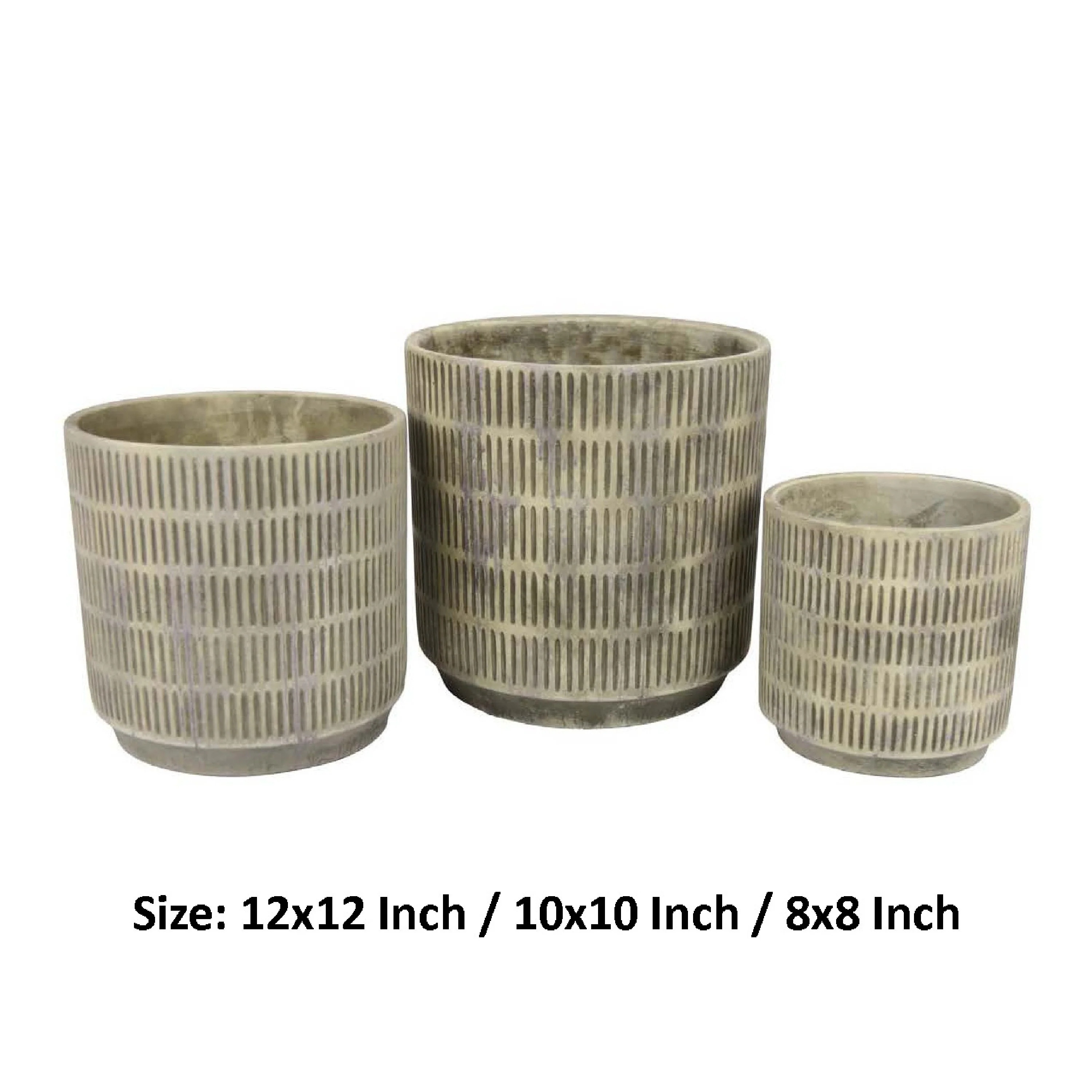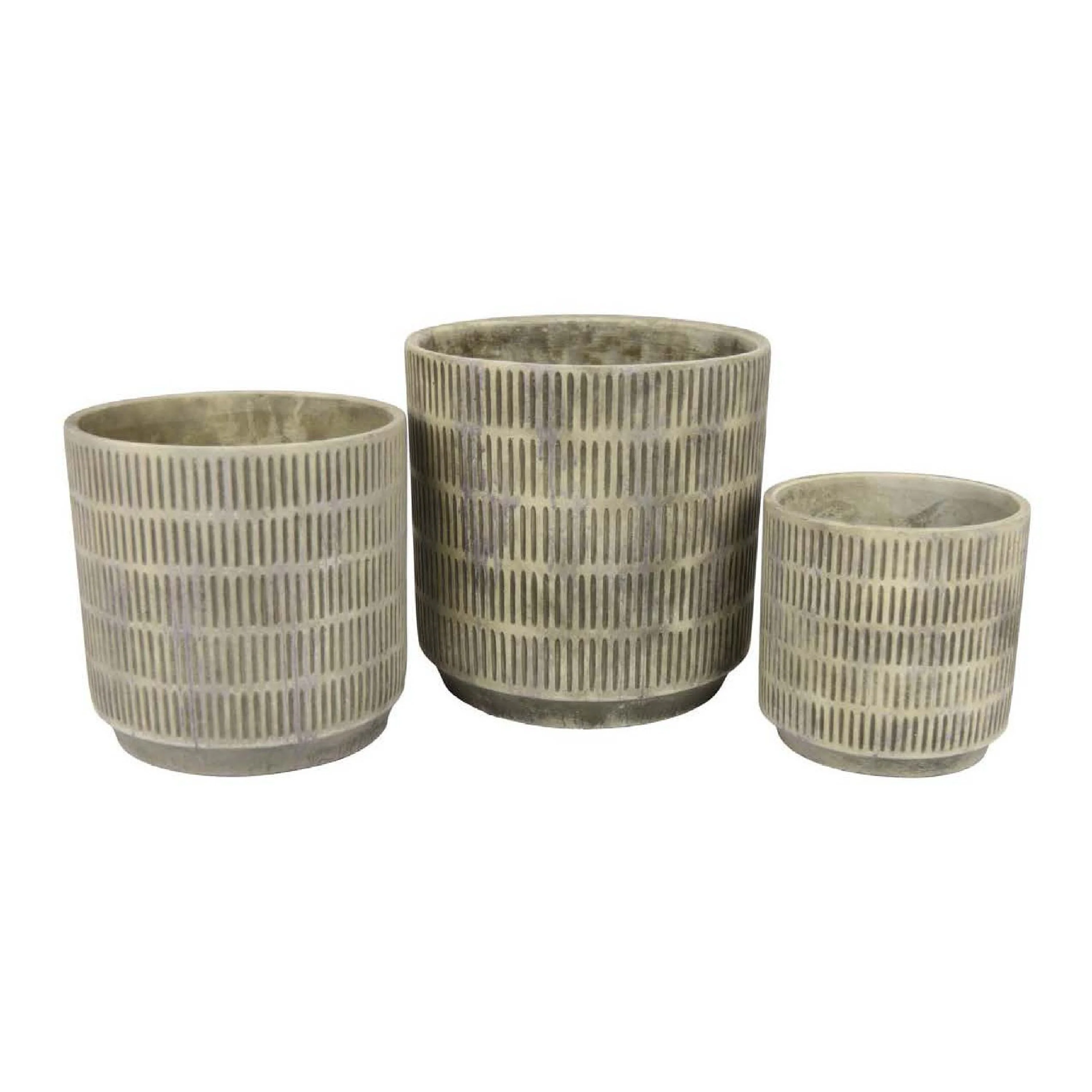 Zeri 3pc Planter Set, Ribbed Grooved Gray Terracotta, 8,10,12 Inch