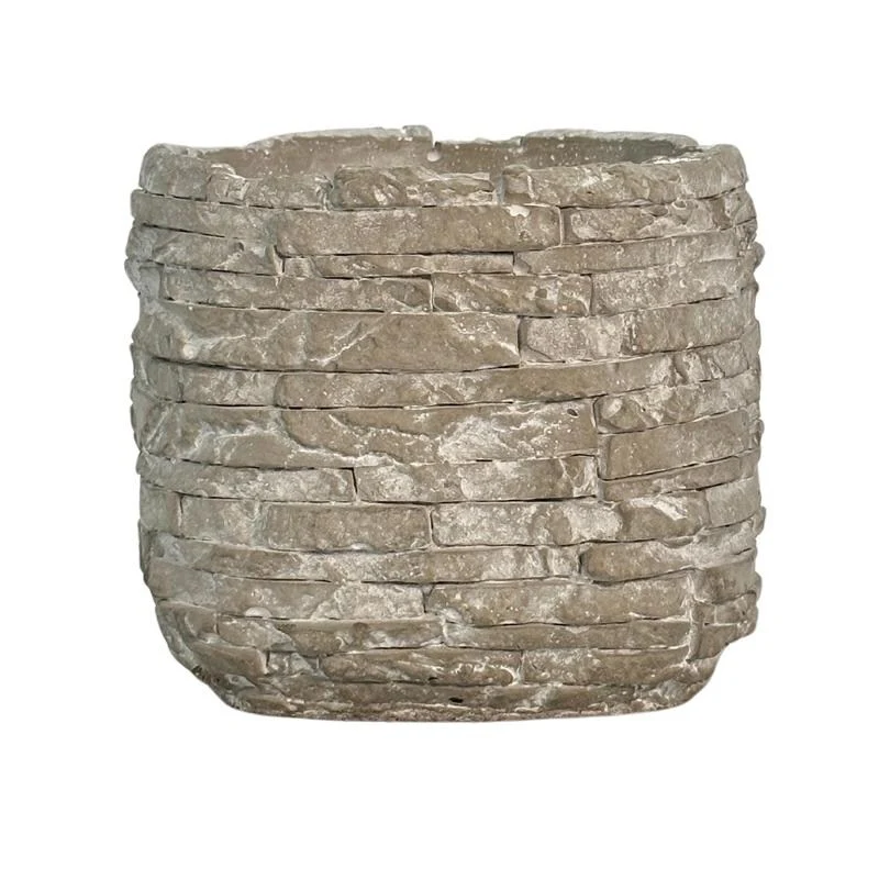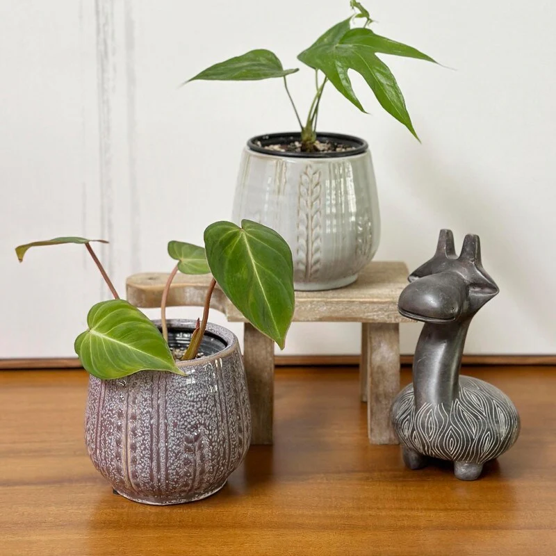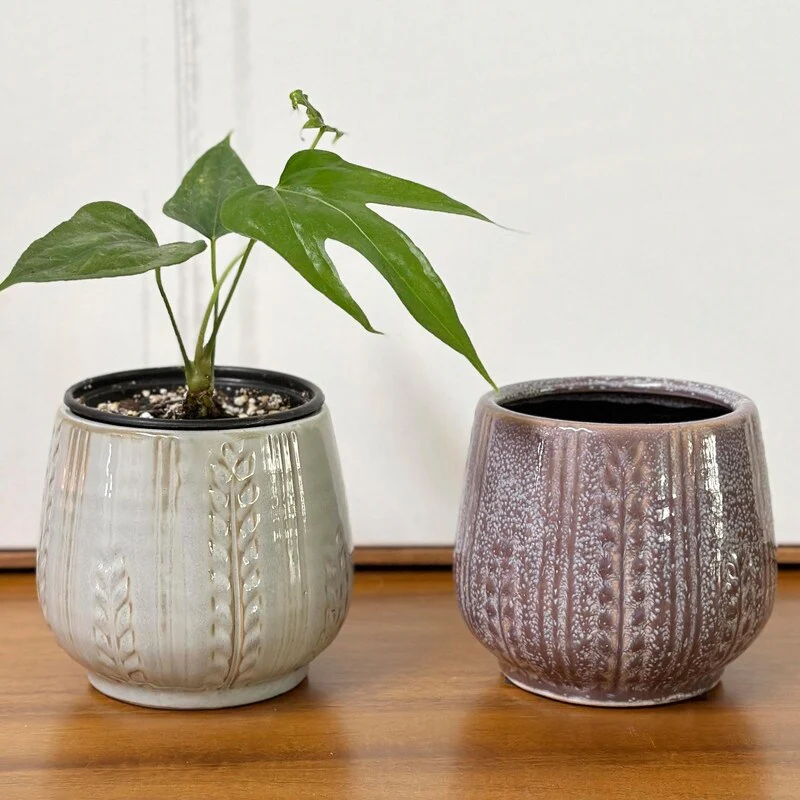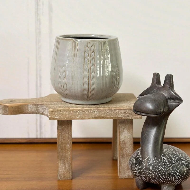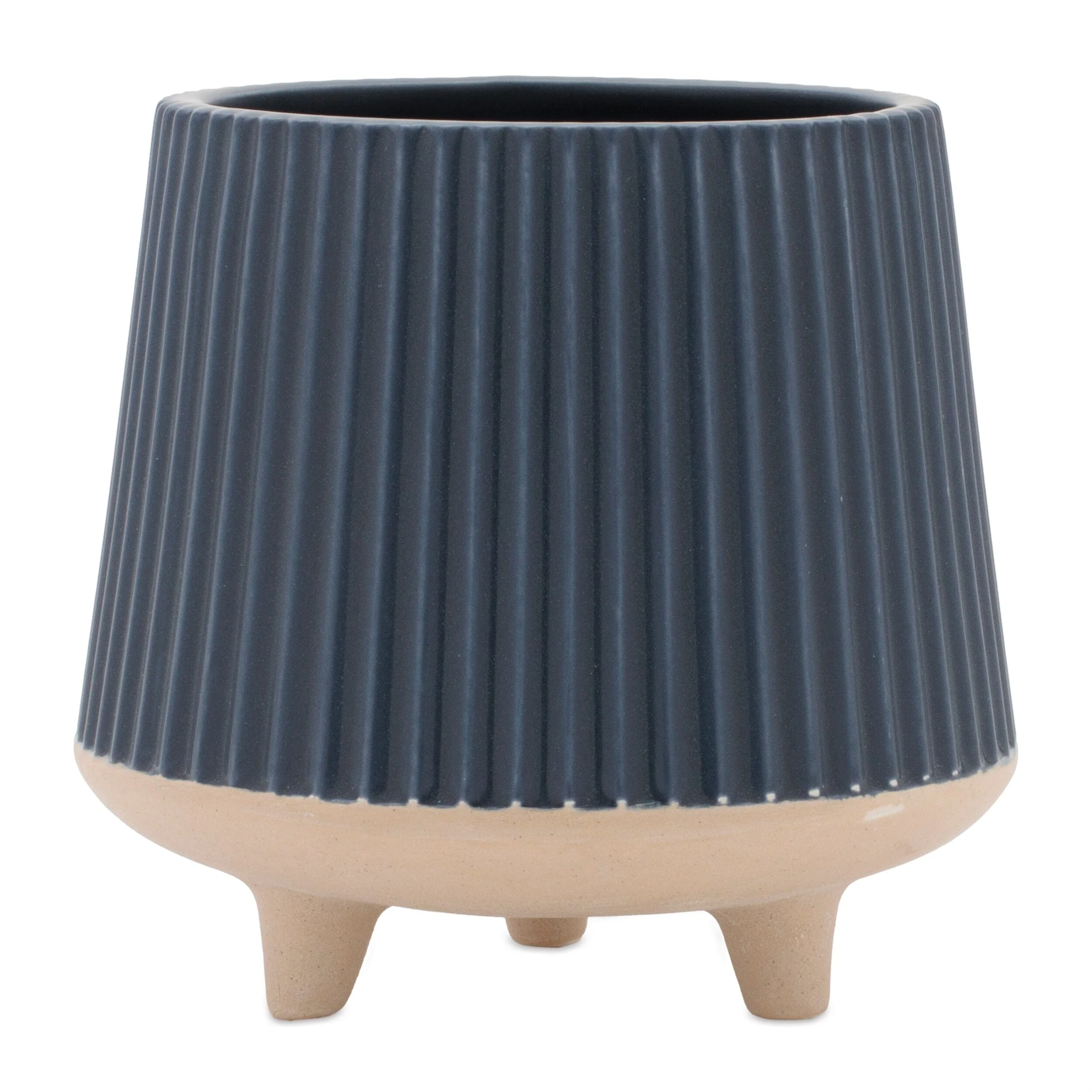 Zeri 3pc Planter Set, Ribbed Grooved Gray Terracotta, 8,10,12 Inch