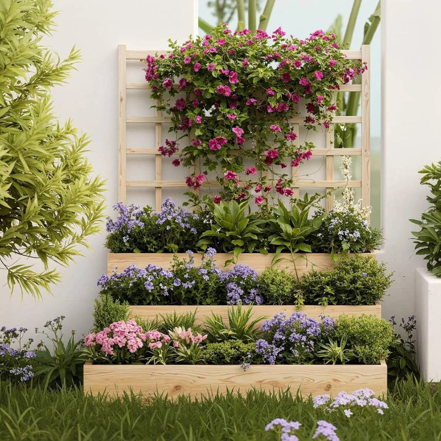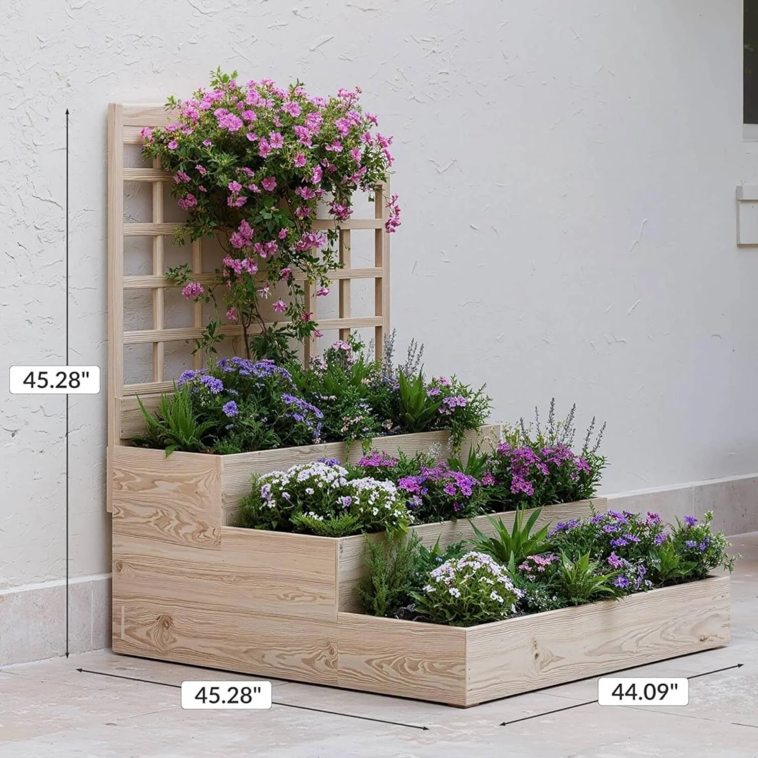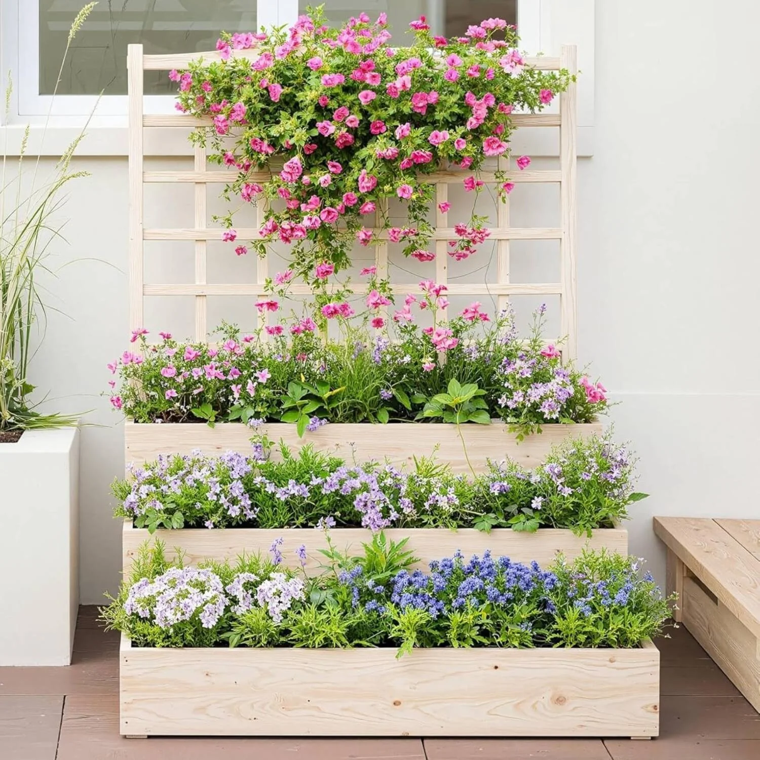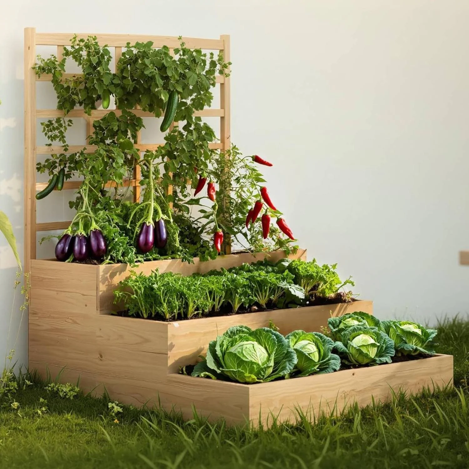 3-Tier Raised Bed, Garden Planter Box with Climbing Trellis - 1 PC
