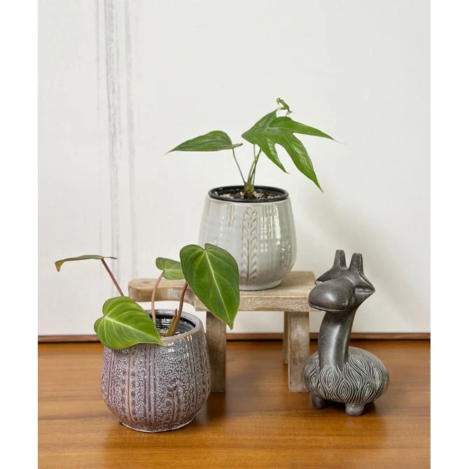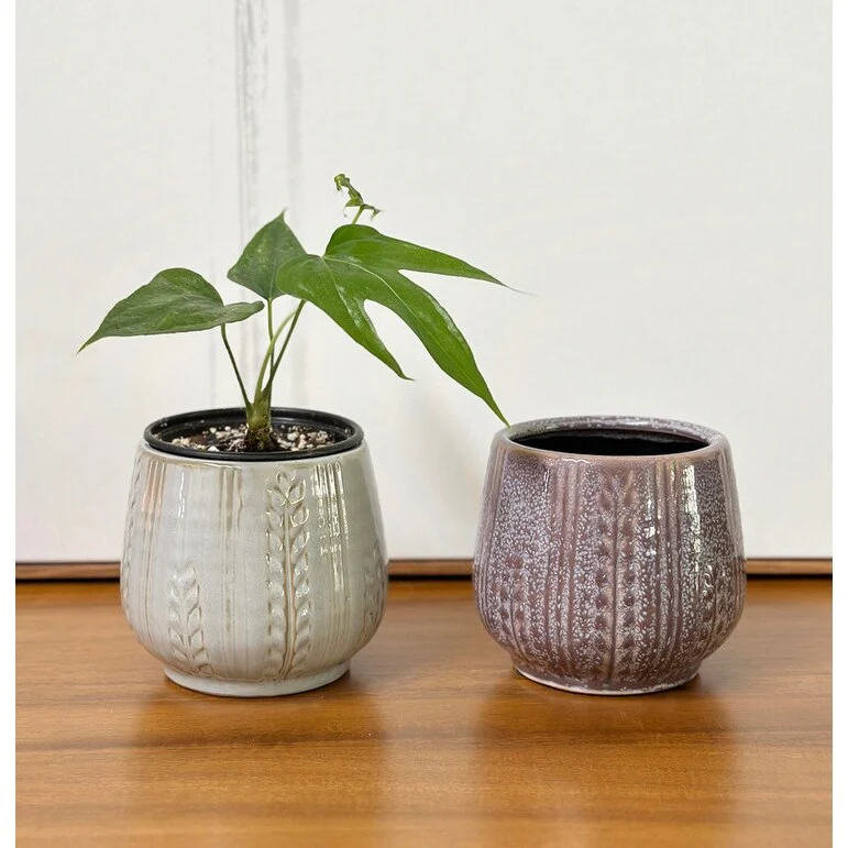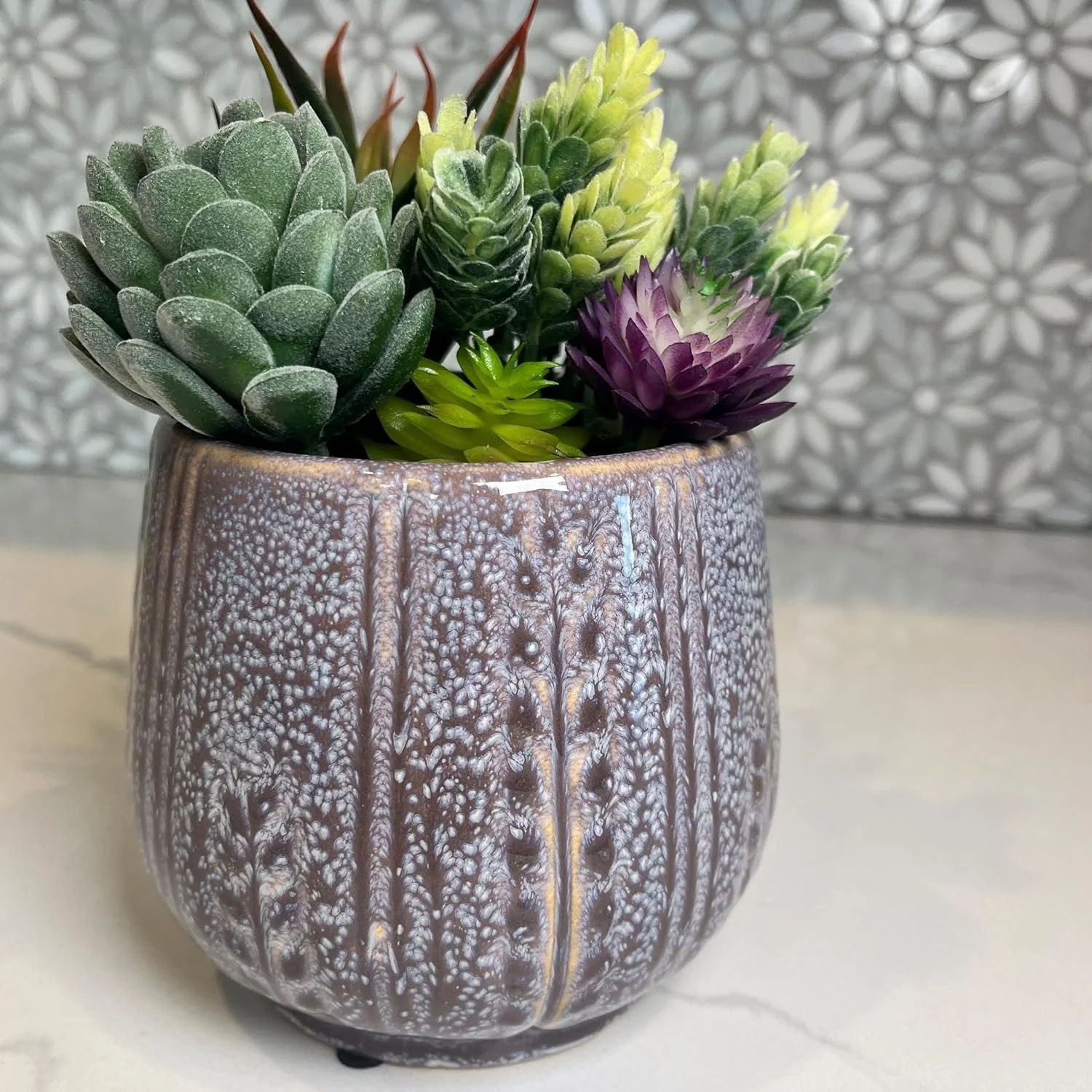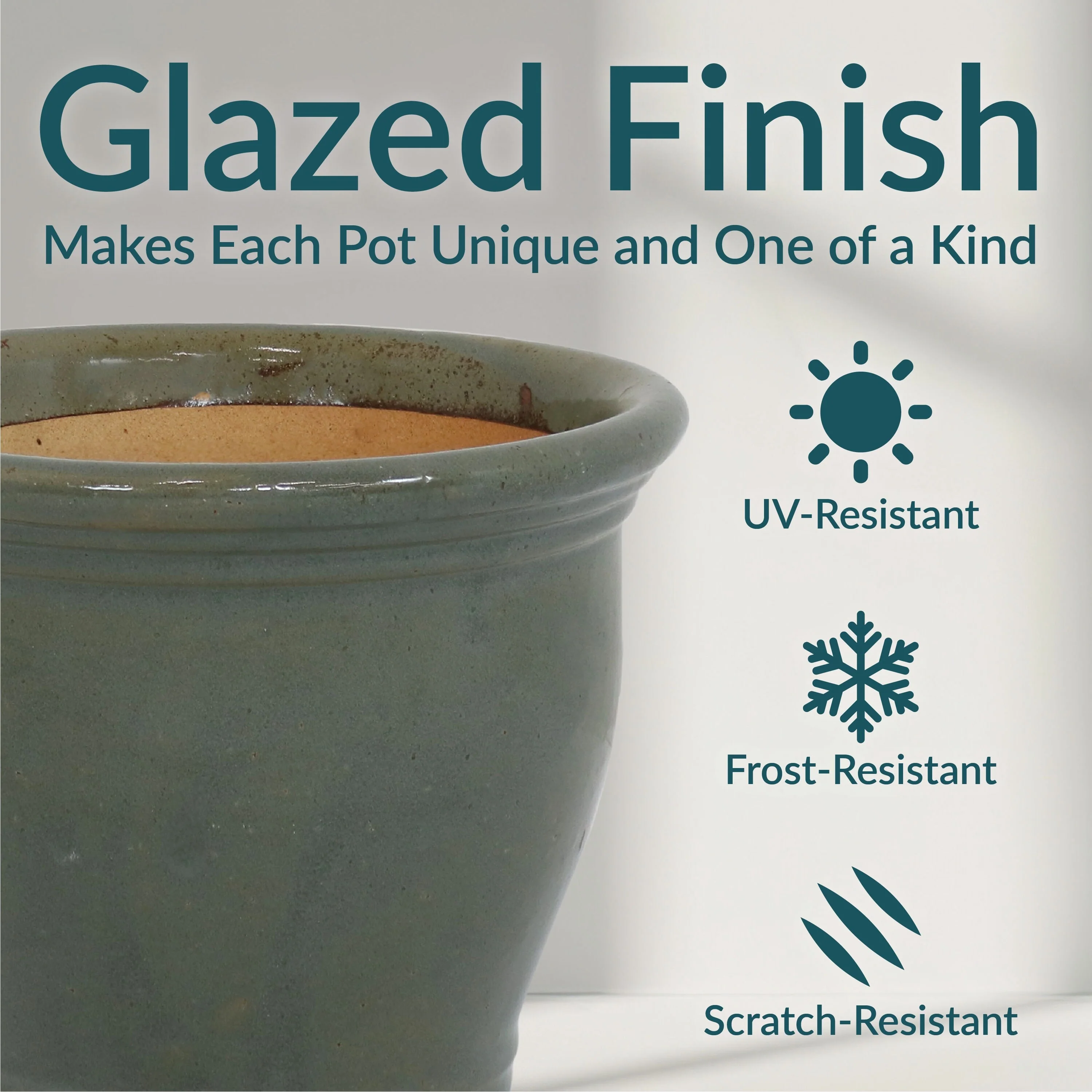 Sunnydaze Studio Glazed Ceramic Planter - Set of 2 - 11-Inch - Gray