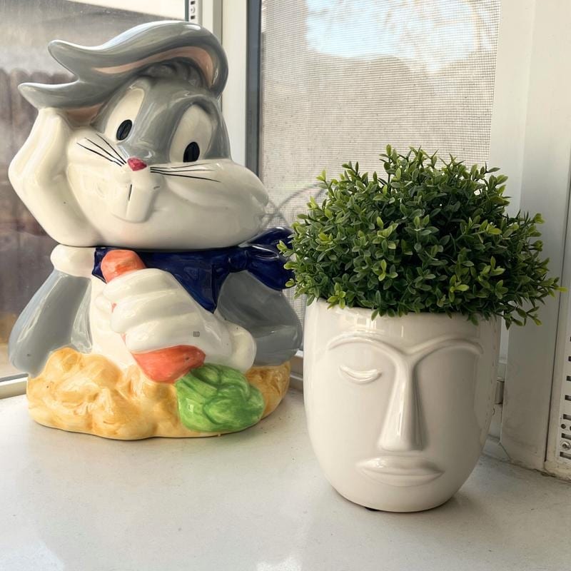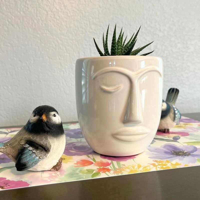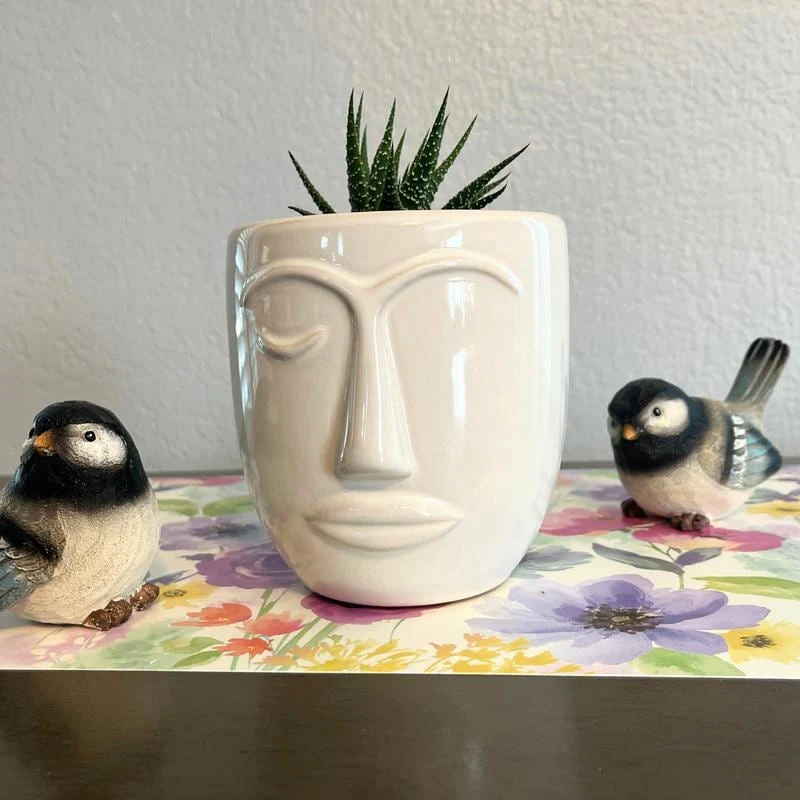 Kylz Decor Head Garden Planter, 23 Inch, Wide Open Top, White Resin