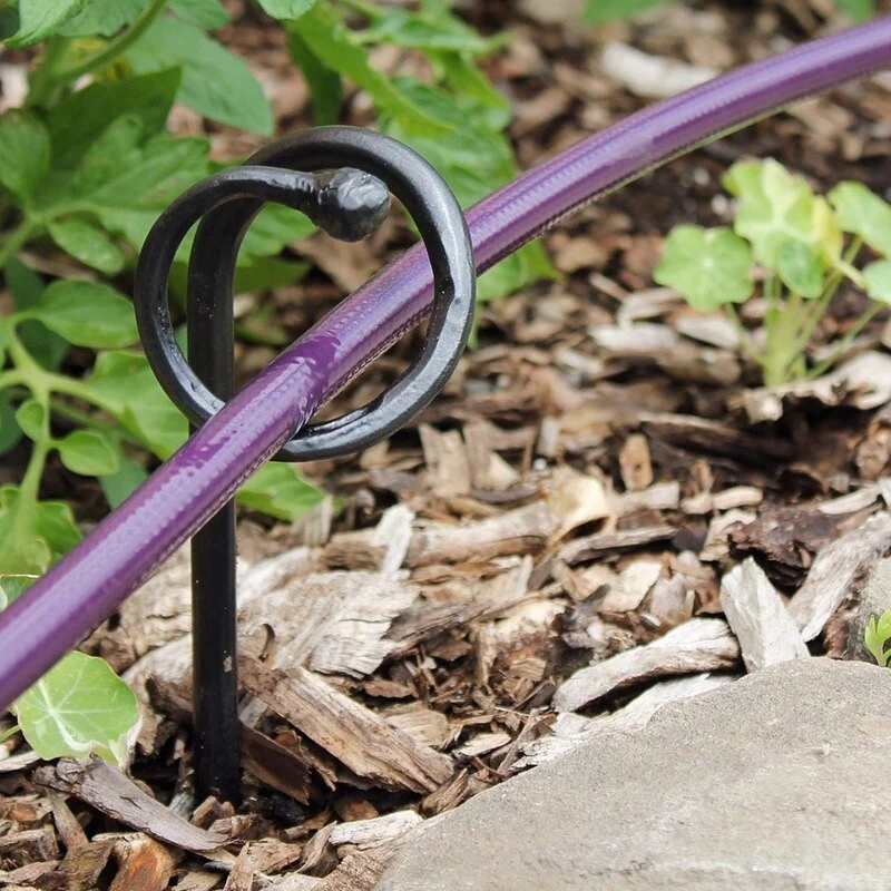 Achla Designs 14" H Graphite Wrought Iron Hose Guard w/Ball End Design (Set of 6), Hose Guide, Outdoor Accessory, Garden Accent