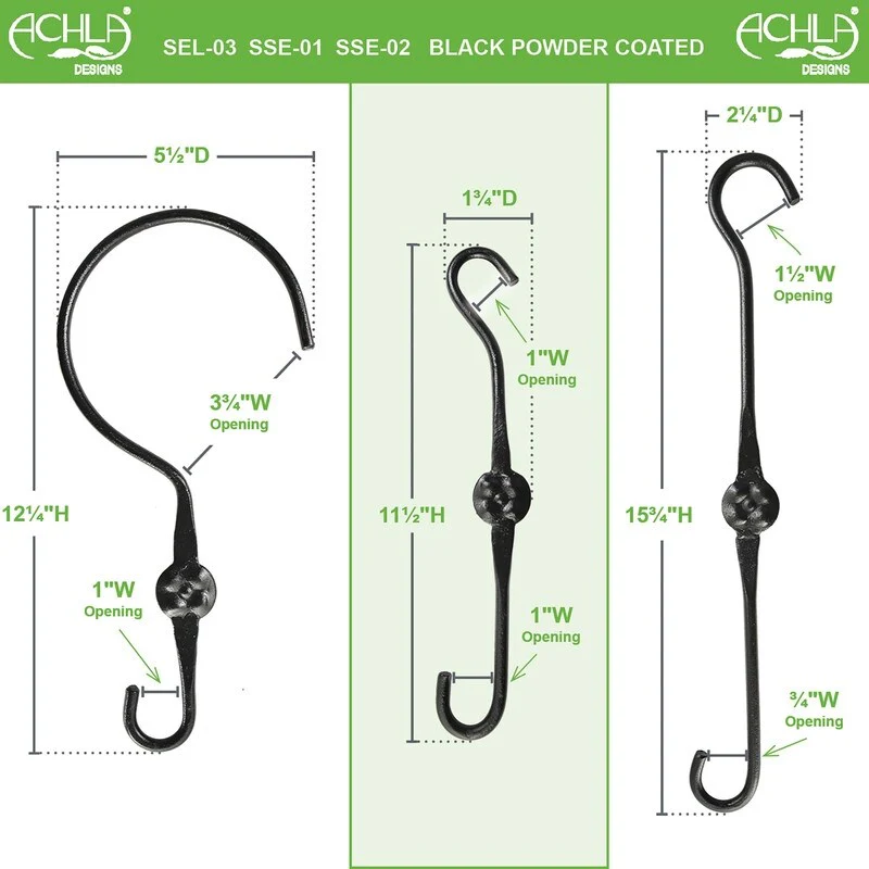 Achla Designs Set of 2 Double Ended Extender Hangers with Wide Hook, 12 Inch Tall, Black Powder Coat Finish