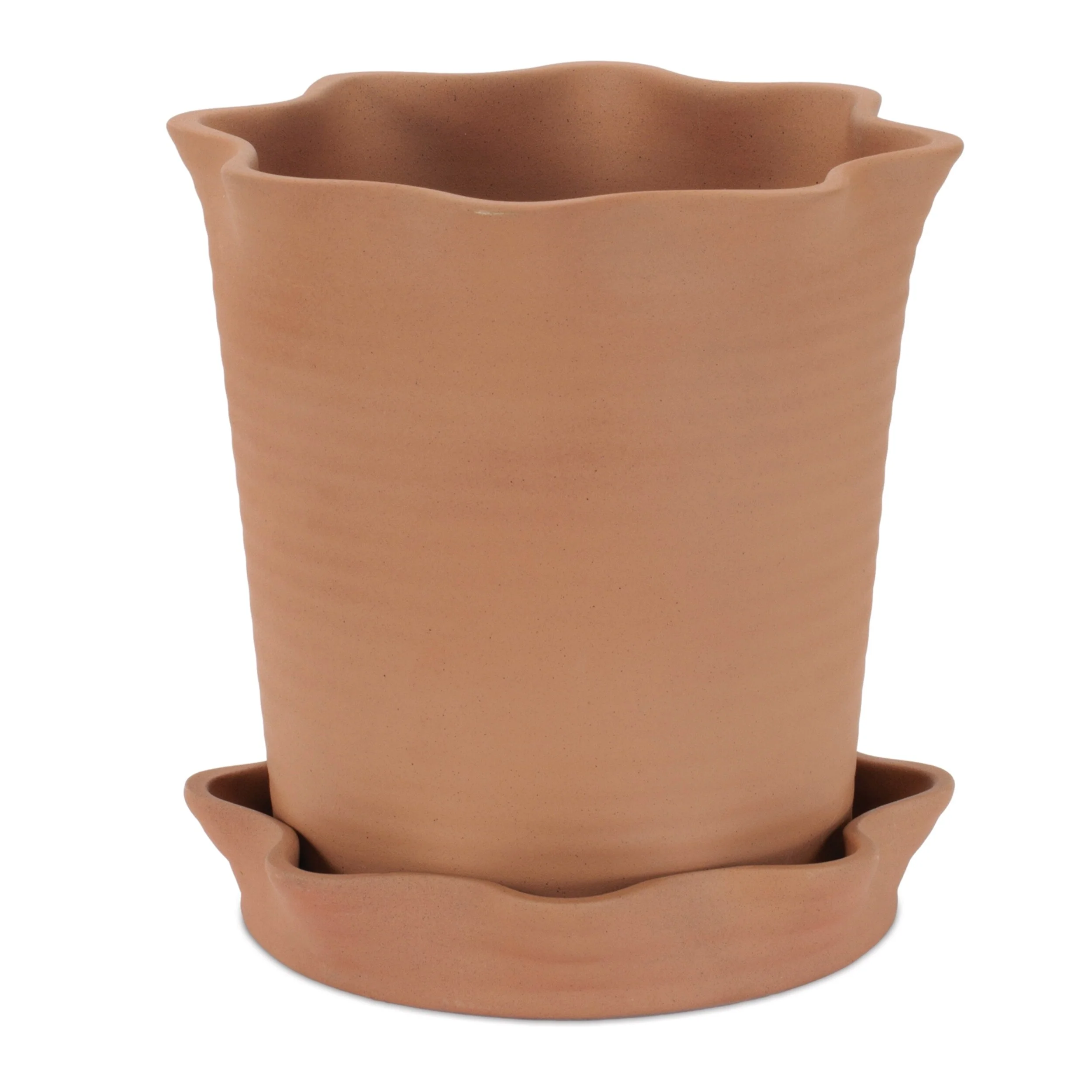Lia Garden Planter, 29 Inch Tall Round Pot, Earthy Brown Terracotta