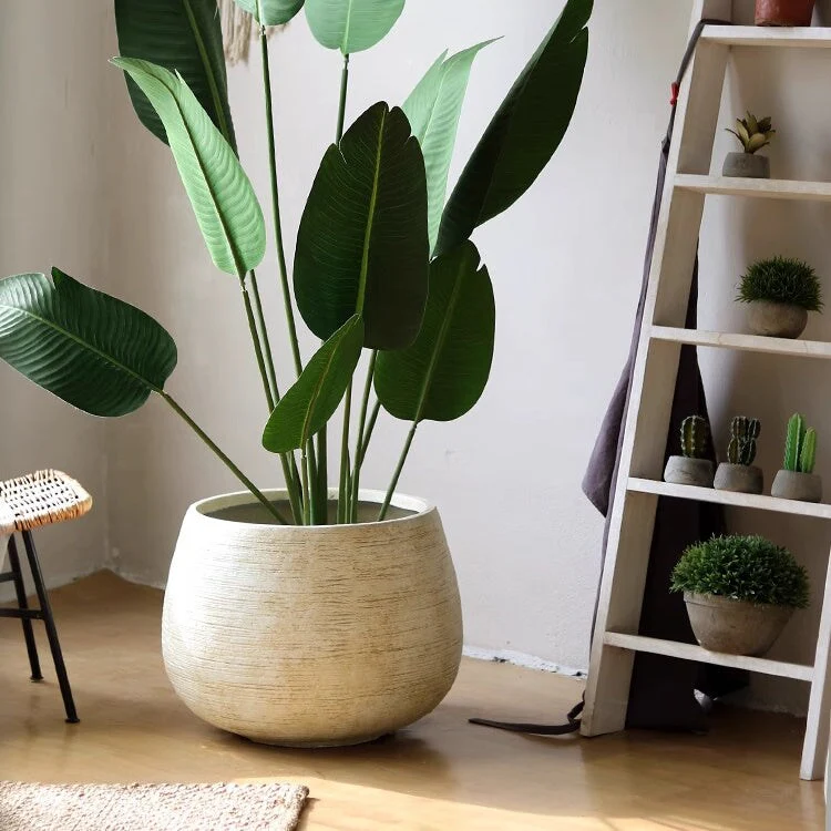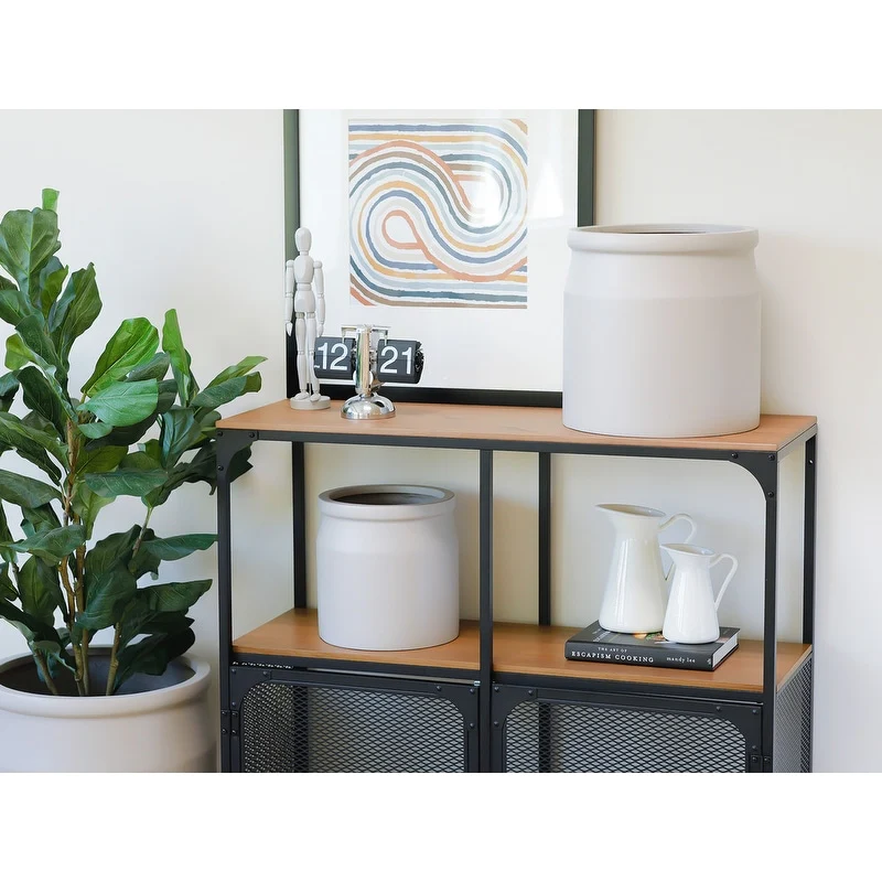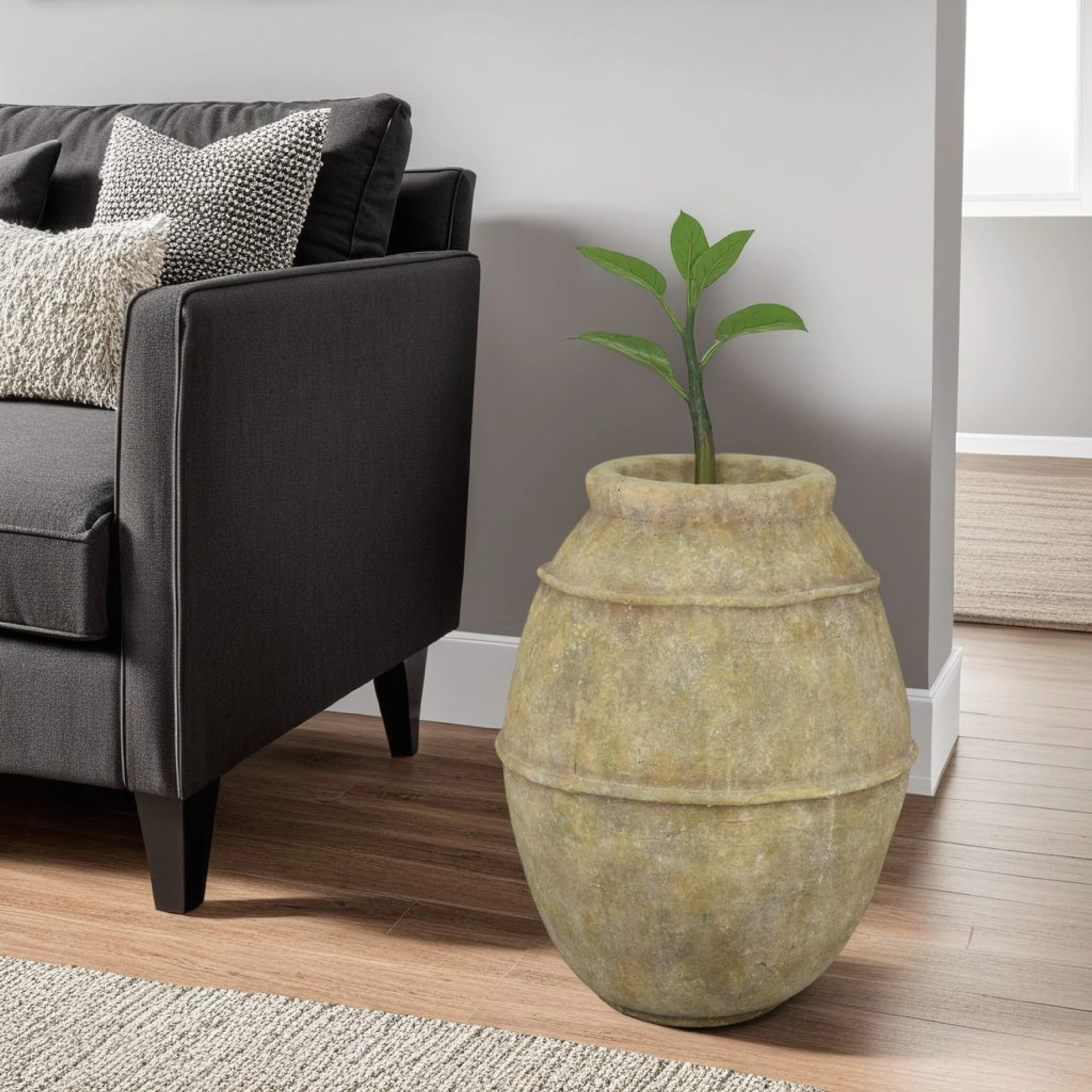 Indoor/Outdoor Large 1-piece Minimalist Fiberstone Lightweight Round Milk Jug Jar Farmhouse Decor Planter Pot - 17, 13, 10 in