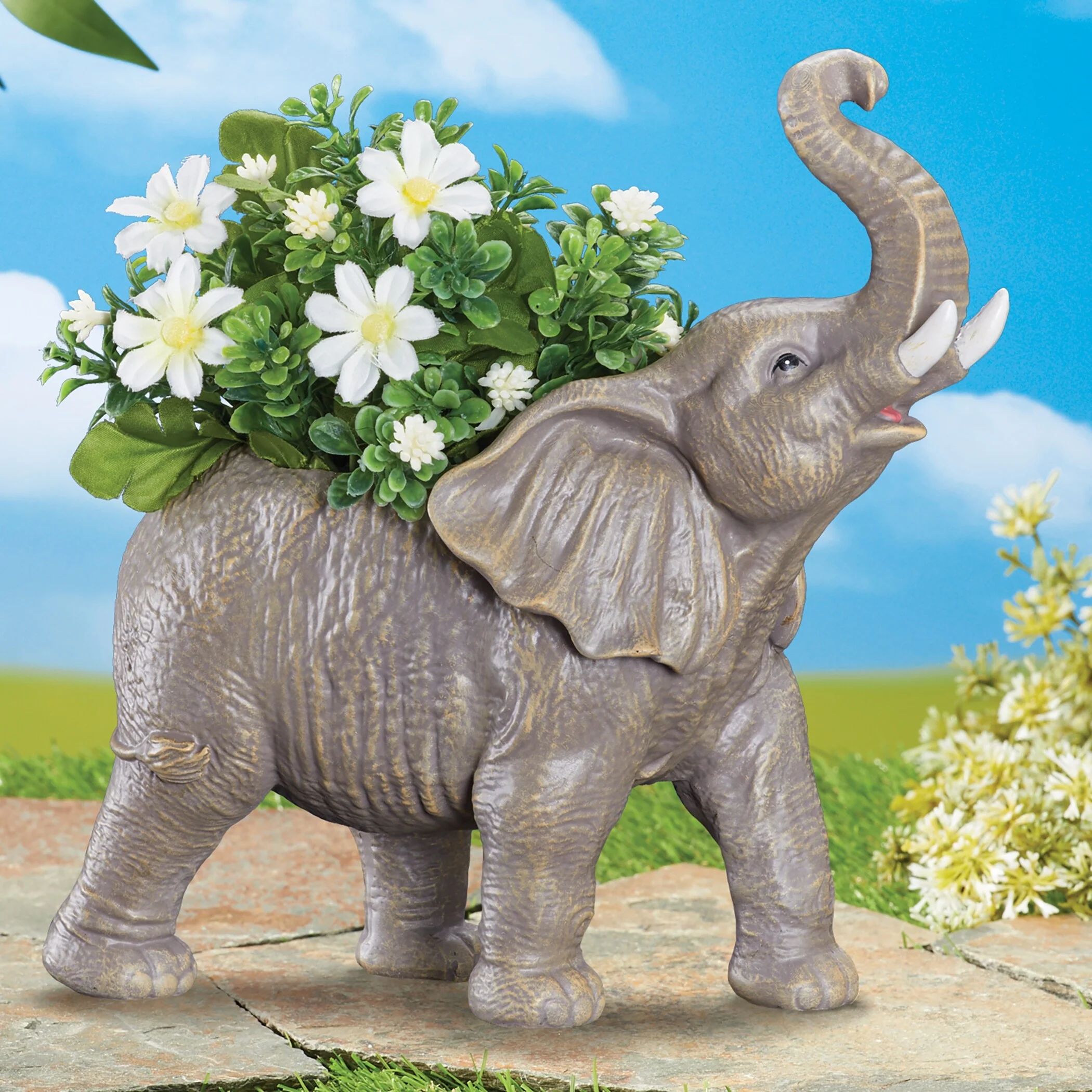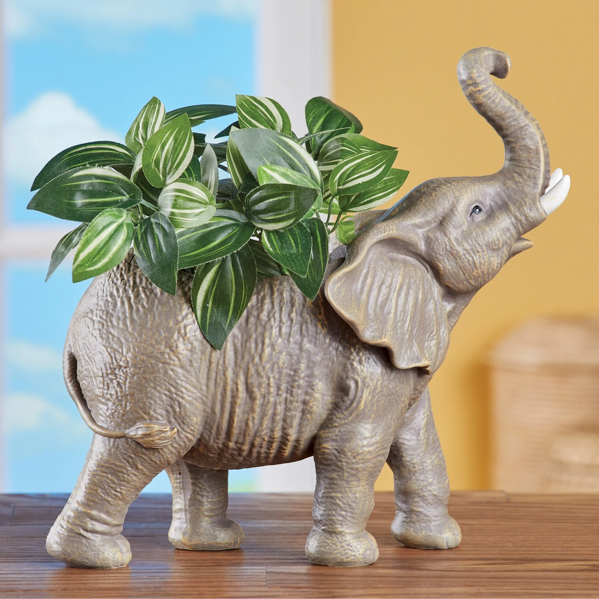 Hand-Painted Detailed Elephant Planter - 9 x 9.63 x 5.18