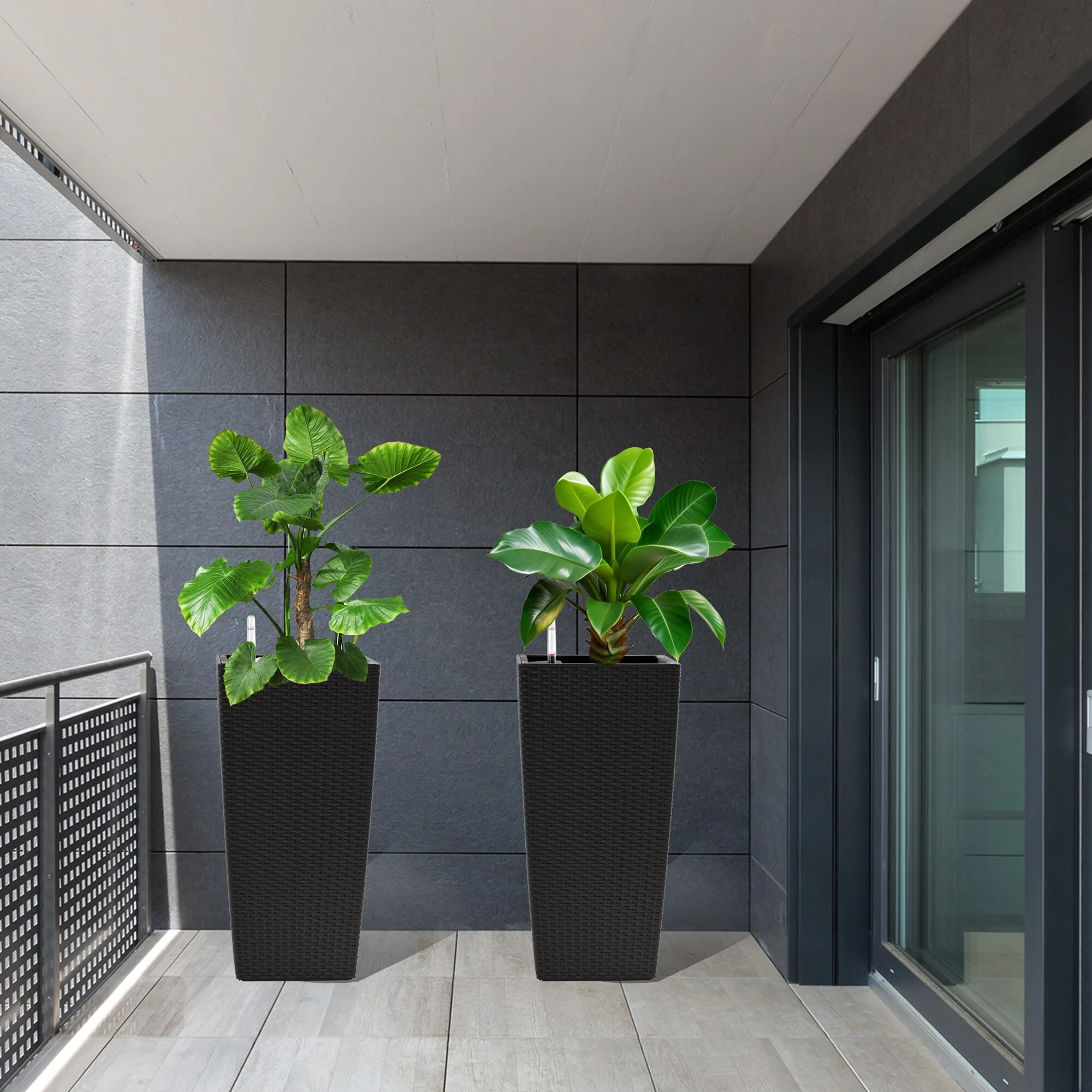 Square Planter for Indoor or Outdoor Use, 22-Inch High Faux Rattan Design Flower Pot with Automatic Watering System(Pack of 2)