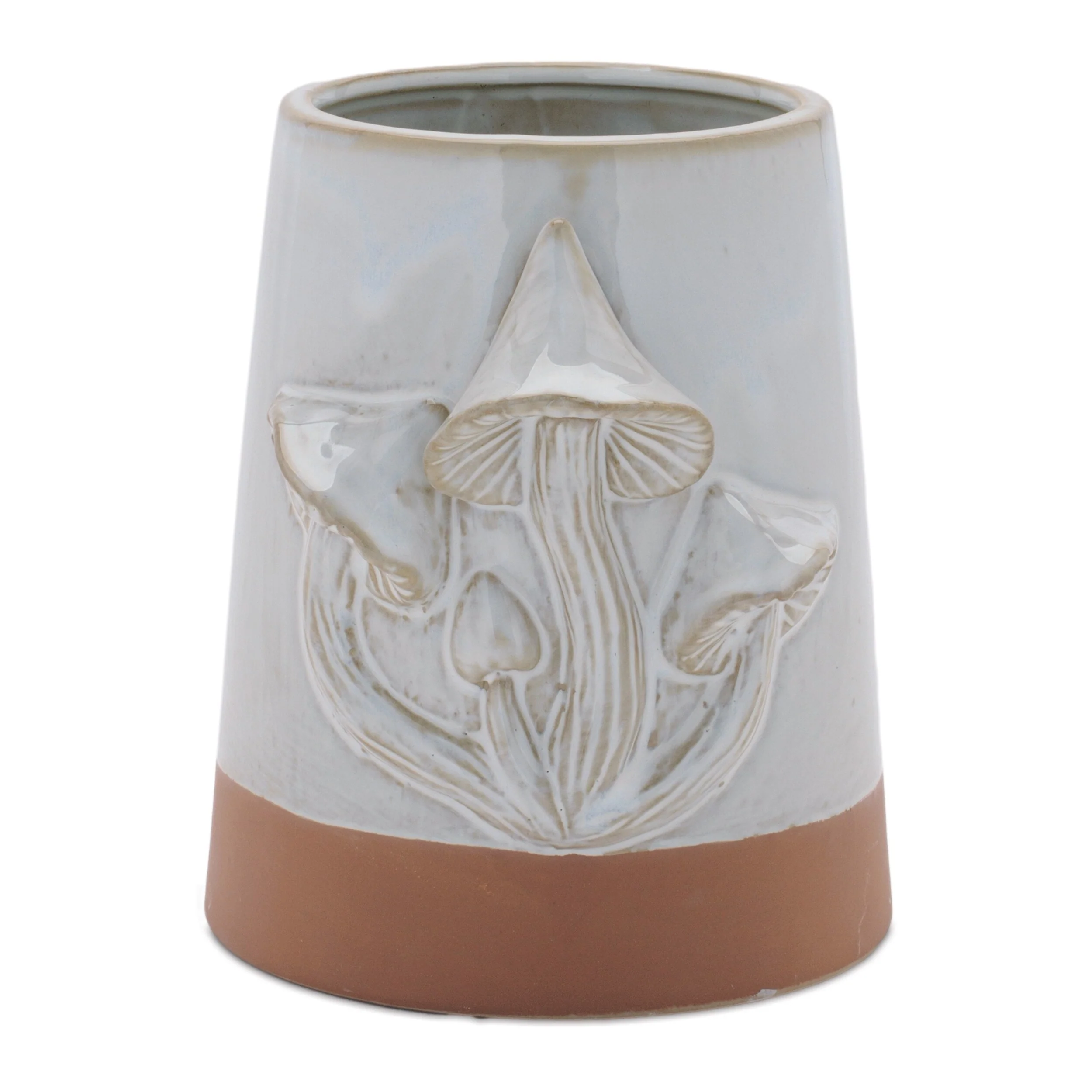 Tapered Porecelain Planter with Mushrooms (Set of 2)