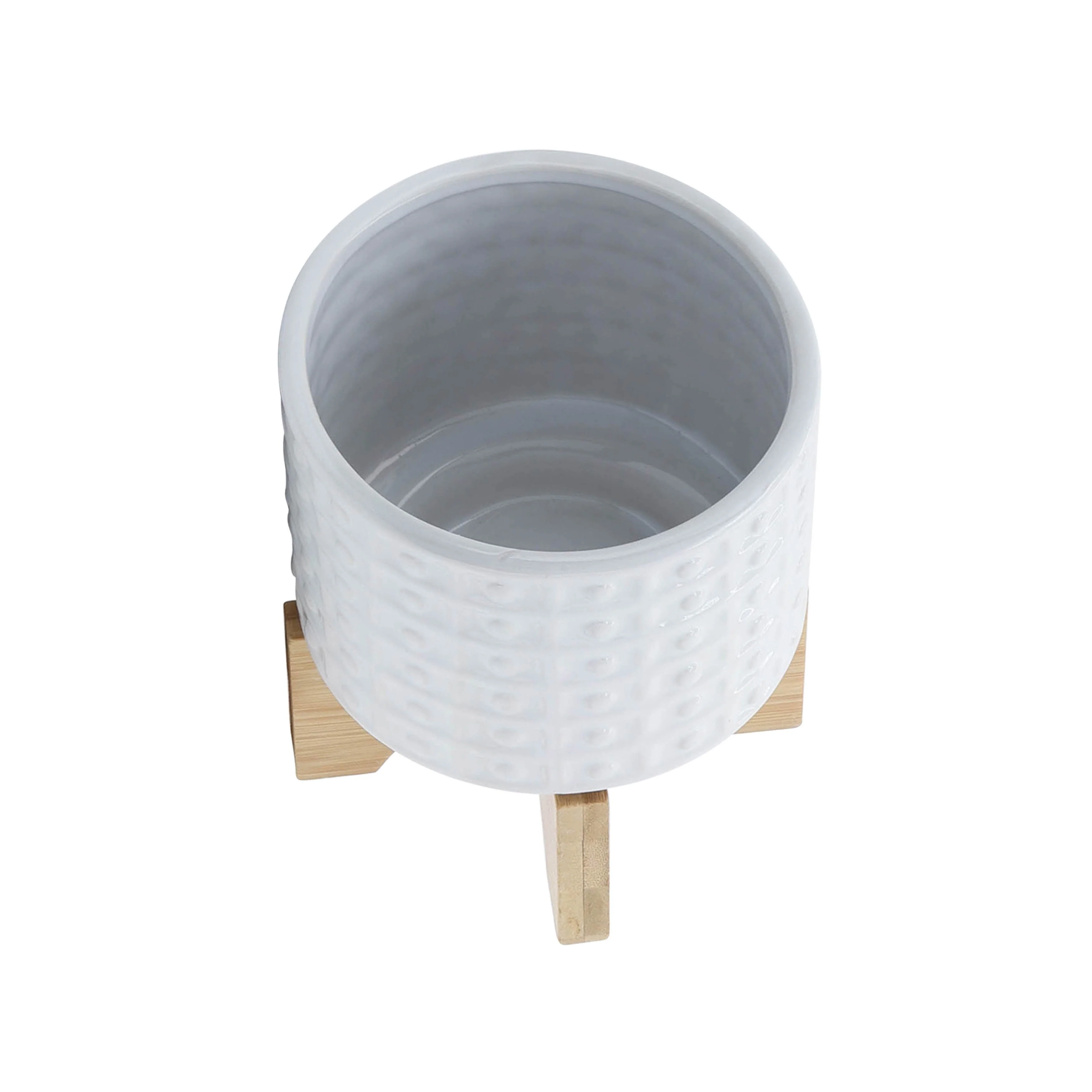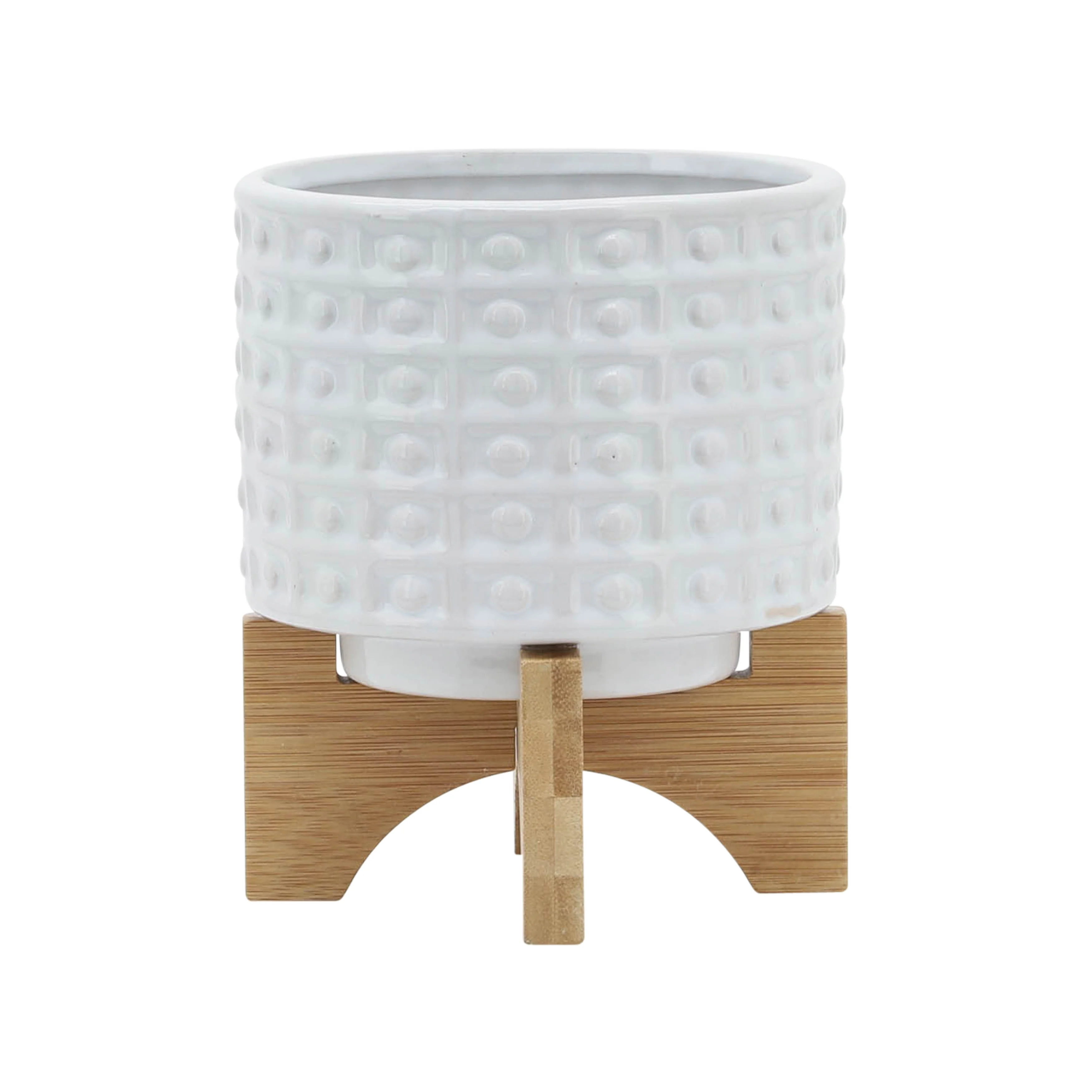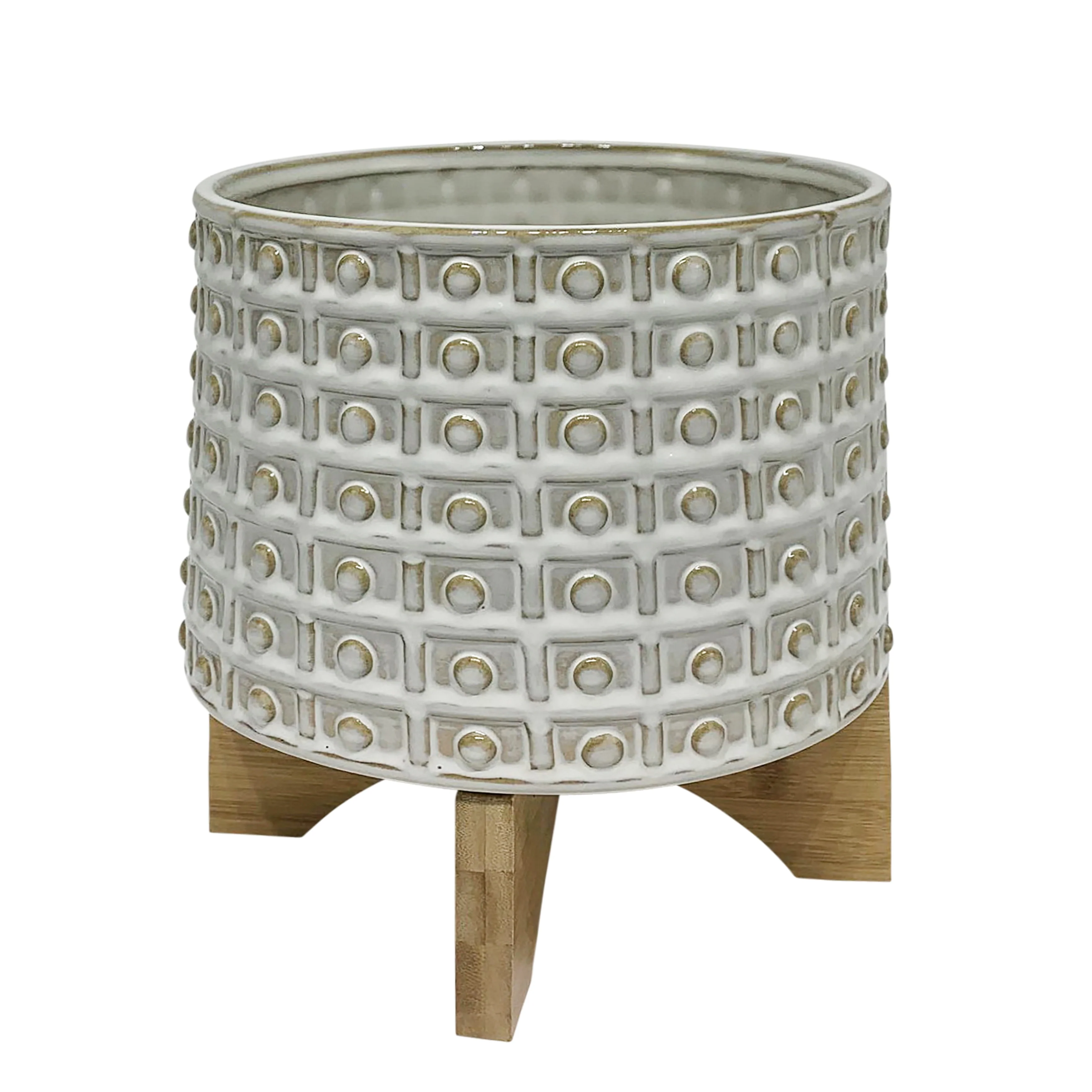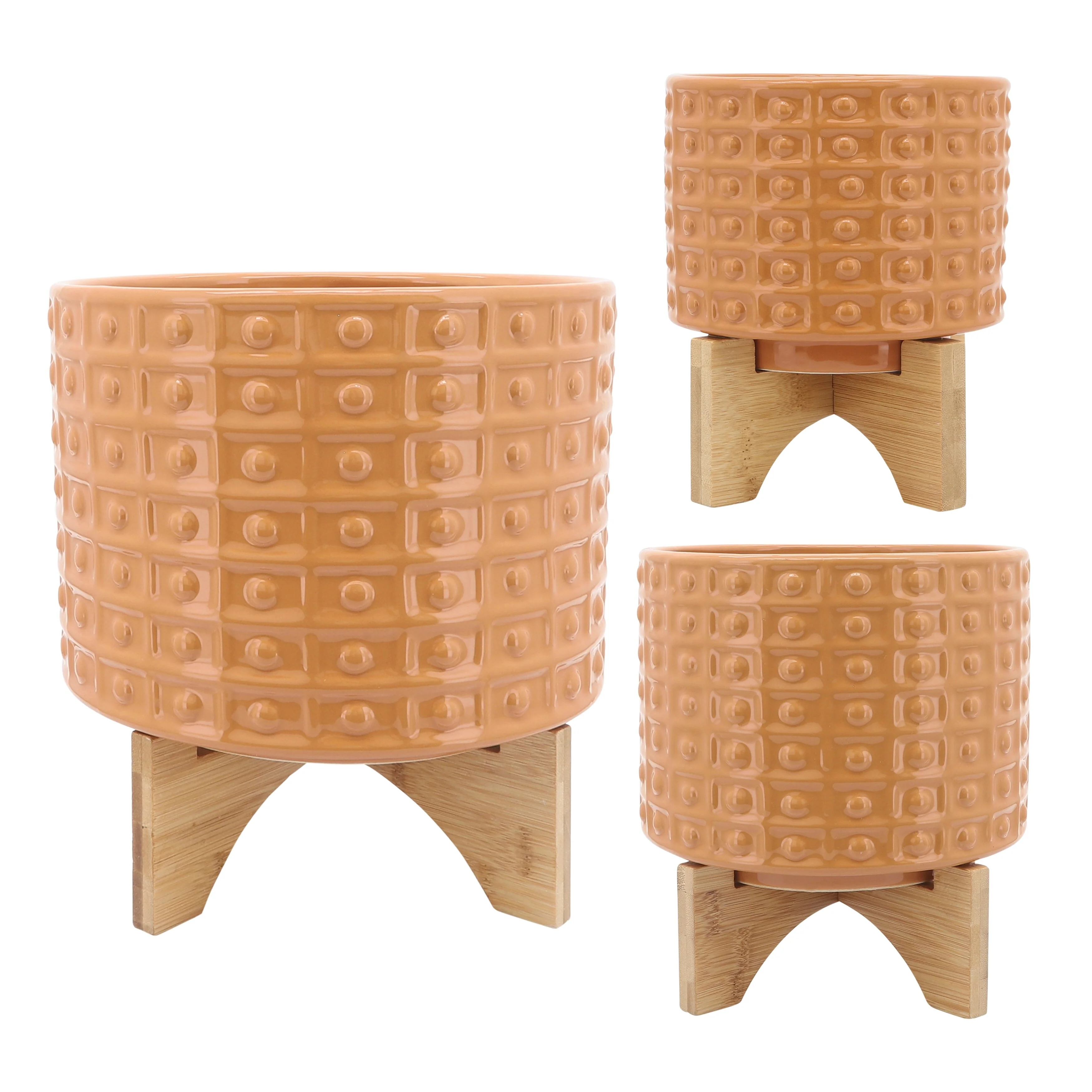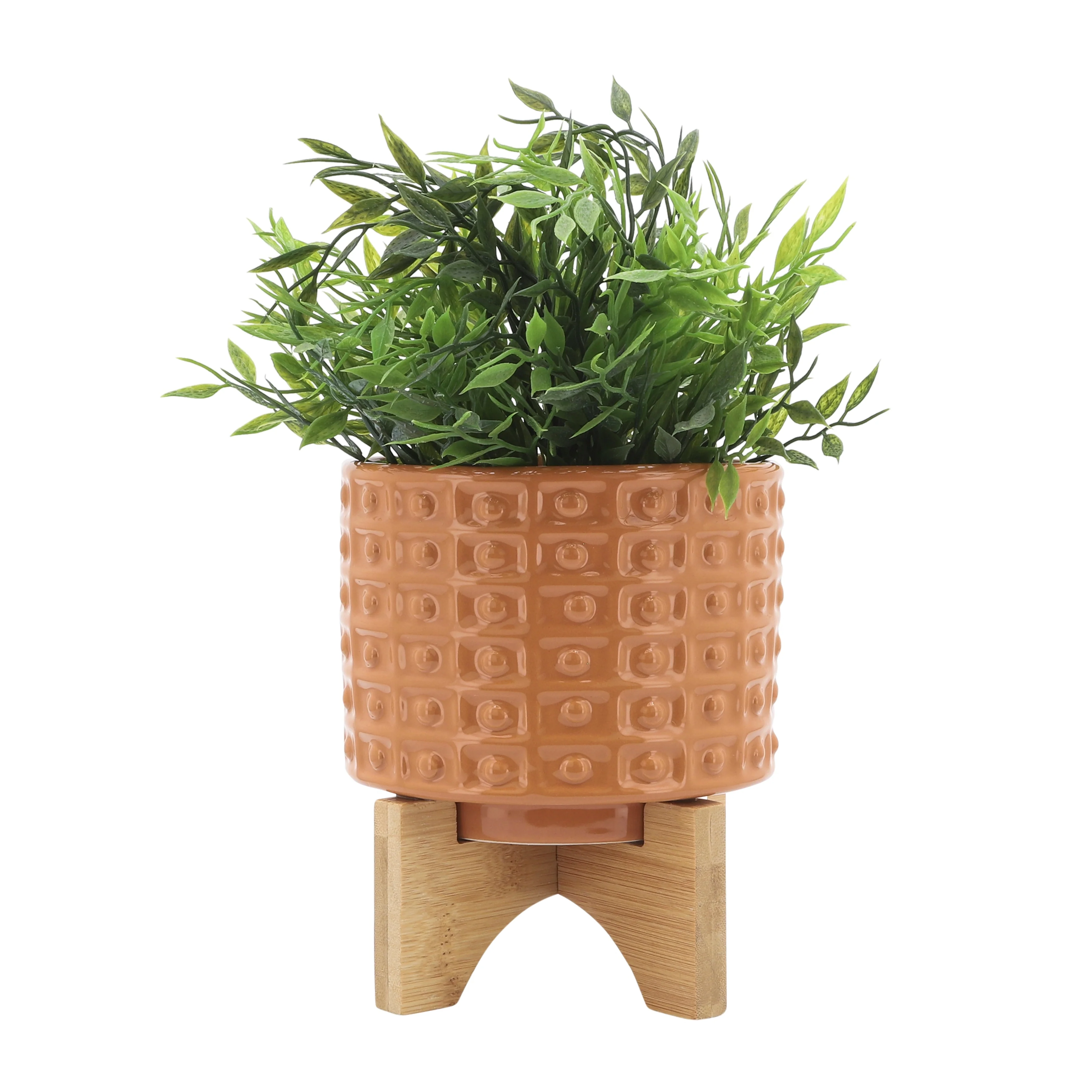 Sagebrook Home Handmade Ceramic Planter Pot with Natural Wood Stand