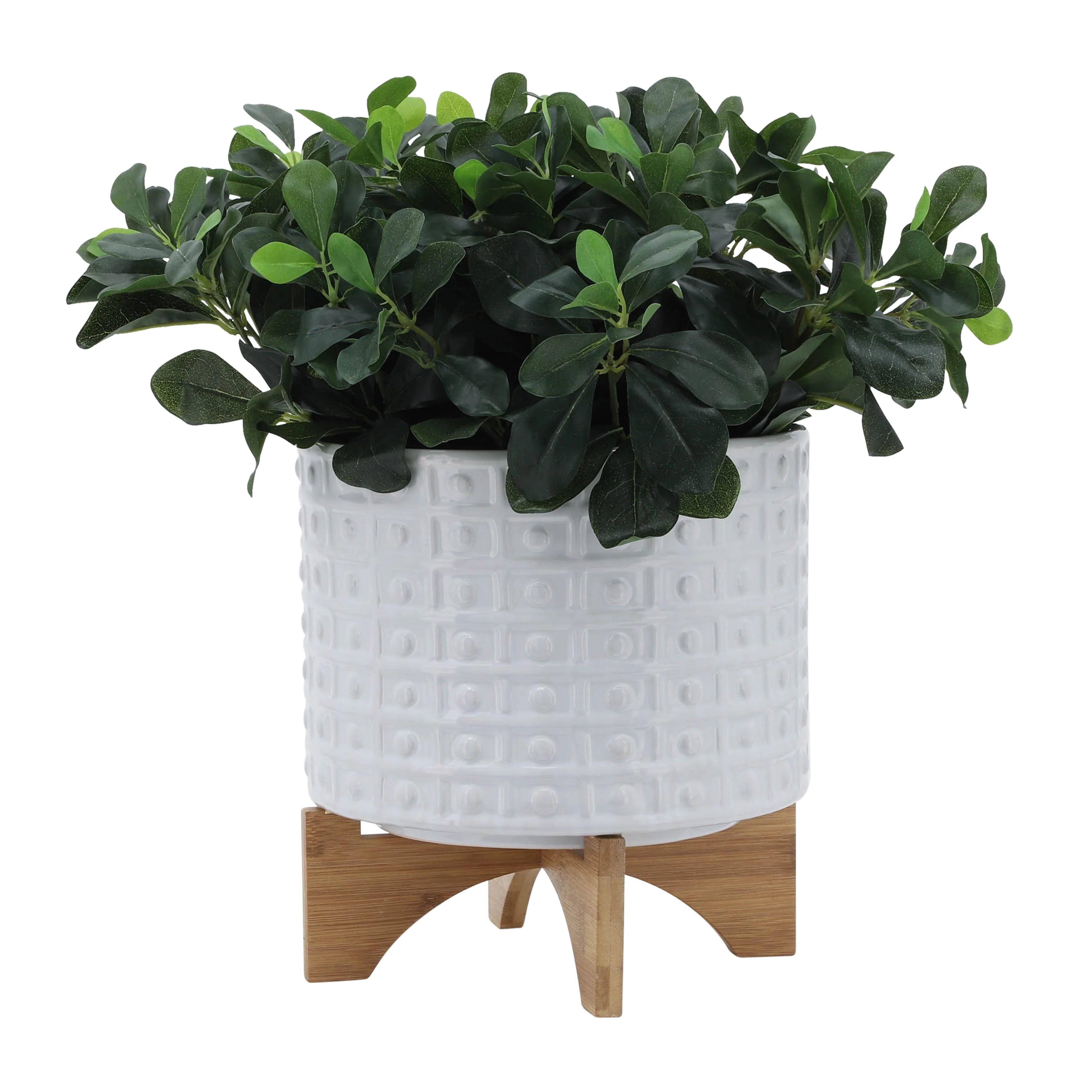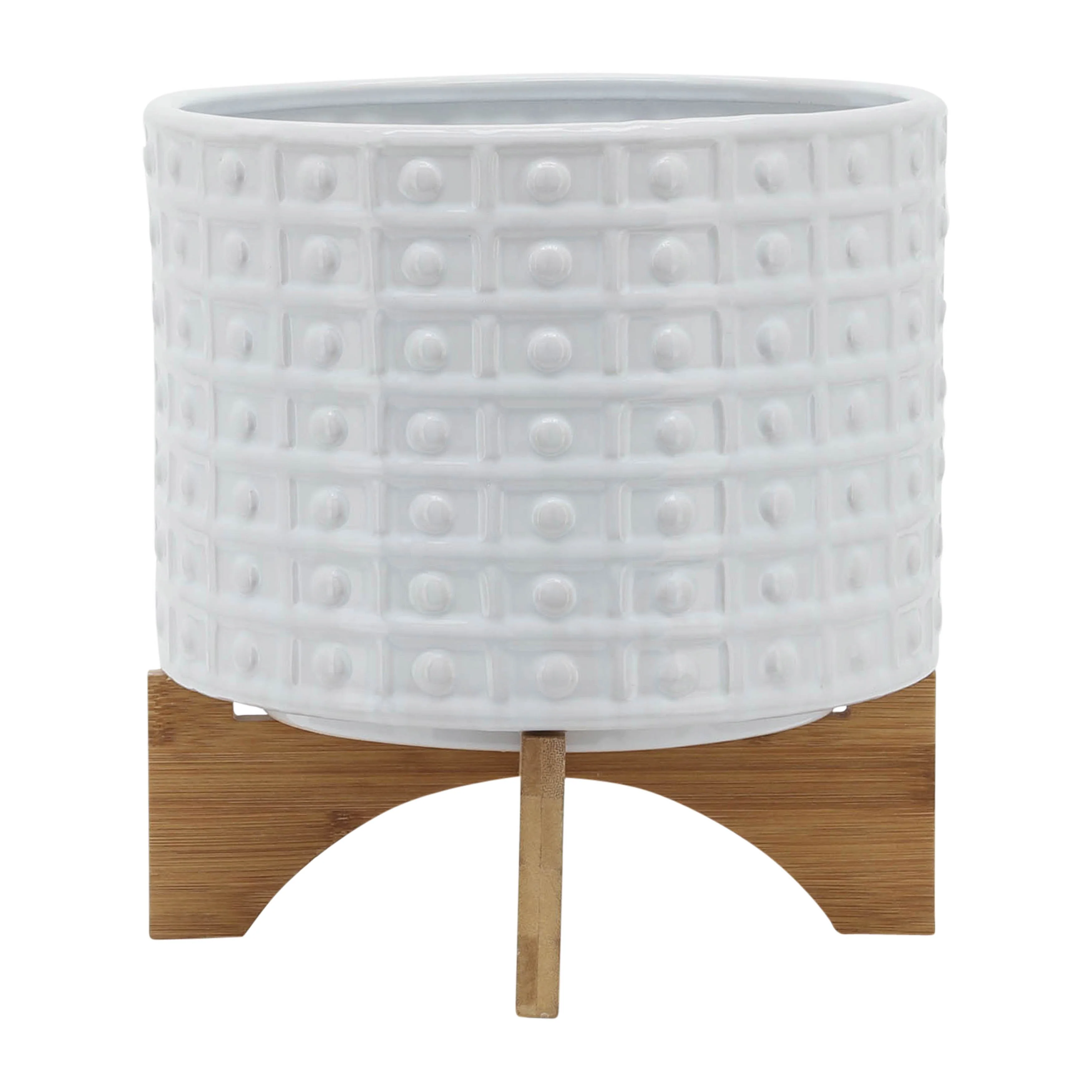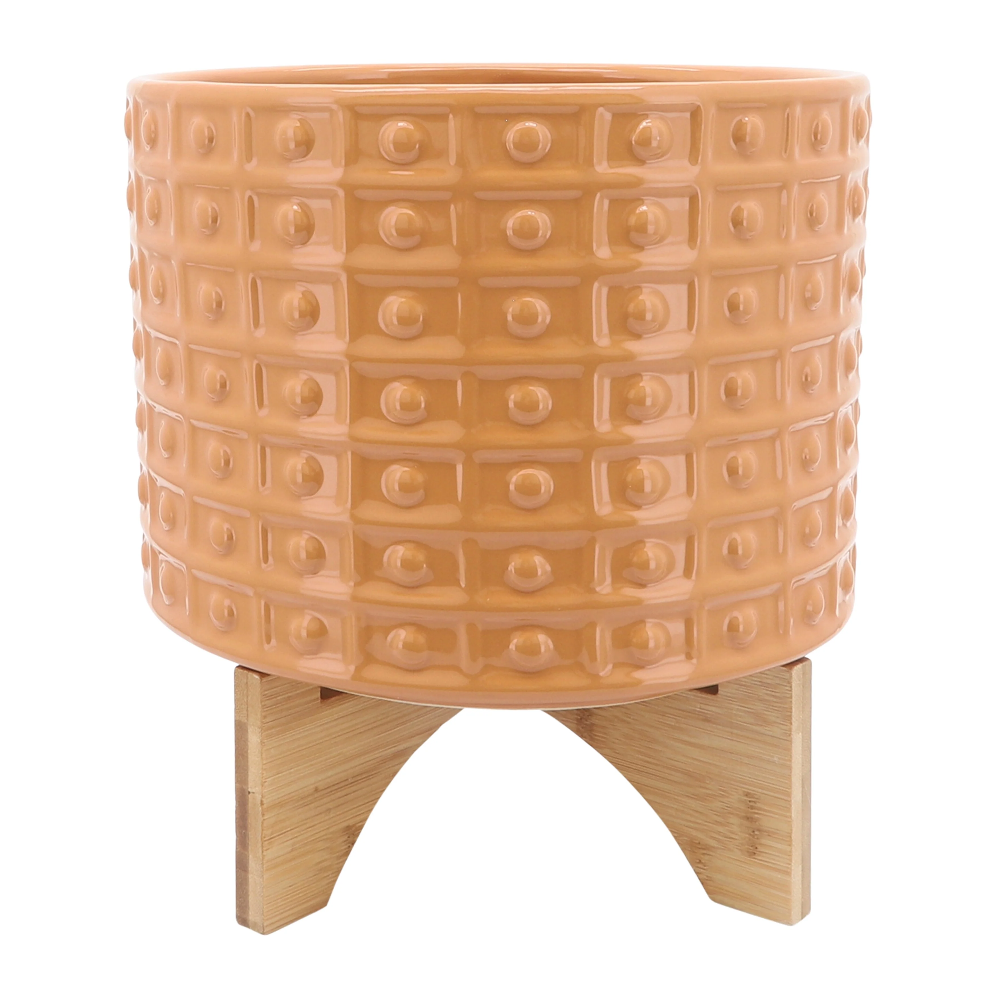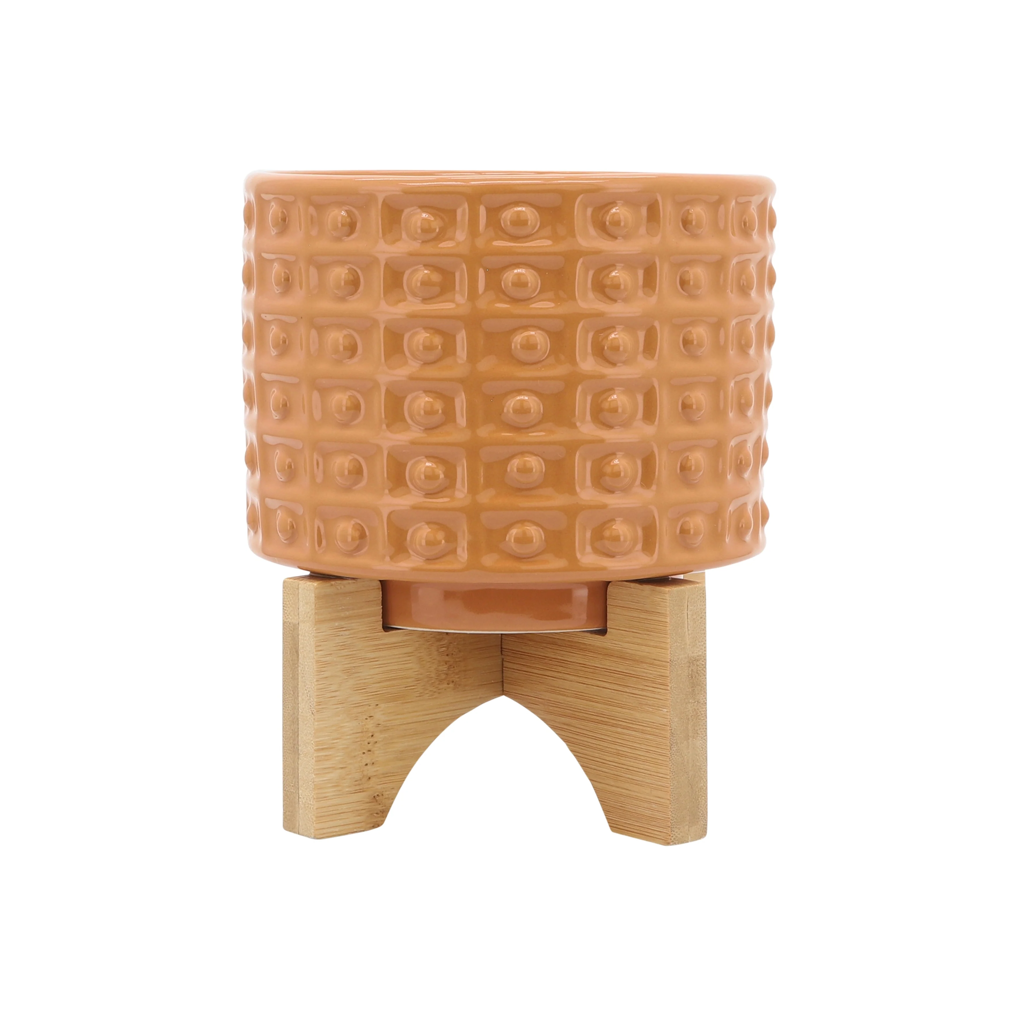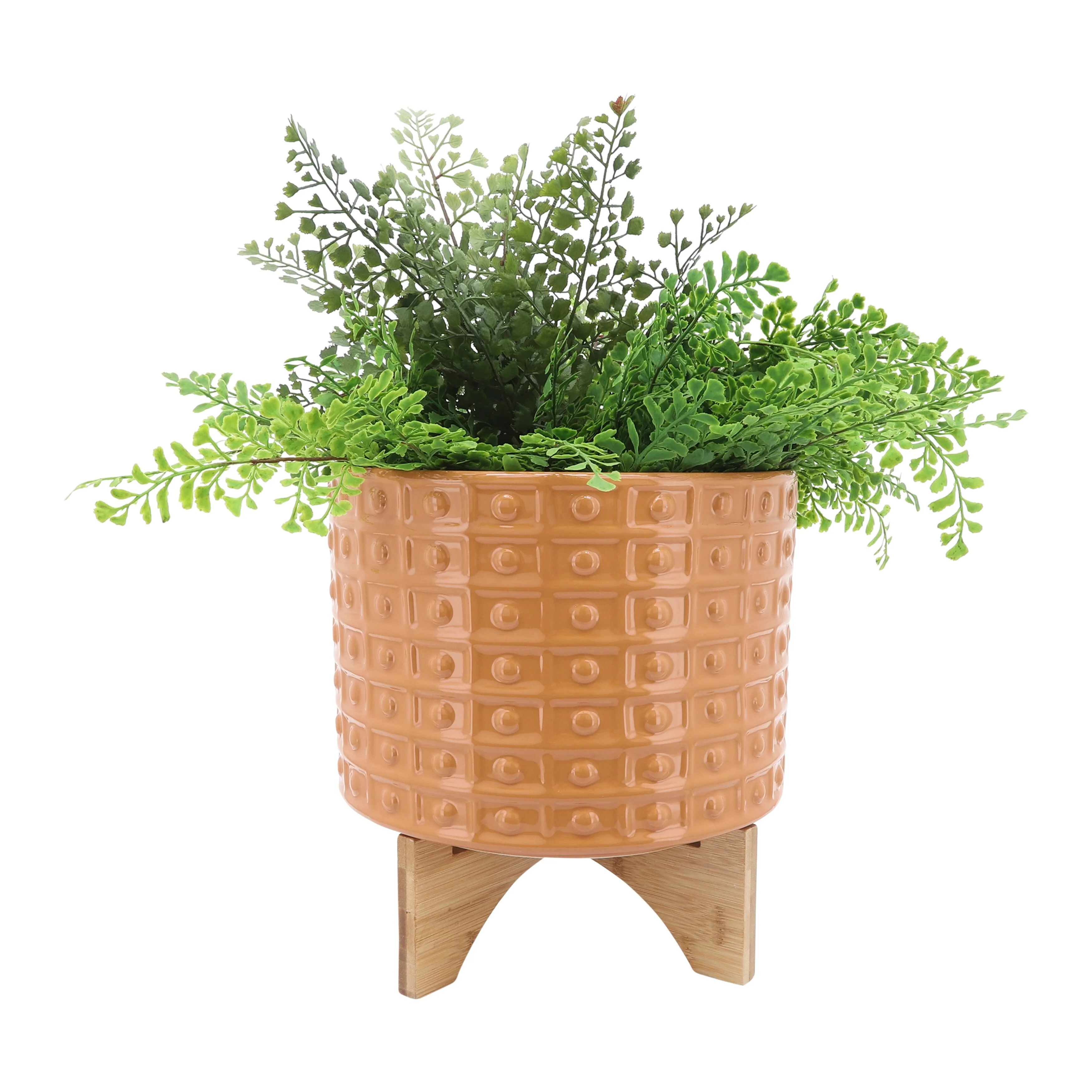 Sagebrook Home Handmade Ceramic Planter Pot with Natural Wood Stand
