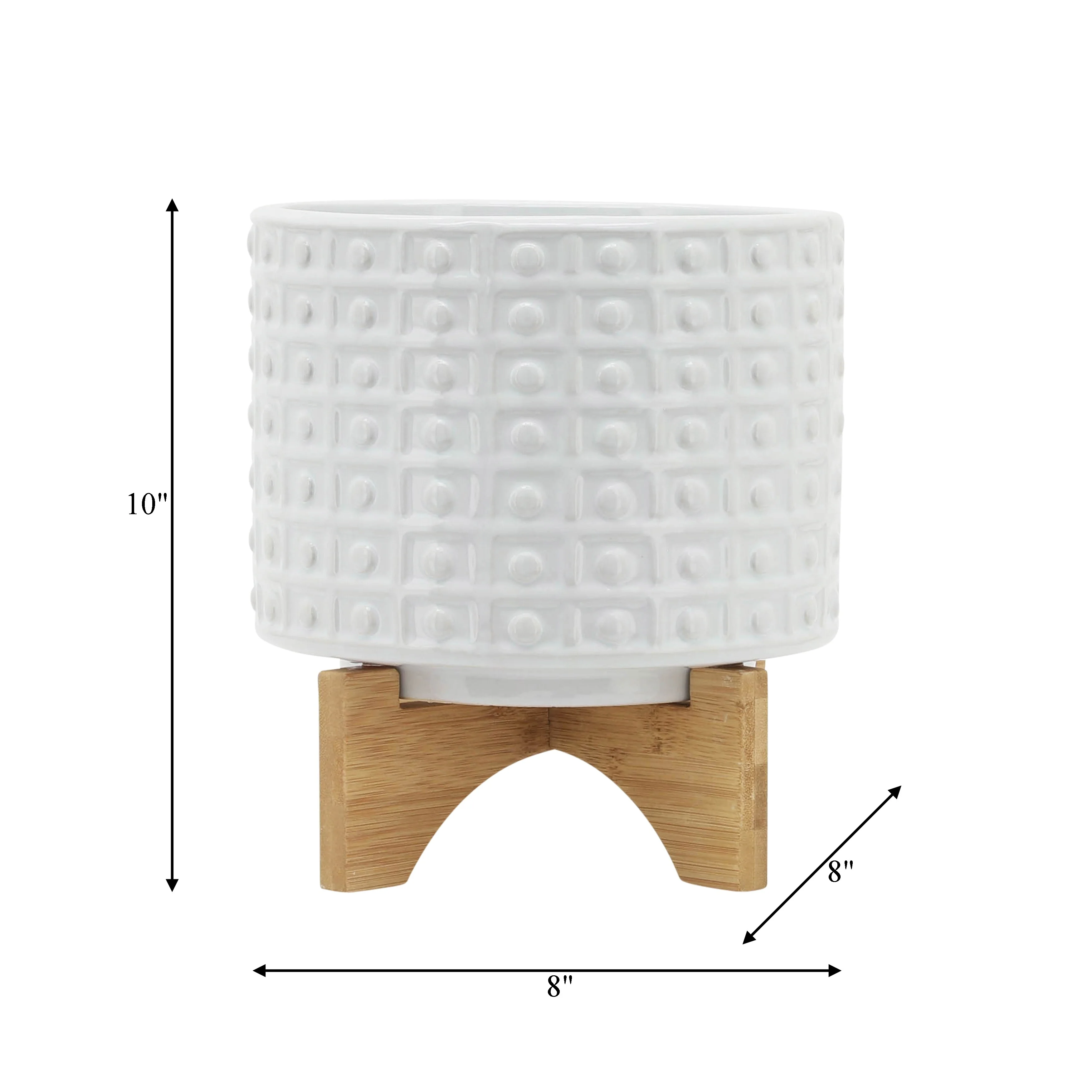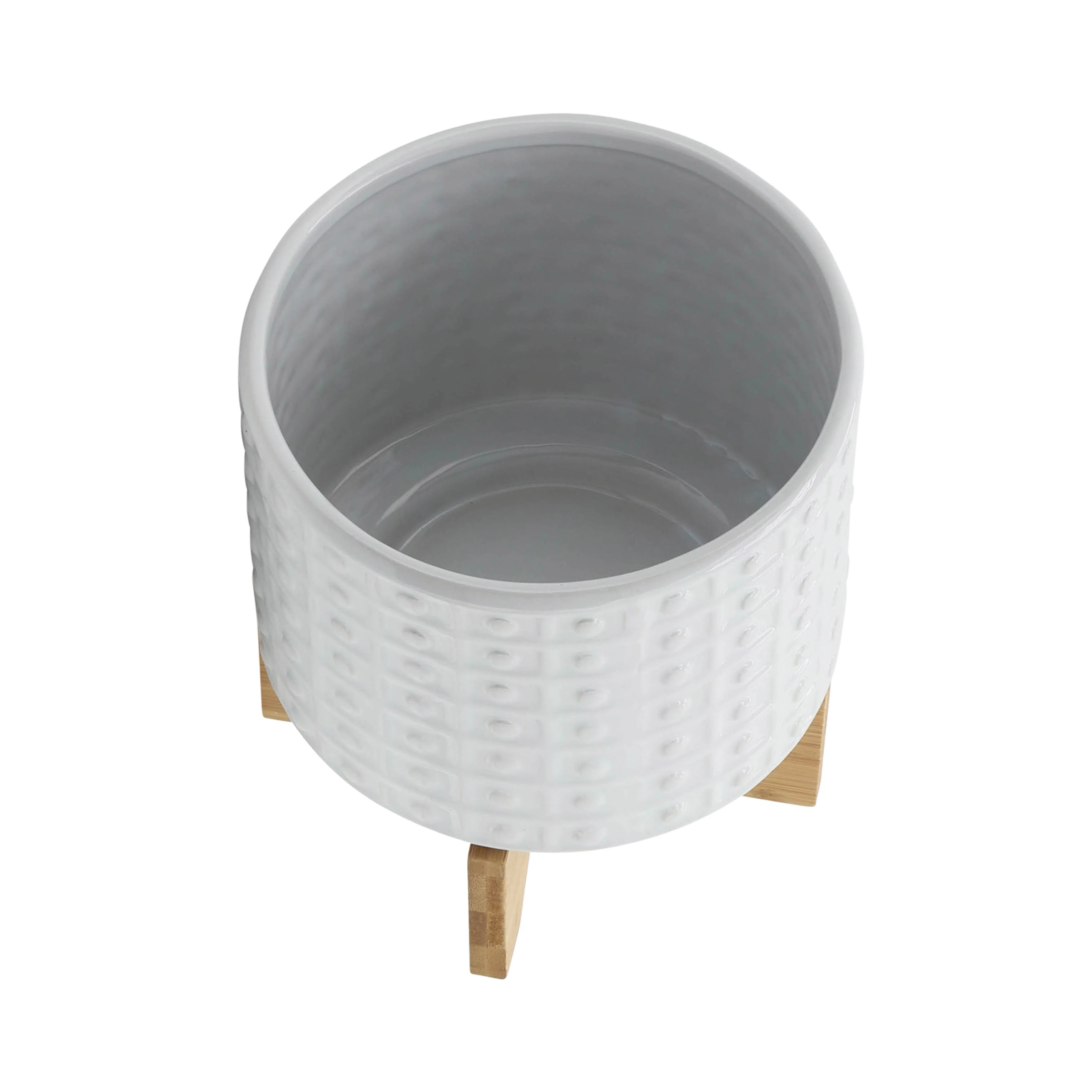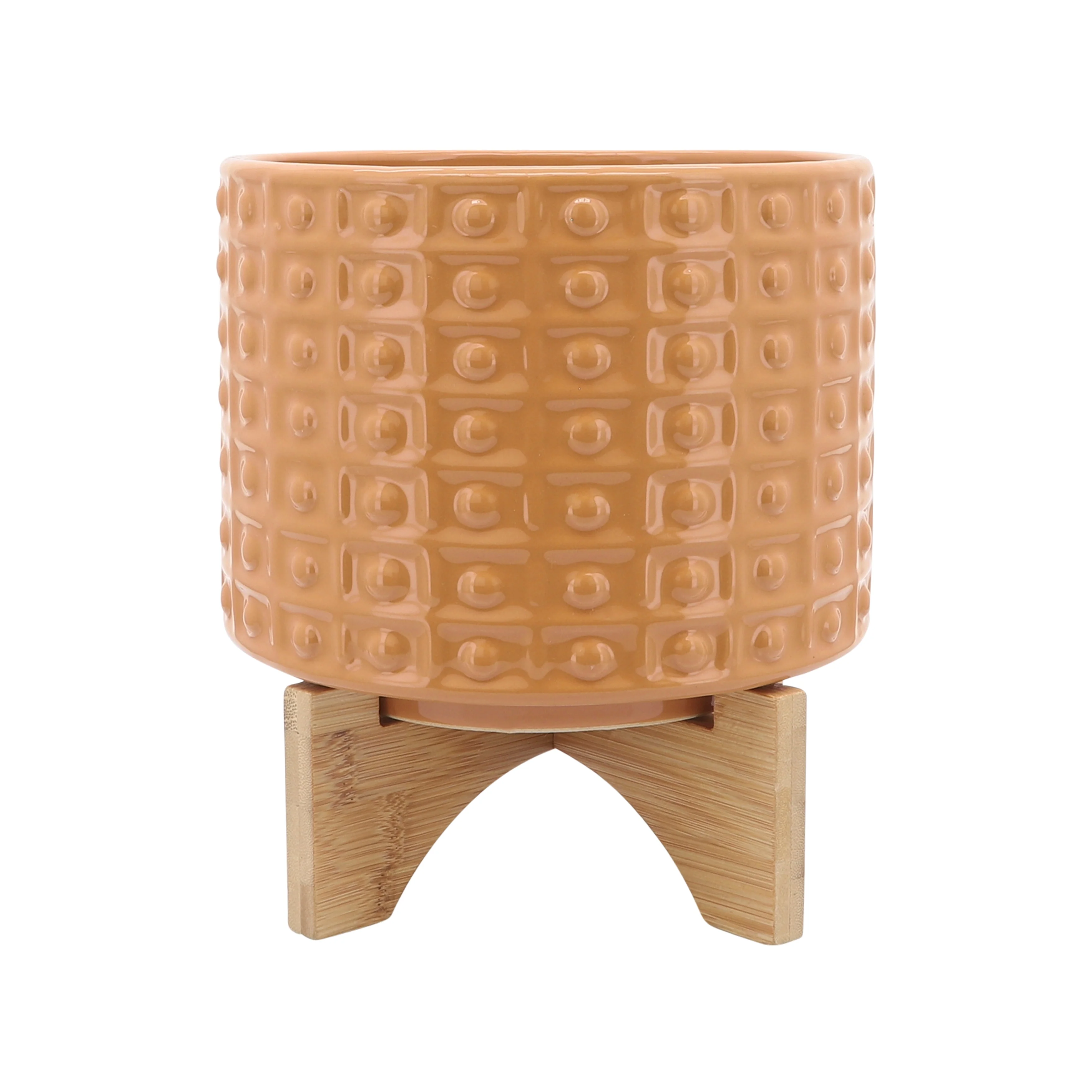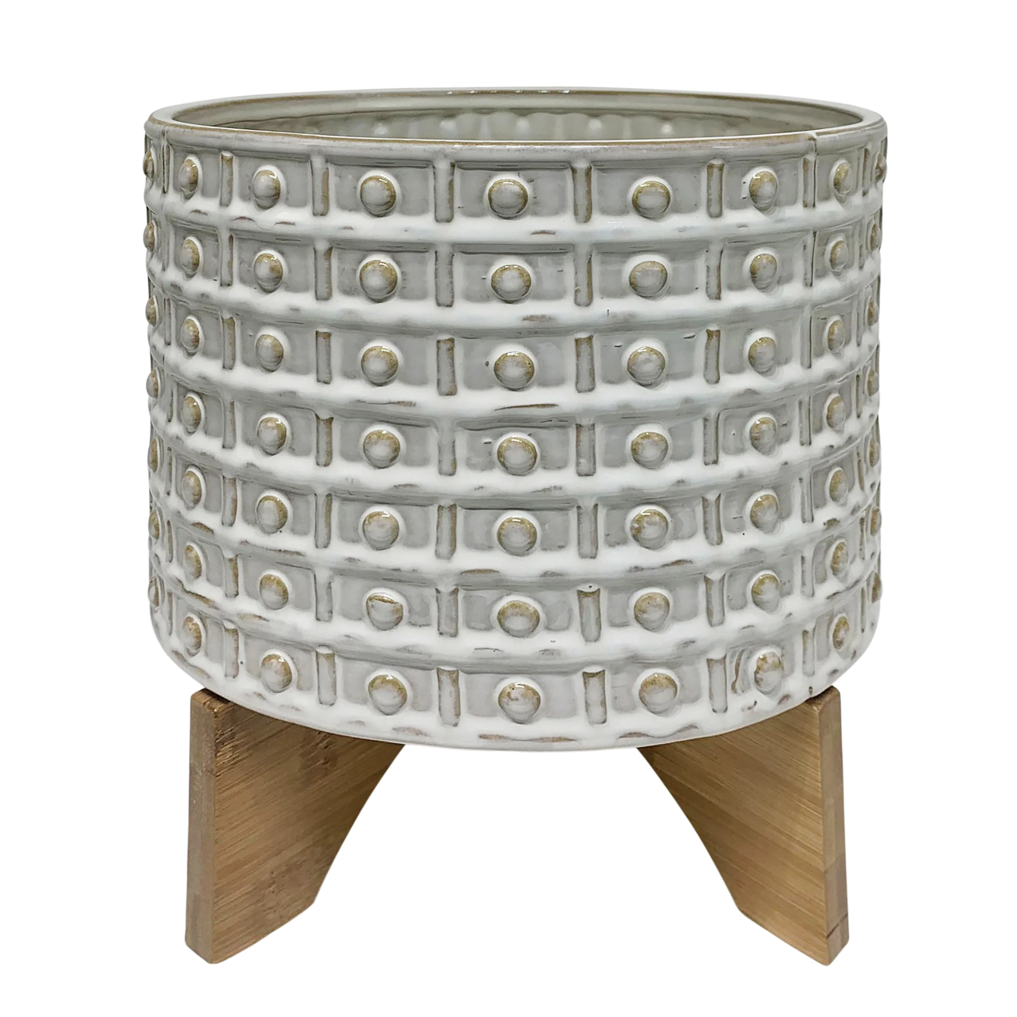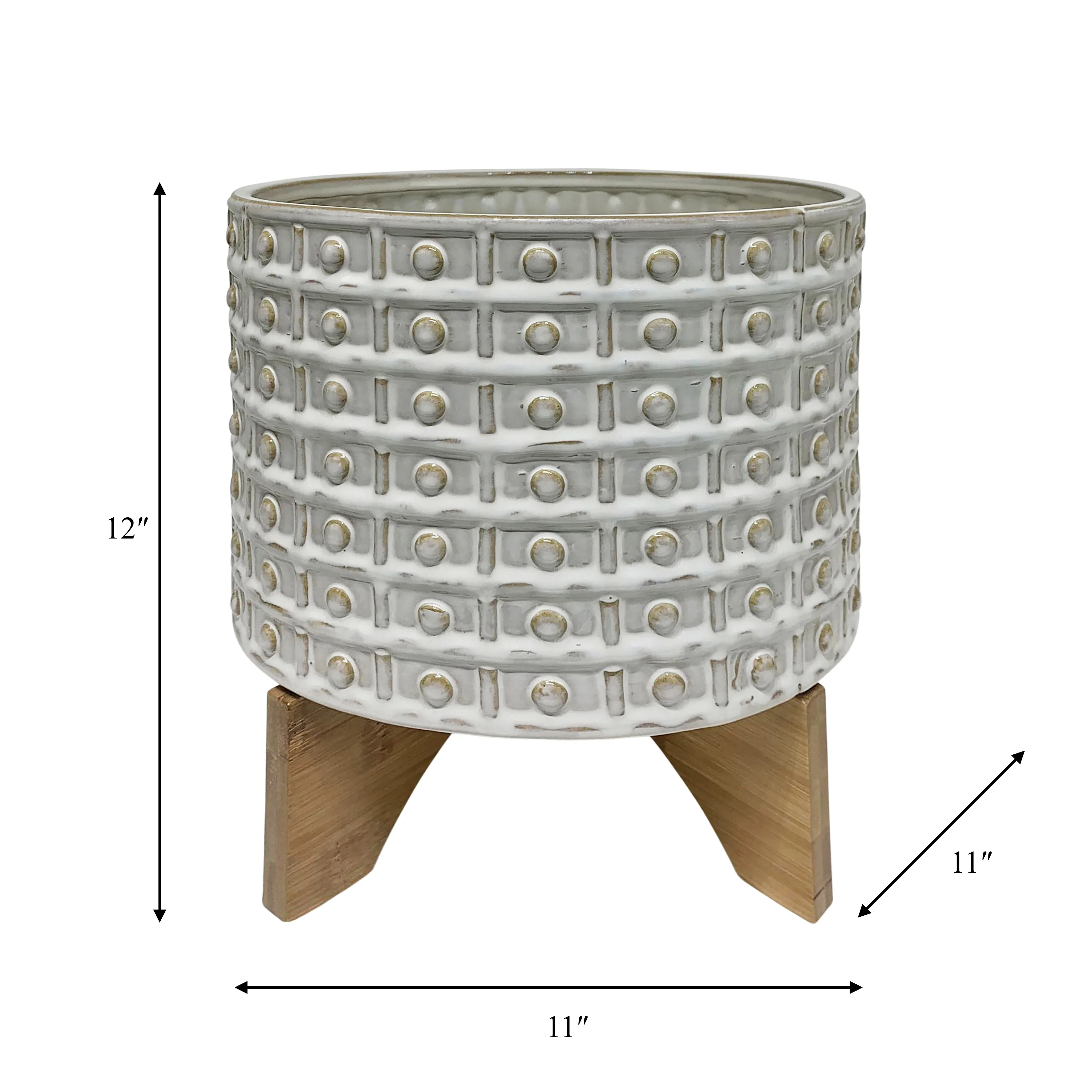 Sagebrook Home Handmade Ceramic Planter Pot with Natural Wood Stand