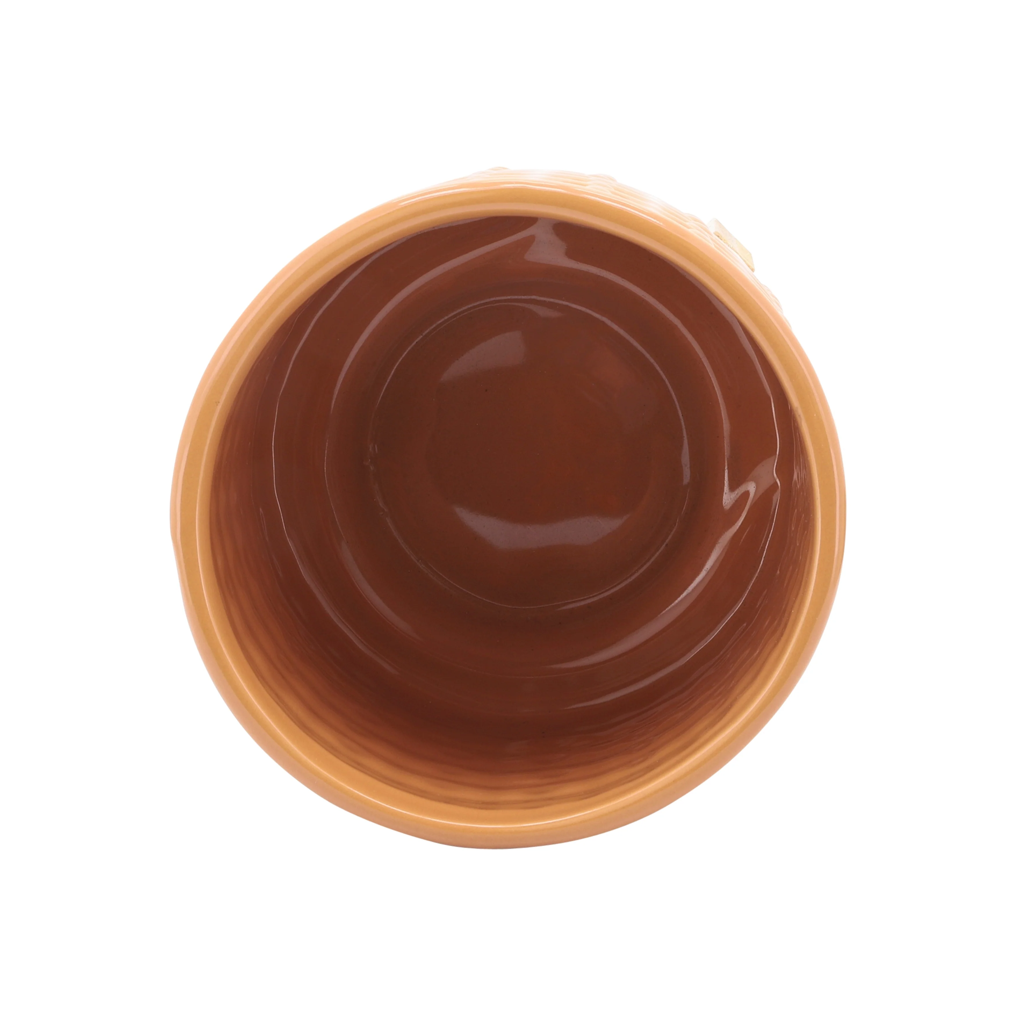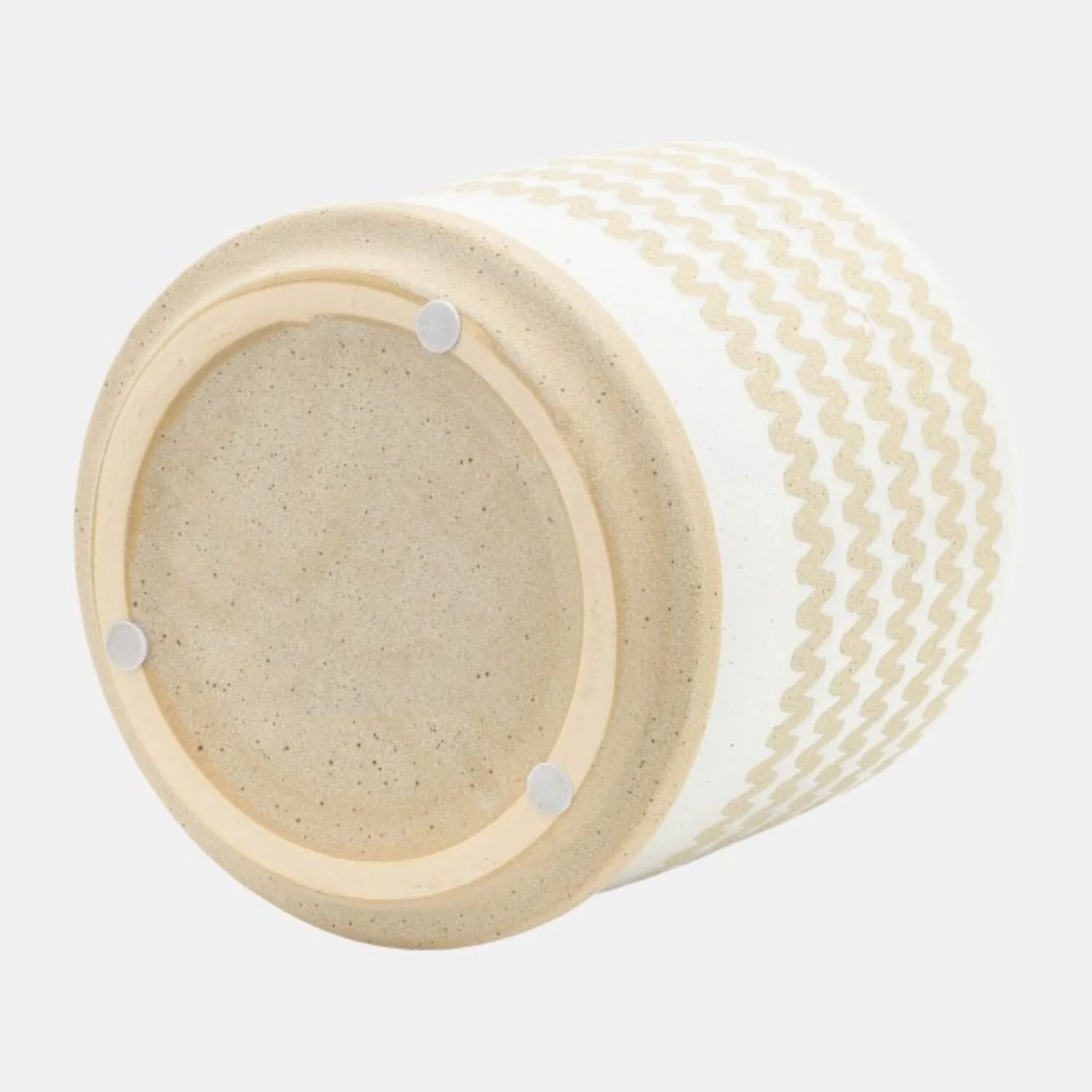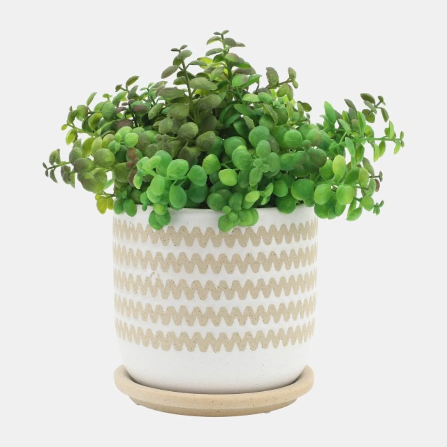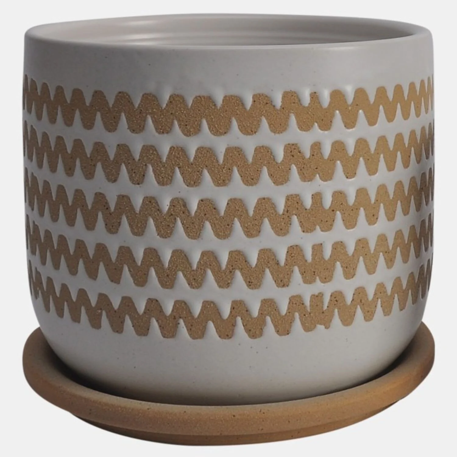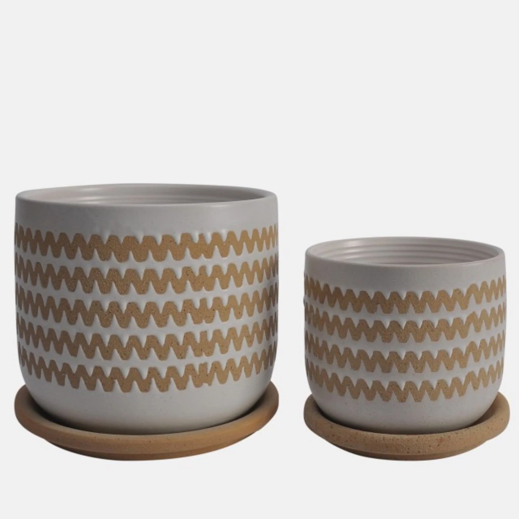 Ceramic Zig Zag Planters With Saucers 6" White and Brown Set of 2
