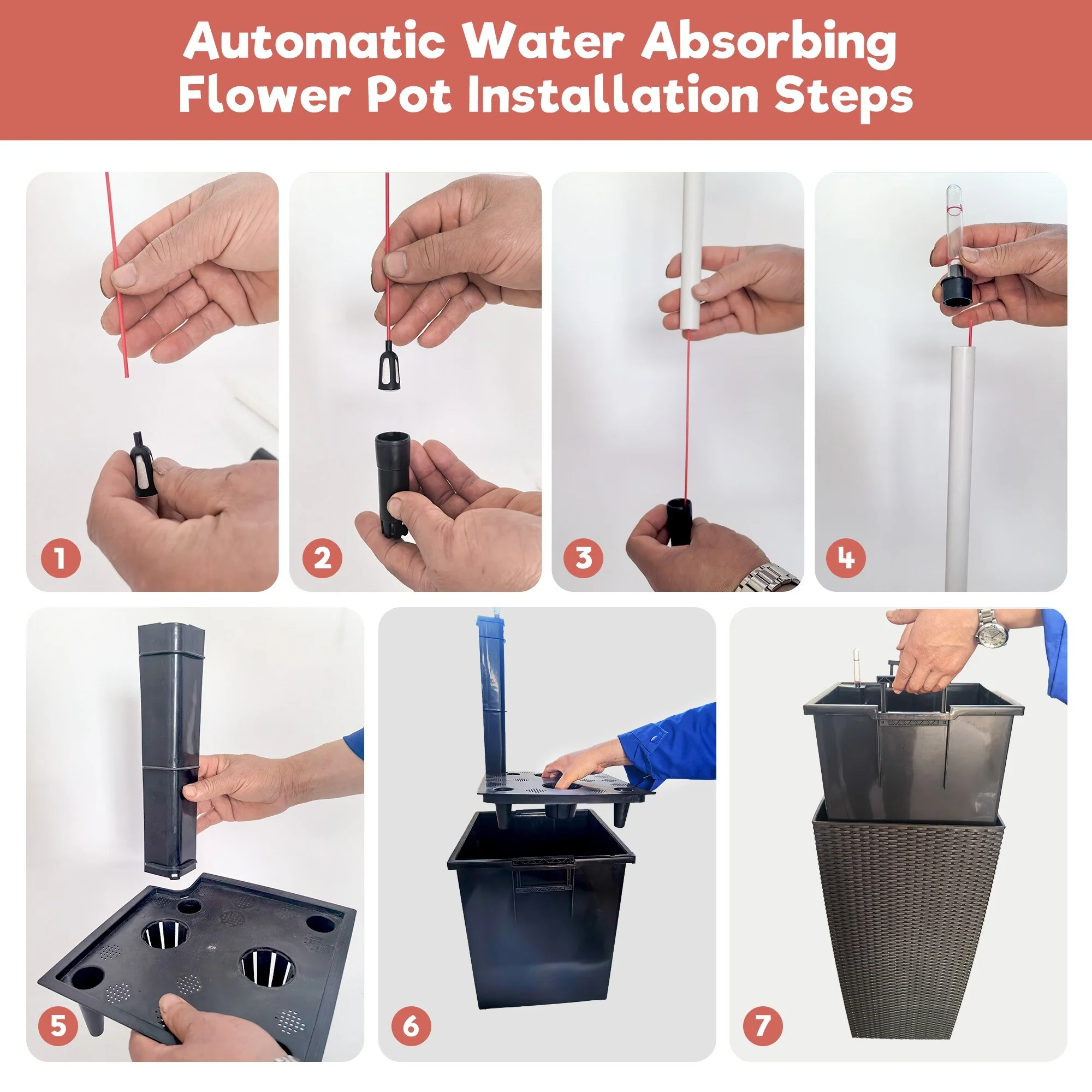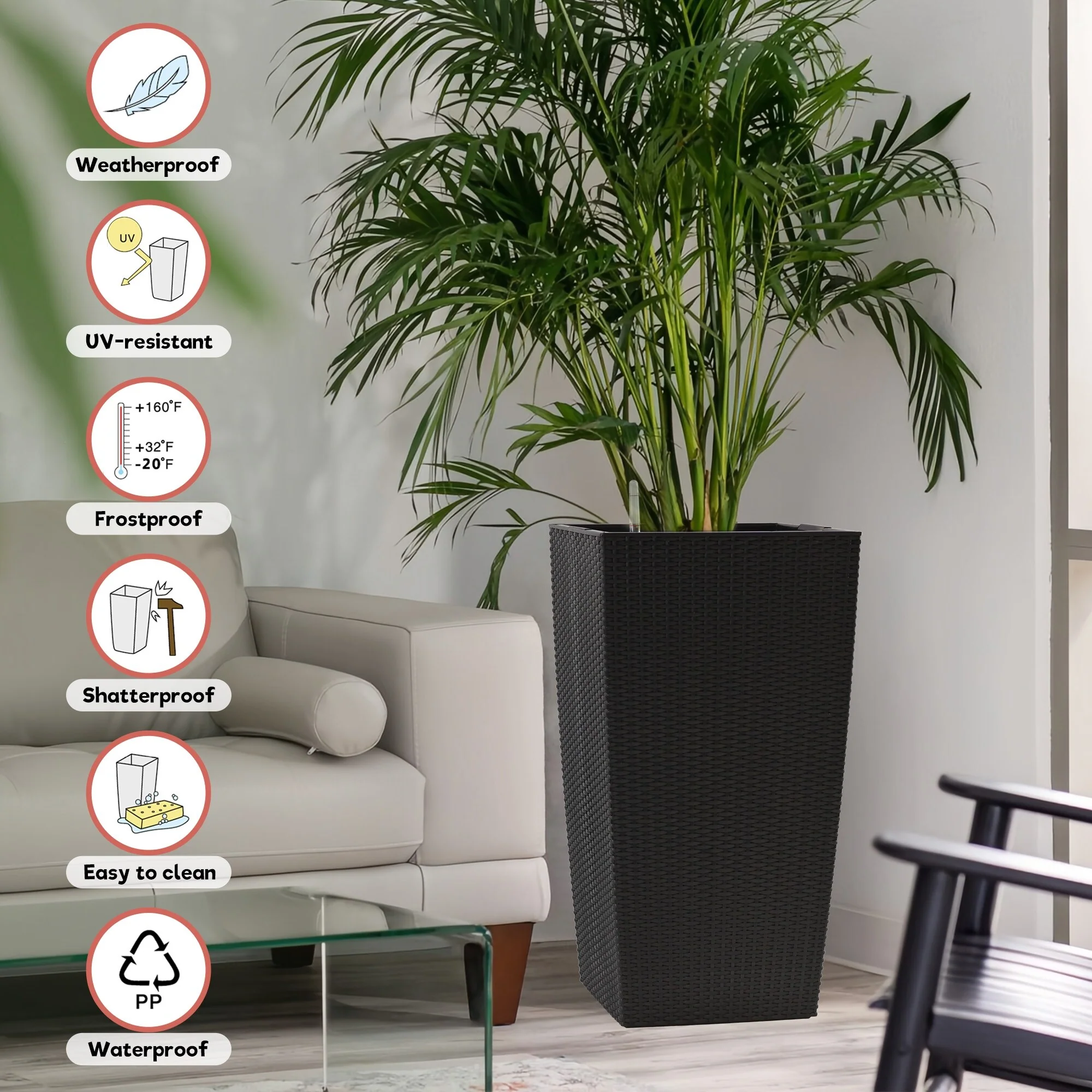 30 in Tall Flower Pots Planter with Self-Watering Drainage Holes&Inner Trays Indoor Outdoor with Drain Holes,Water Level Monitor