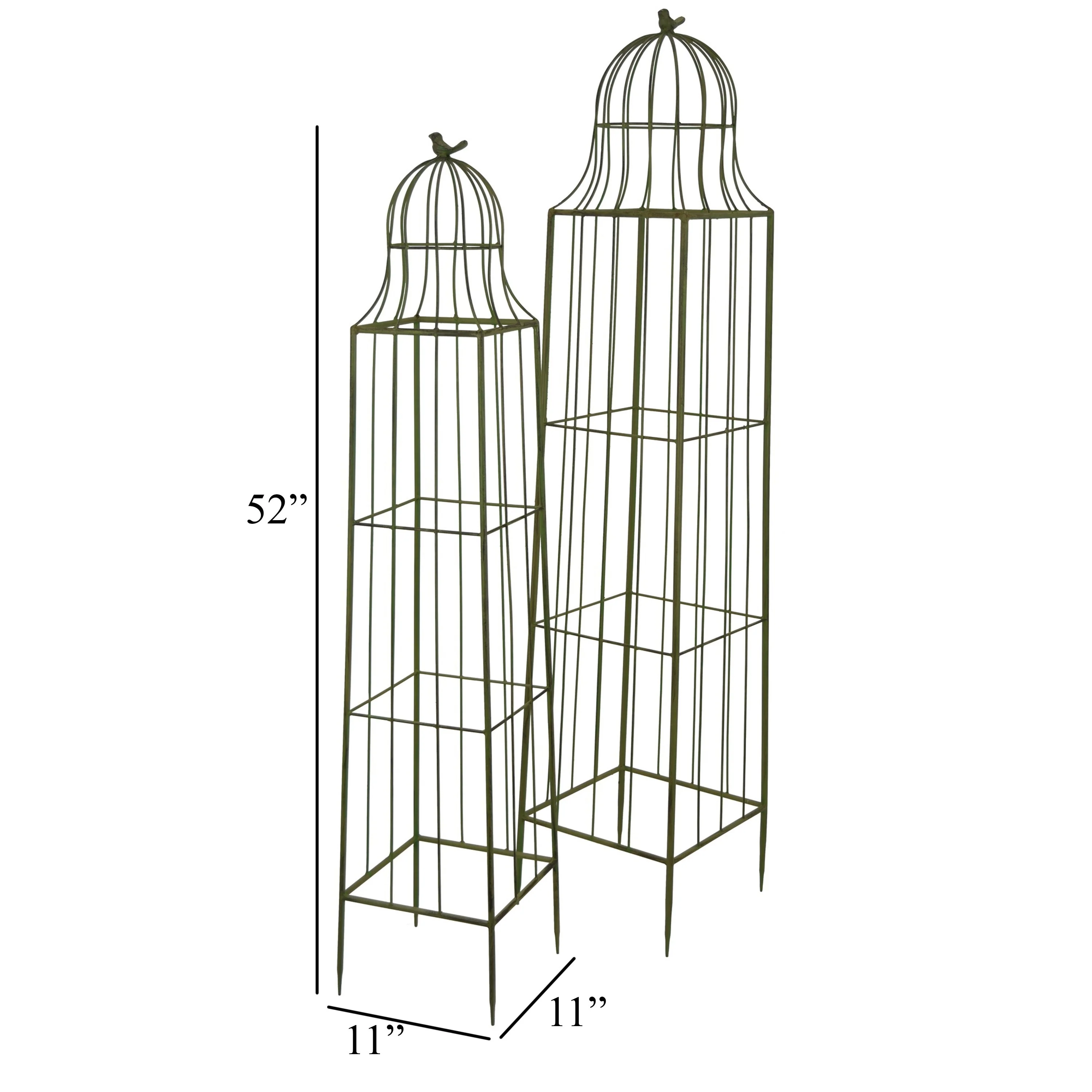 Meryl Plant Trellis Set of 2, Garden Tall Cage Design, Green Metal