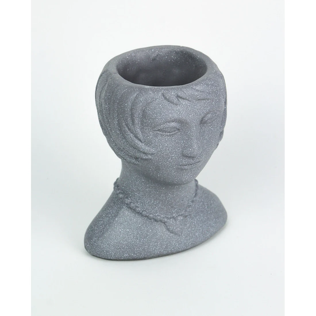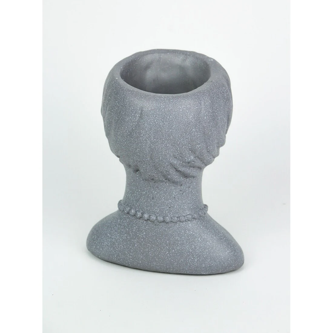 Roaring 20'S Flapper Lady Gray Concrete Head Mini Planter 6 Inch - 6 X 5 X 4 inches