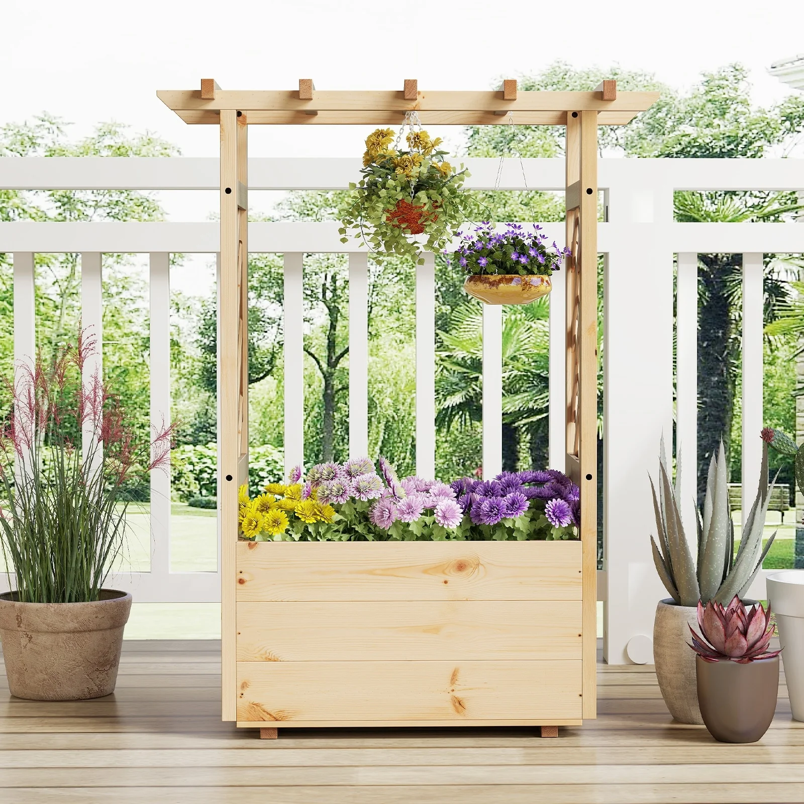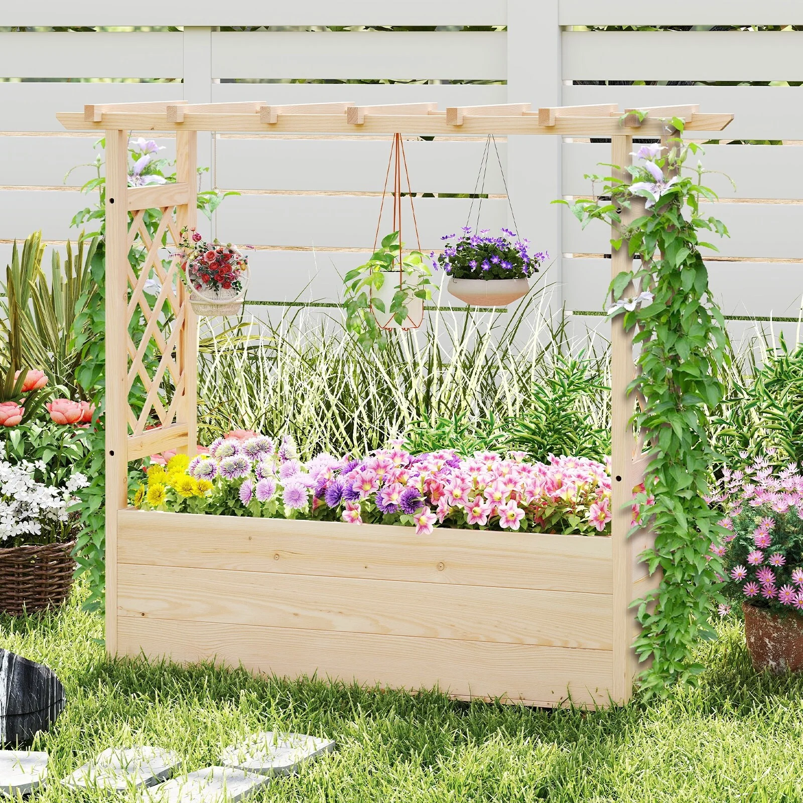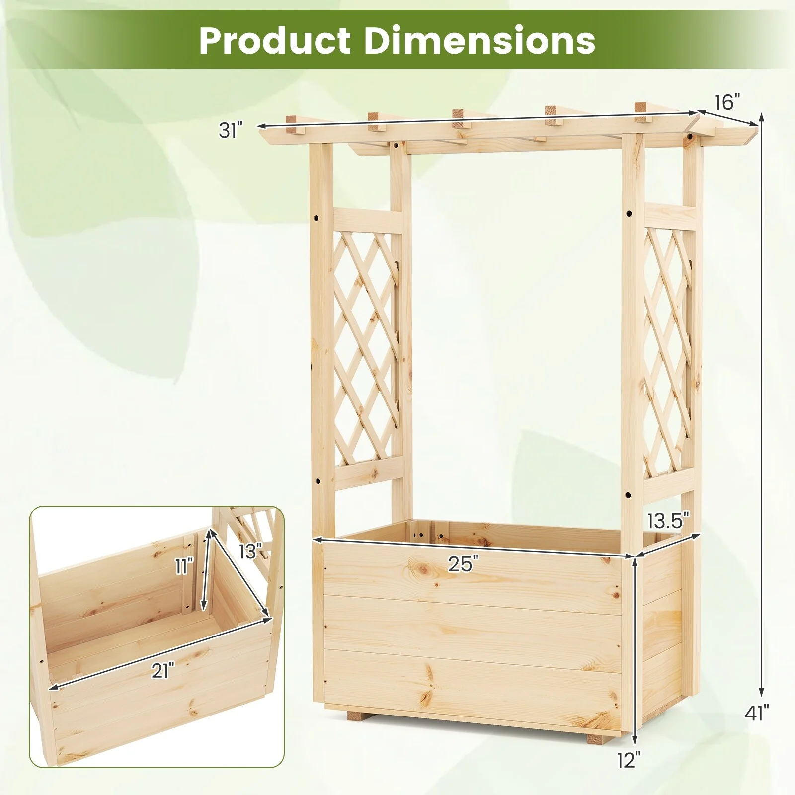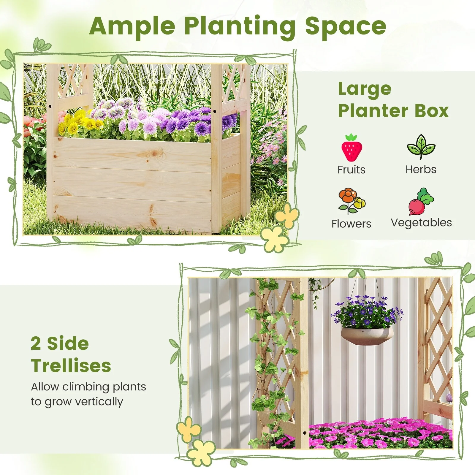 Elevated Pine Wood Garden Bed with Trellis and Drainage Slats Perfect for Herb Garden