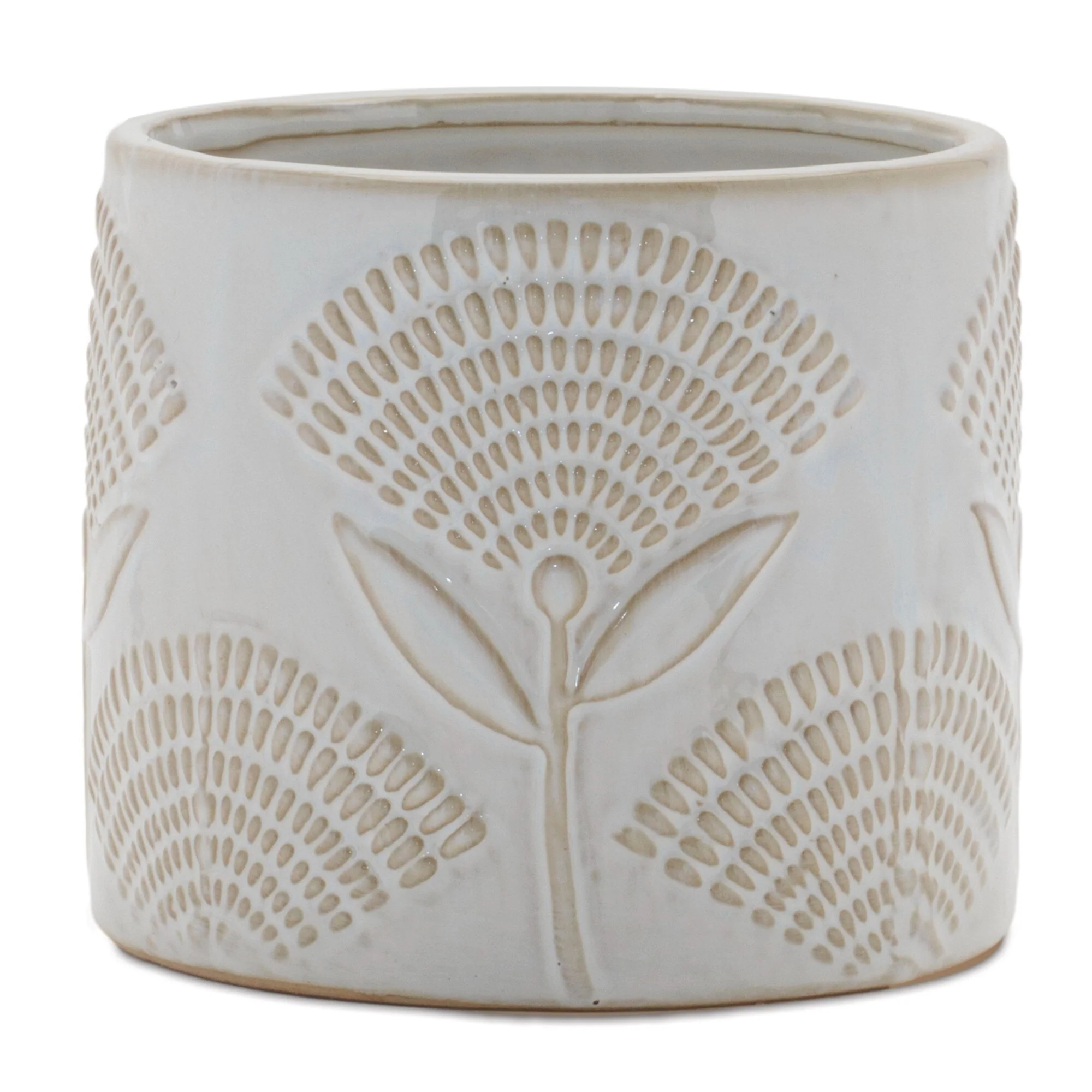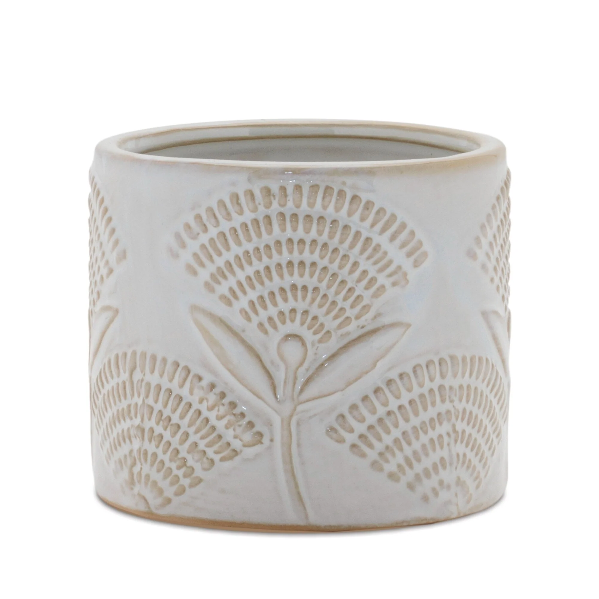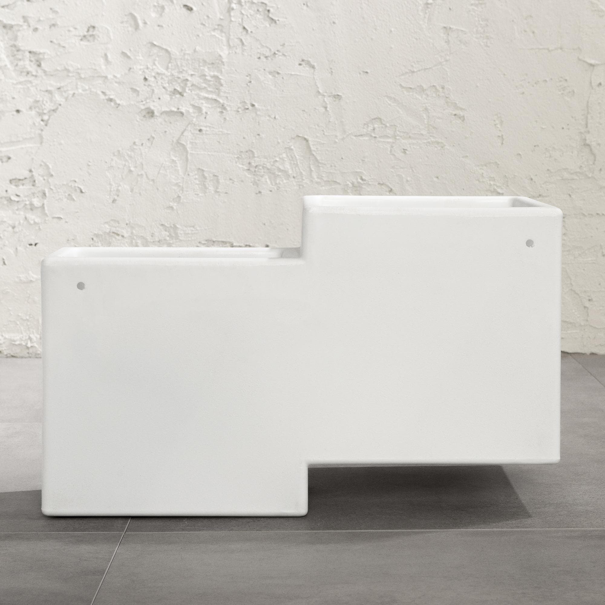 Fiji Accent Planter w Loop Handles, Pedestal White Ceramic 16 Inch