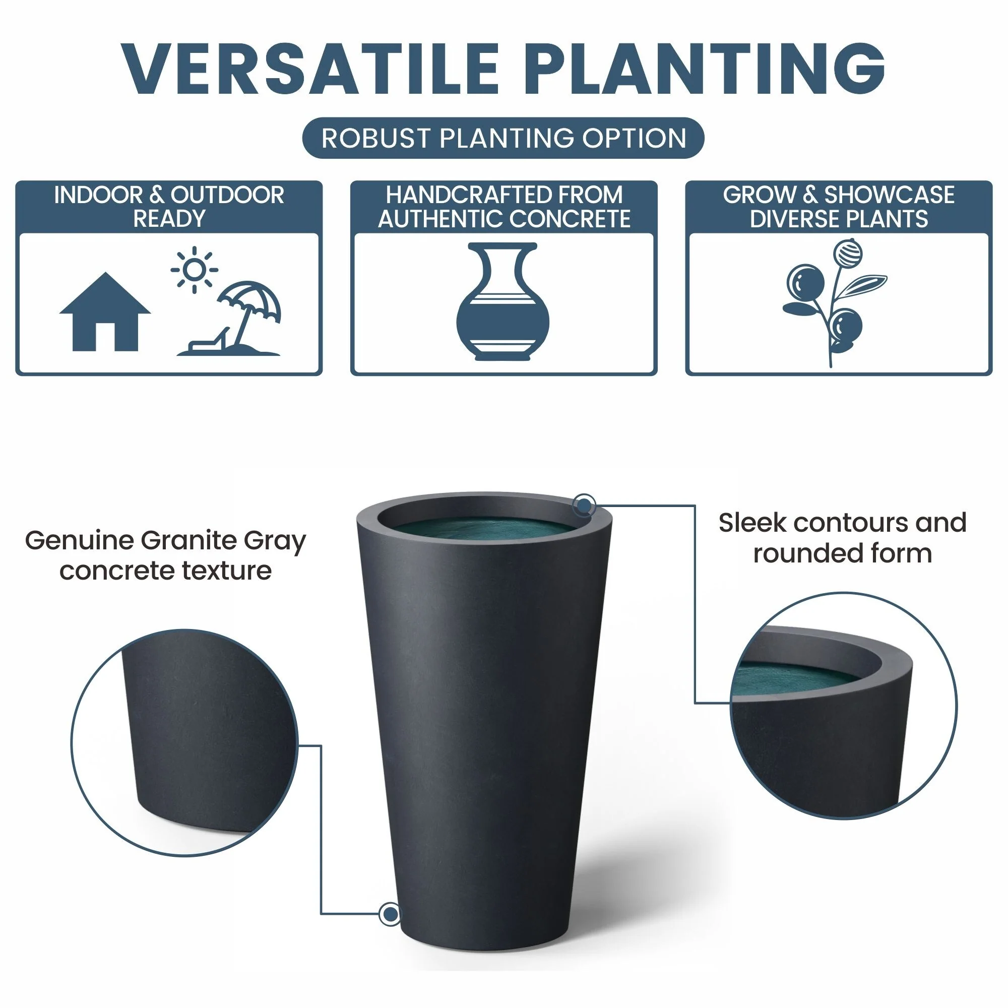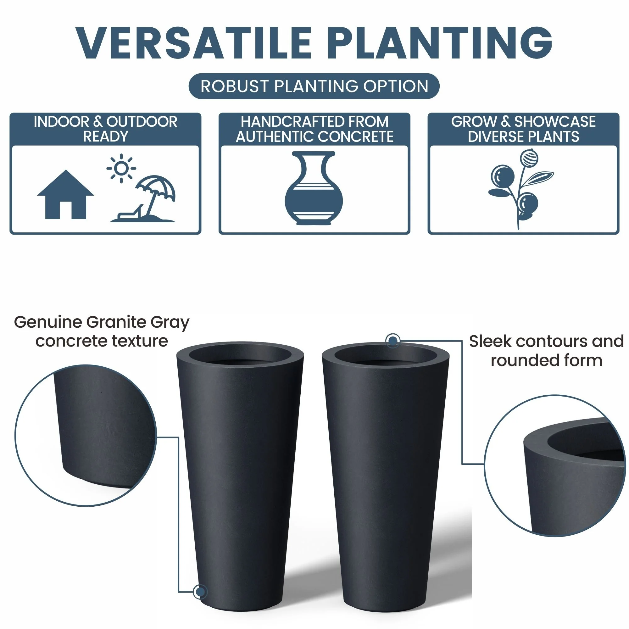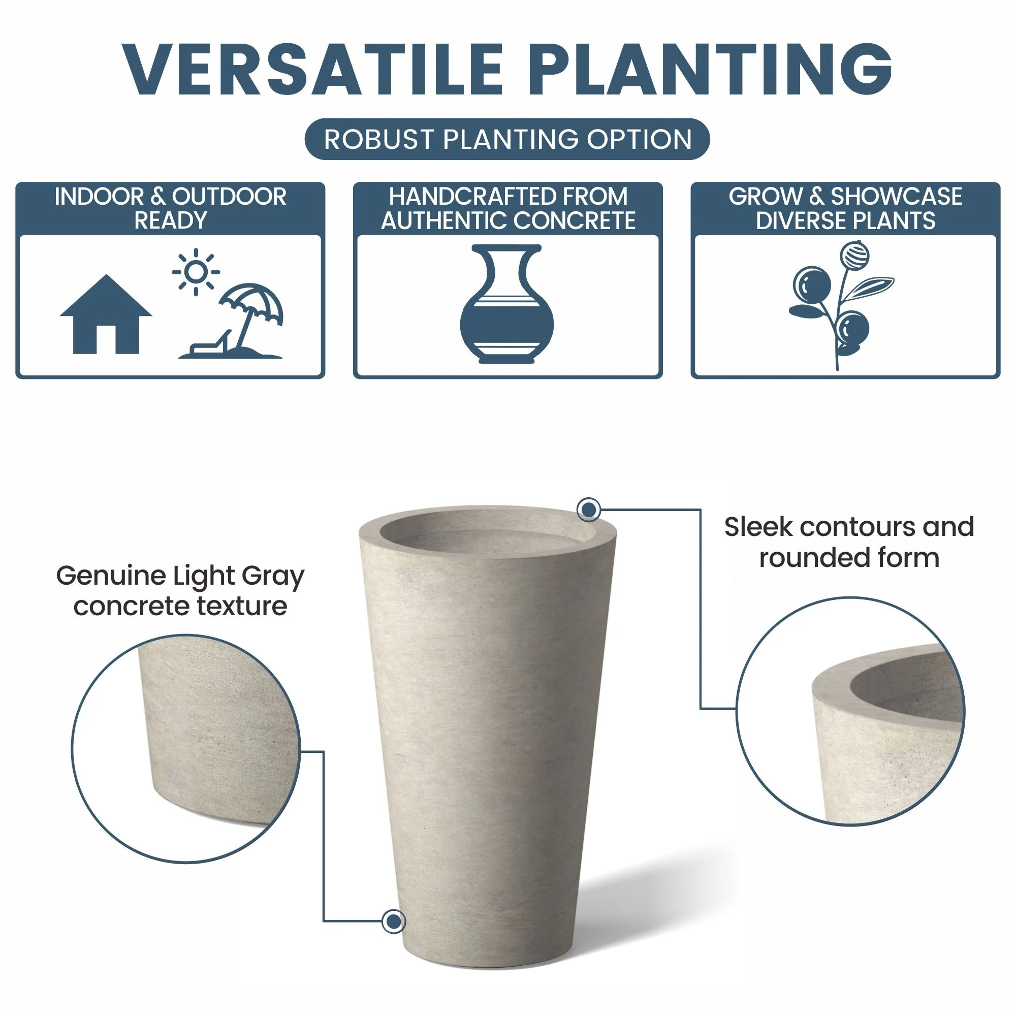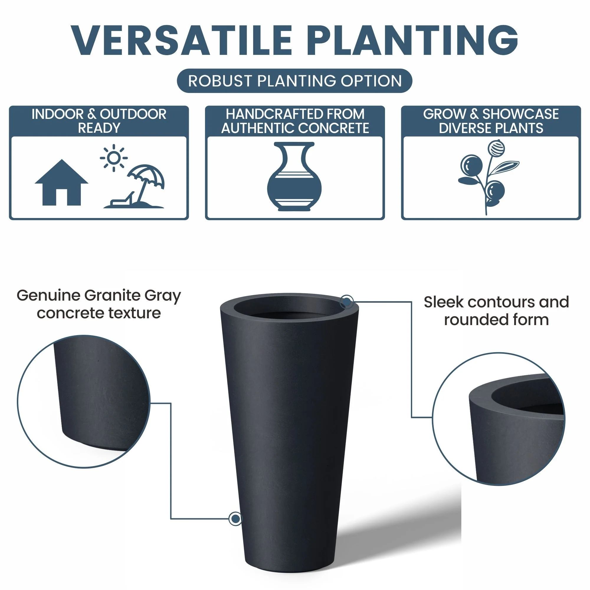 Tall Concrete Round Plant Pots / Large Indoor and Outdoor flower Planters with drainage holes