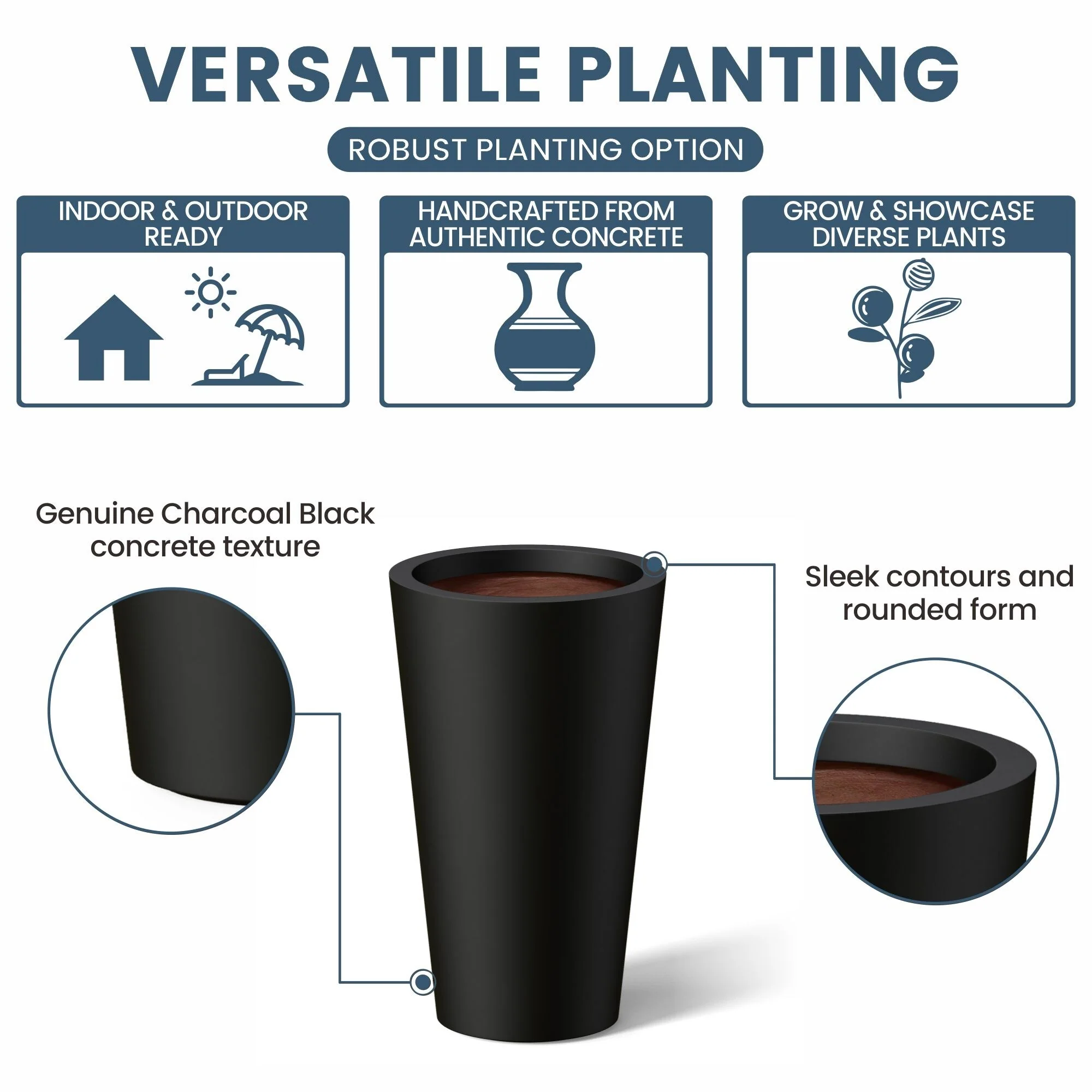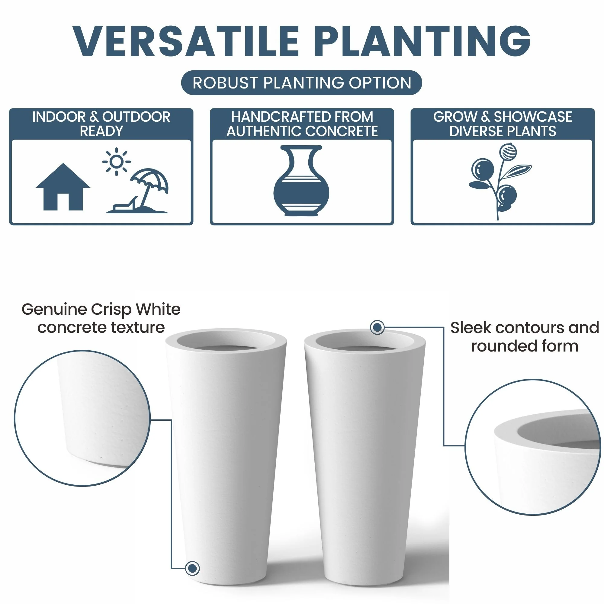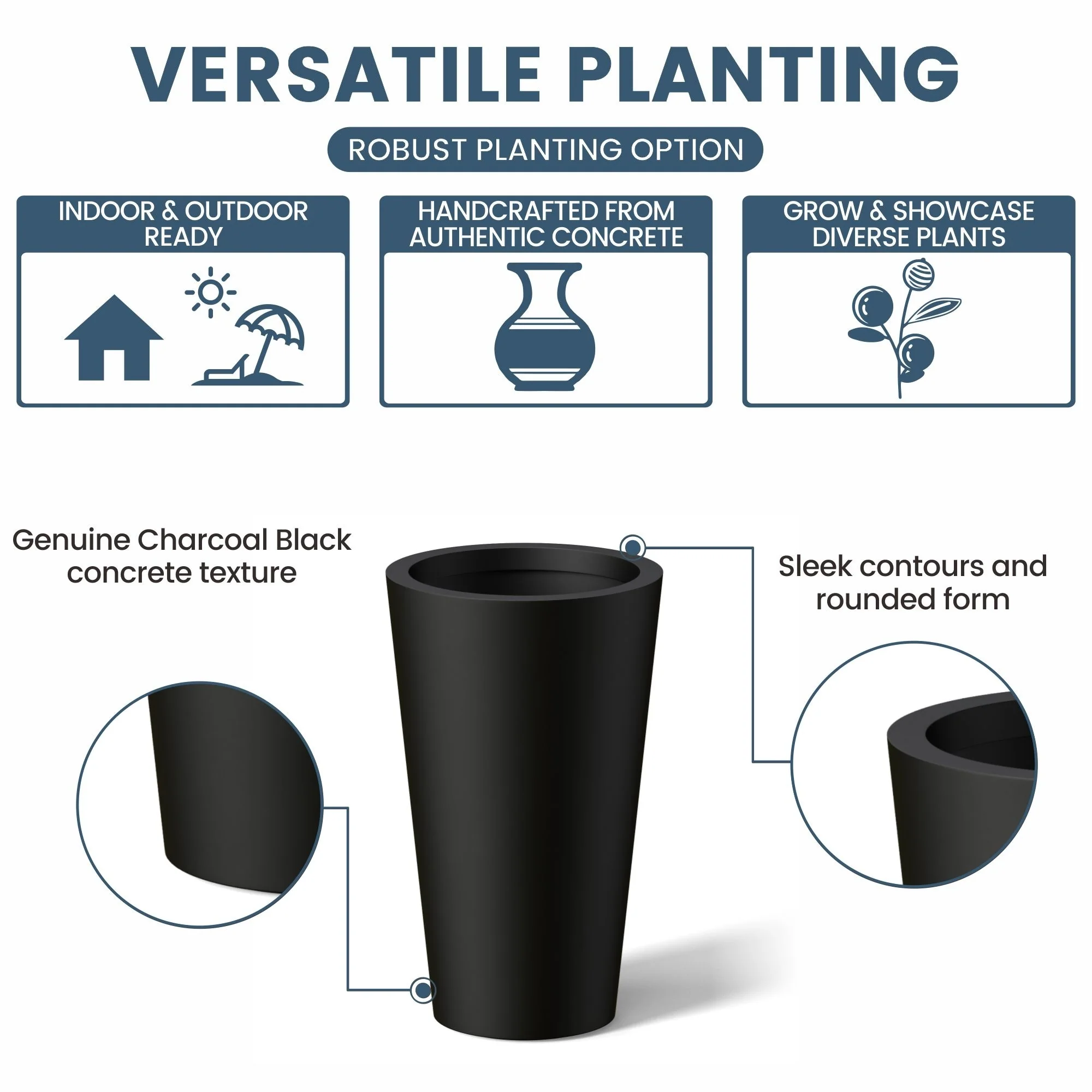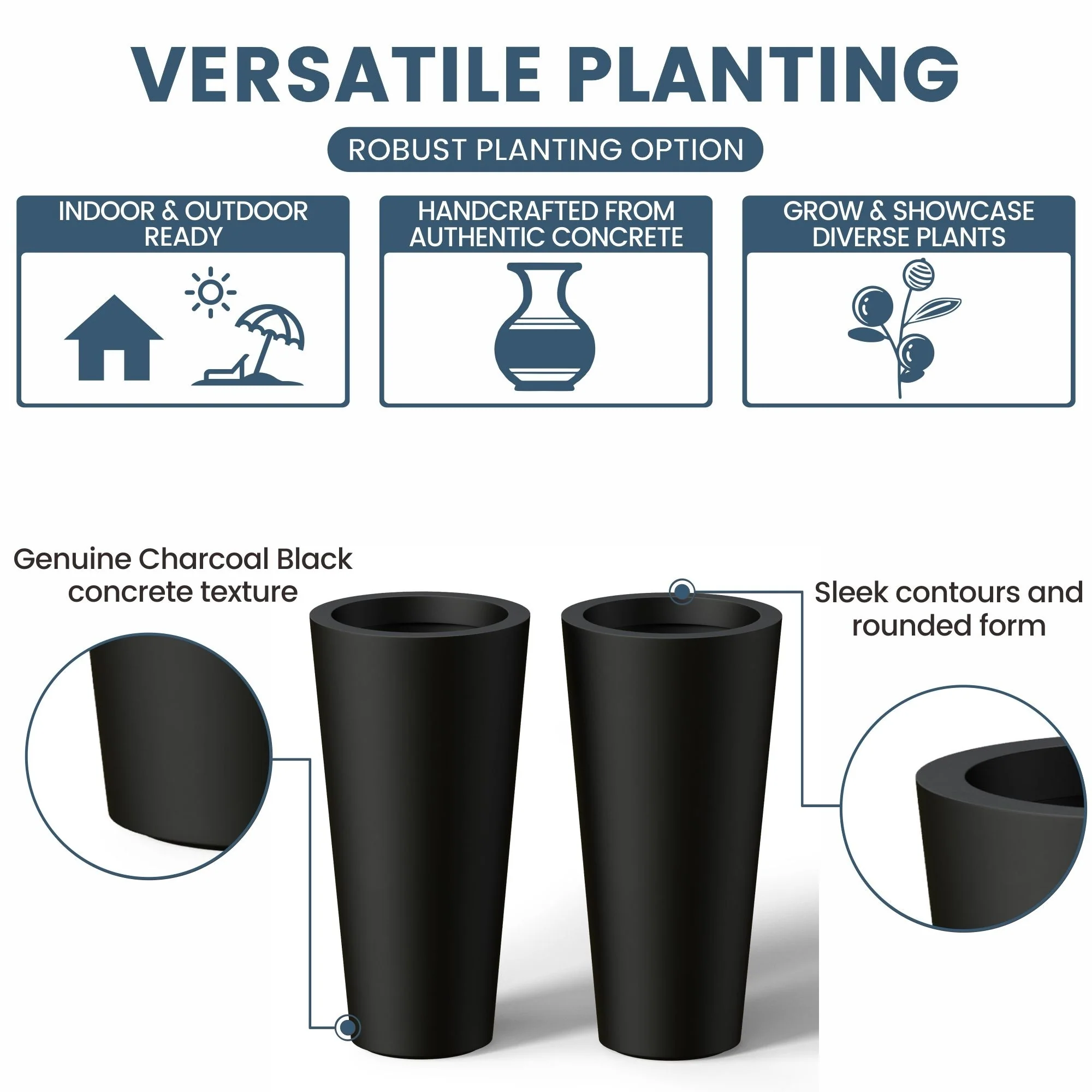 Tall Concrete Round Plant Pots / Large Indoor and Outdoor flower Planters with drainage holes