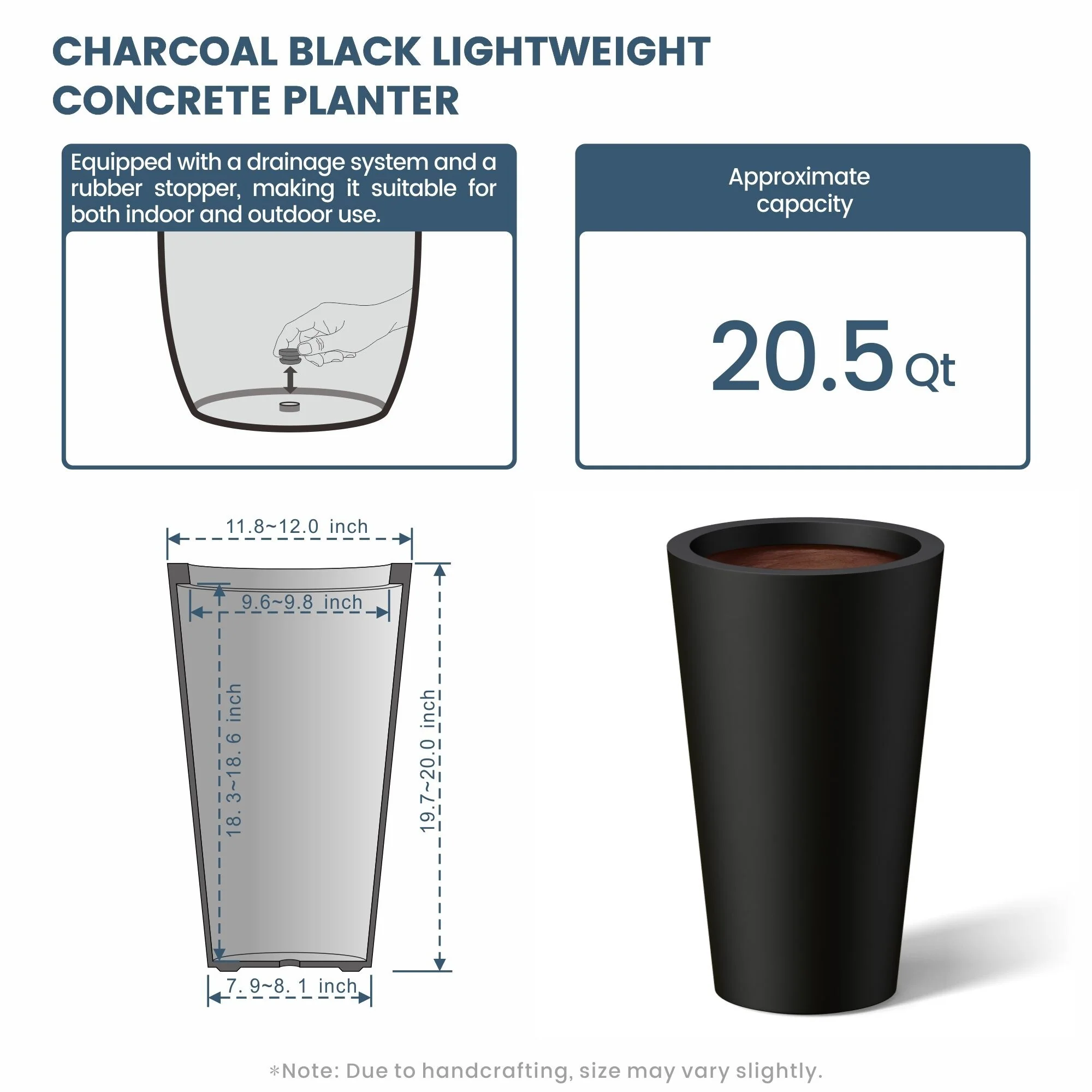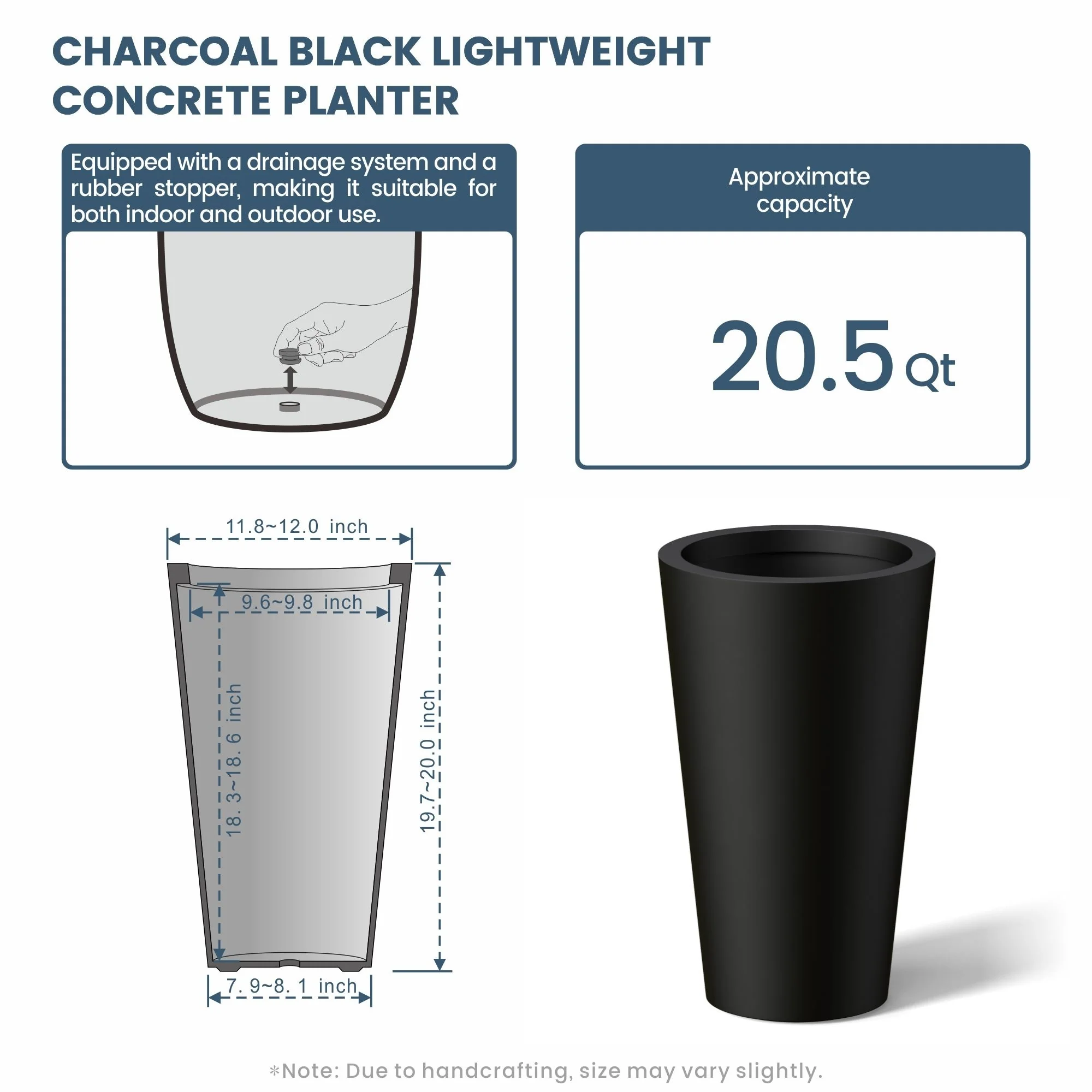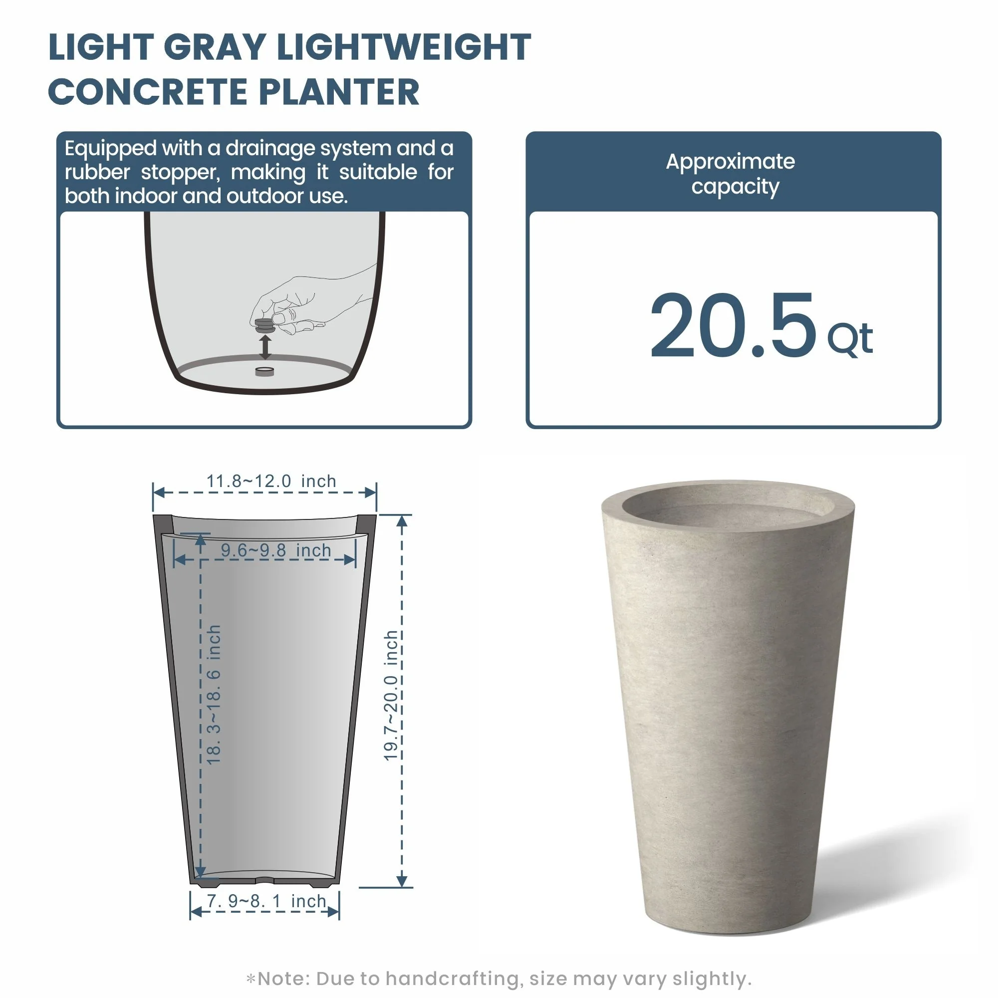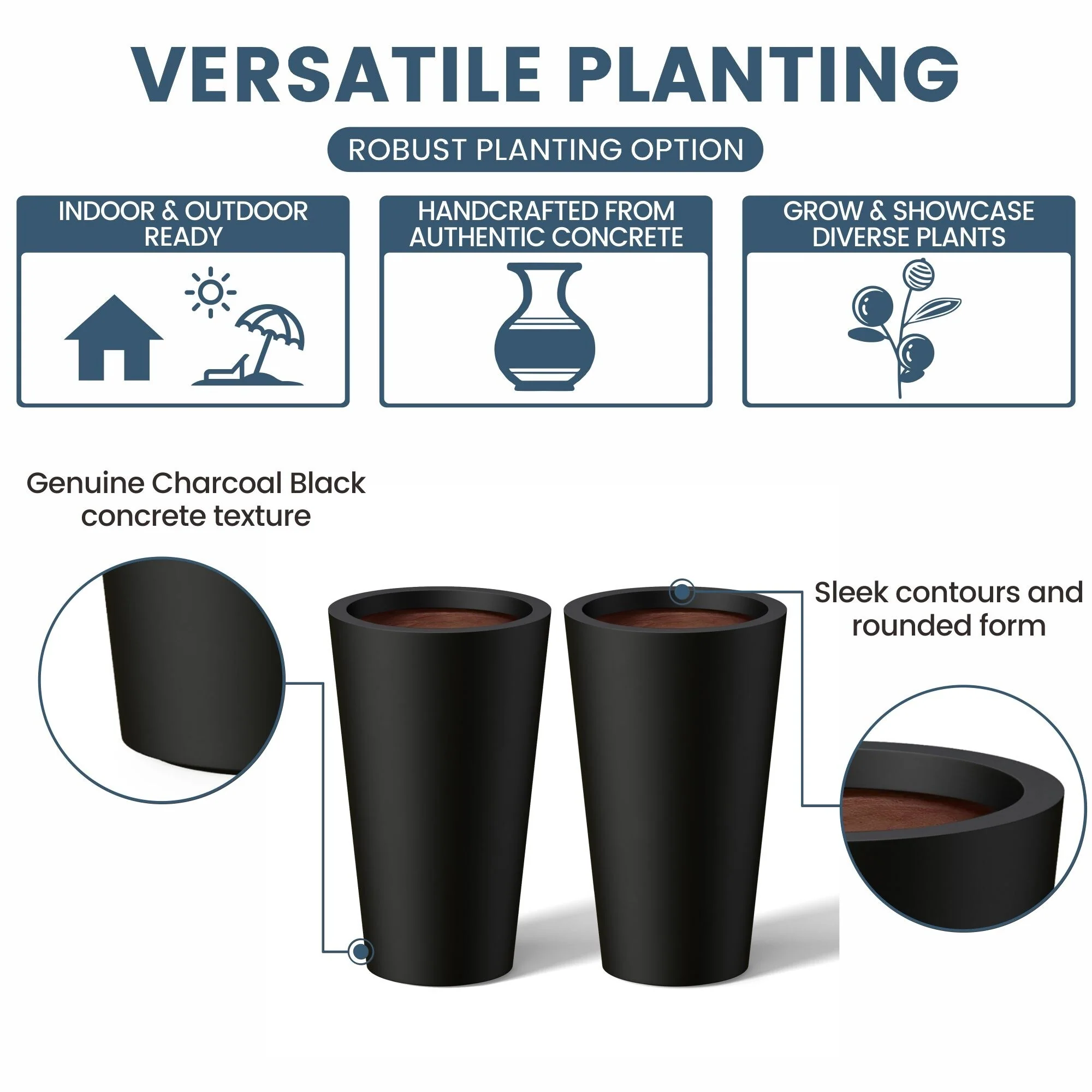 Tall Concrete Round Plant Pots / Large Indoor and Outdoor flower Planters with drainage holes