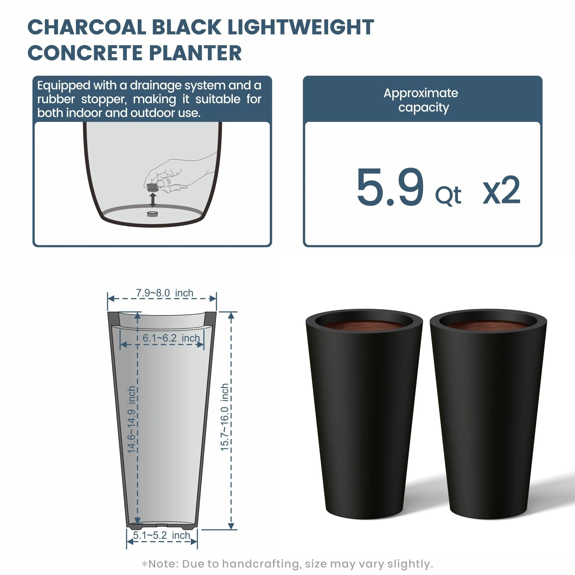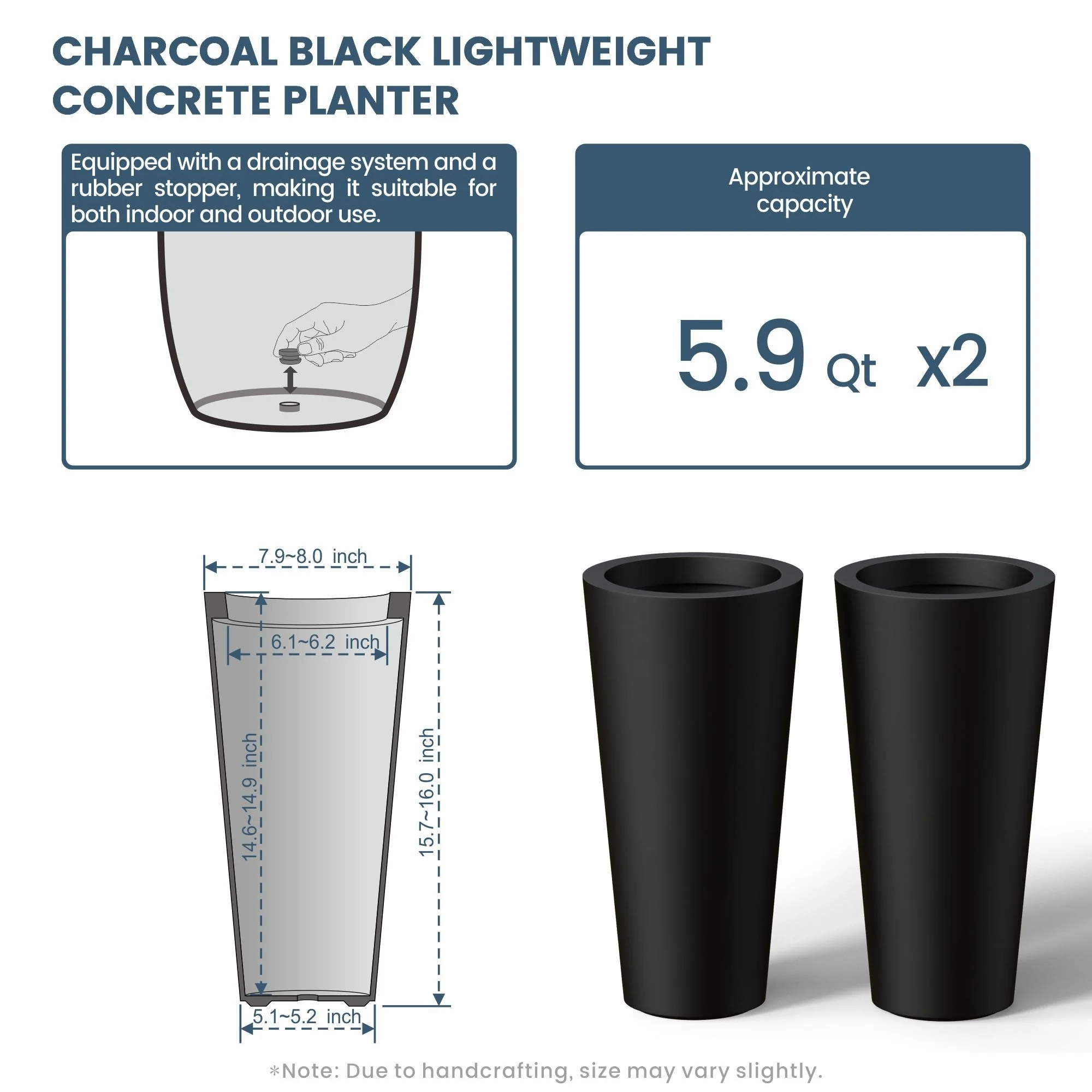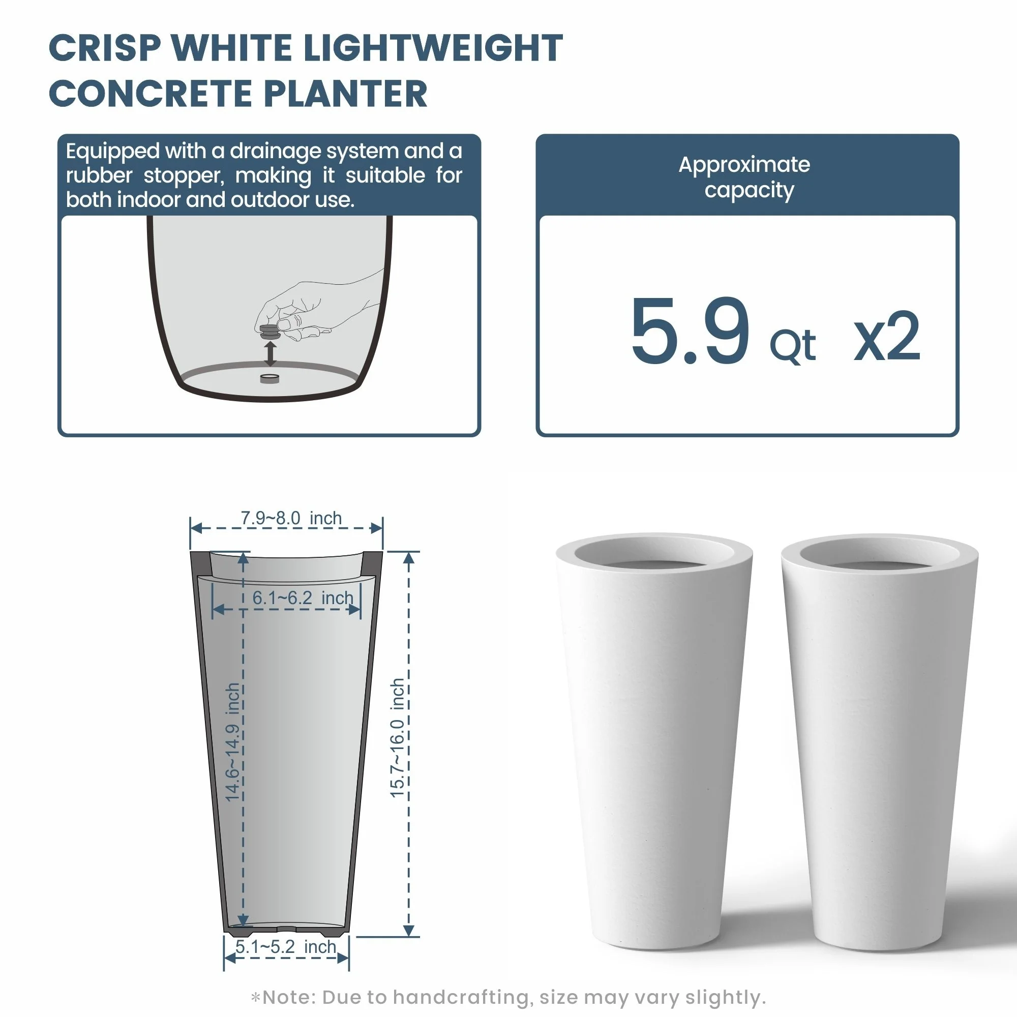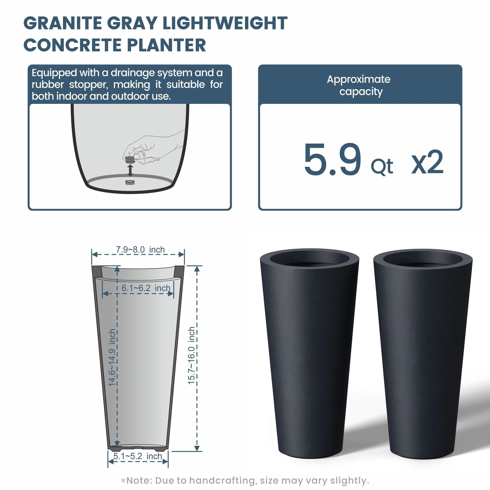 Tall Concrete Round Plant Pots / Large Indoor and Outdoor flower Planters with drainage holes