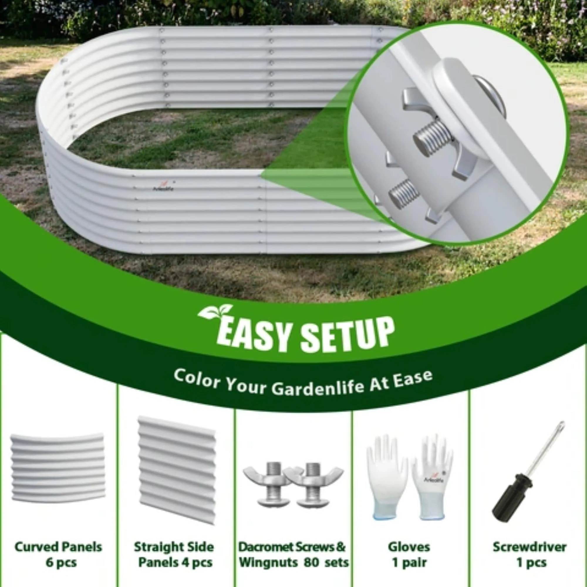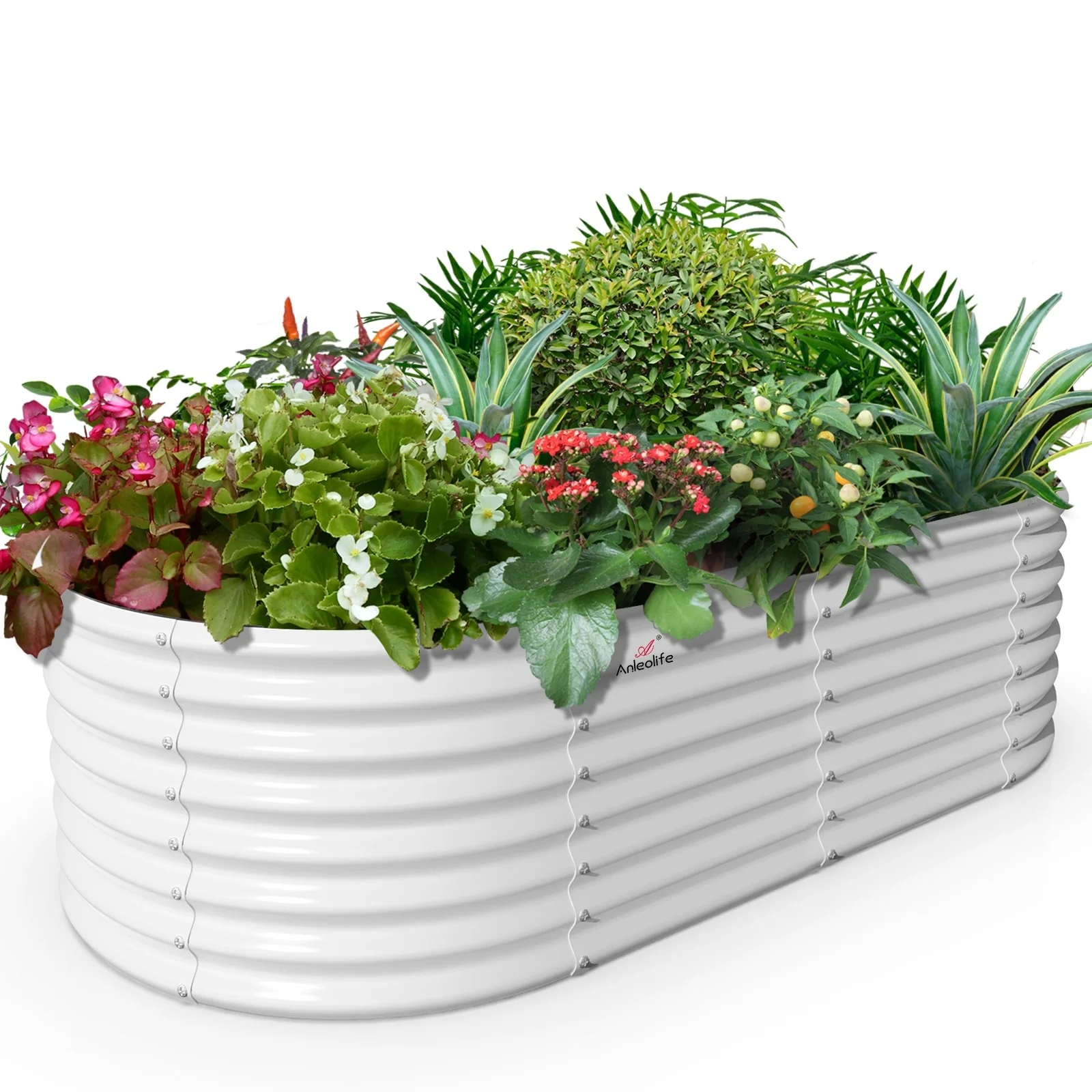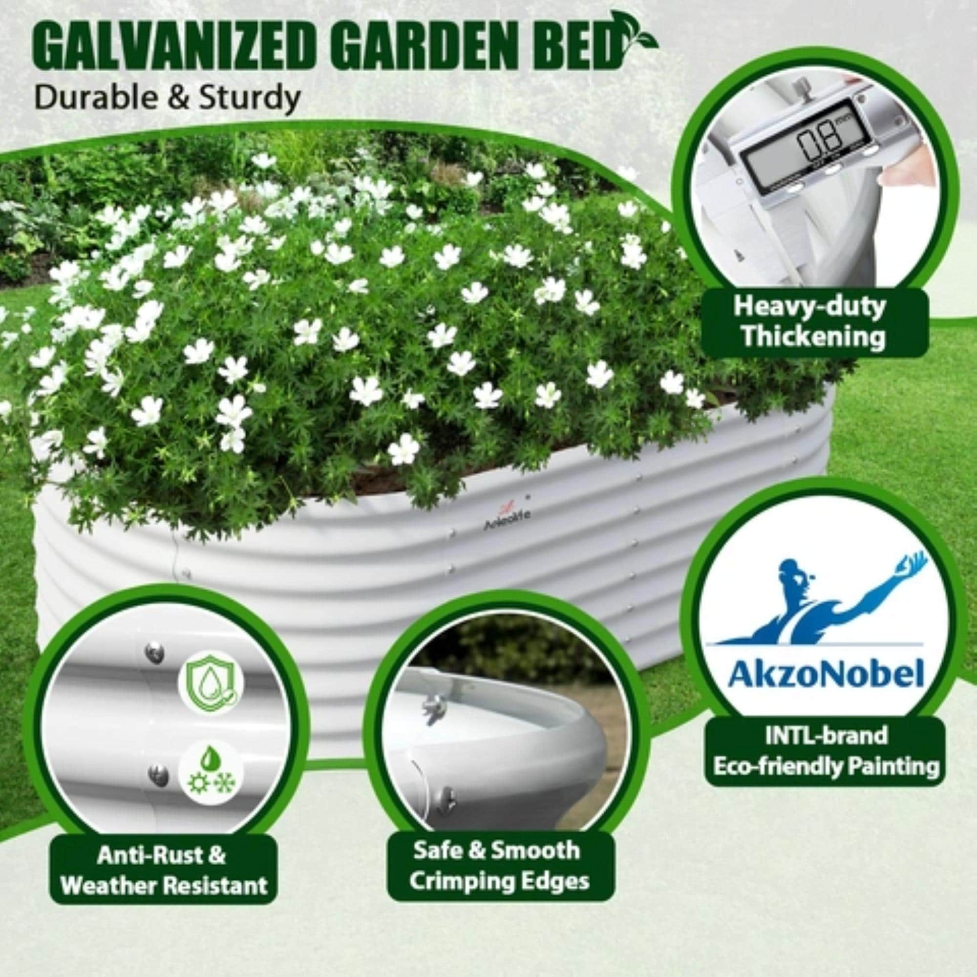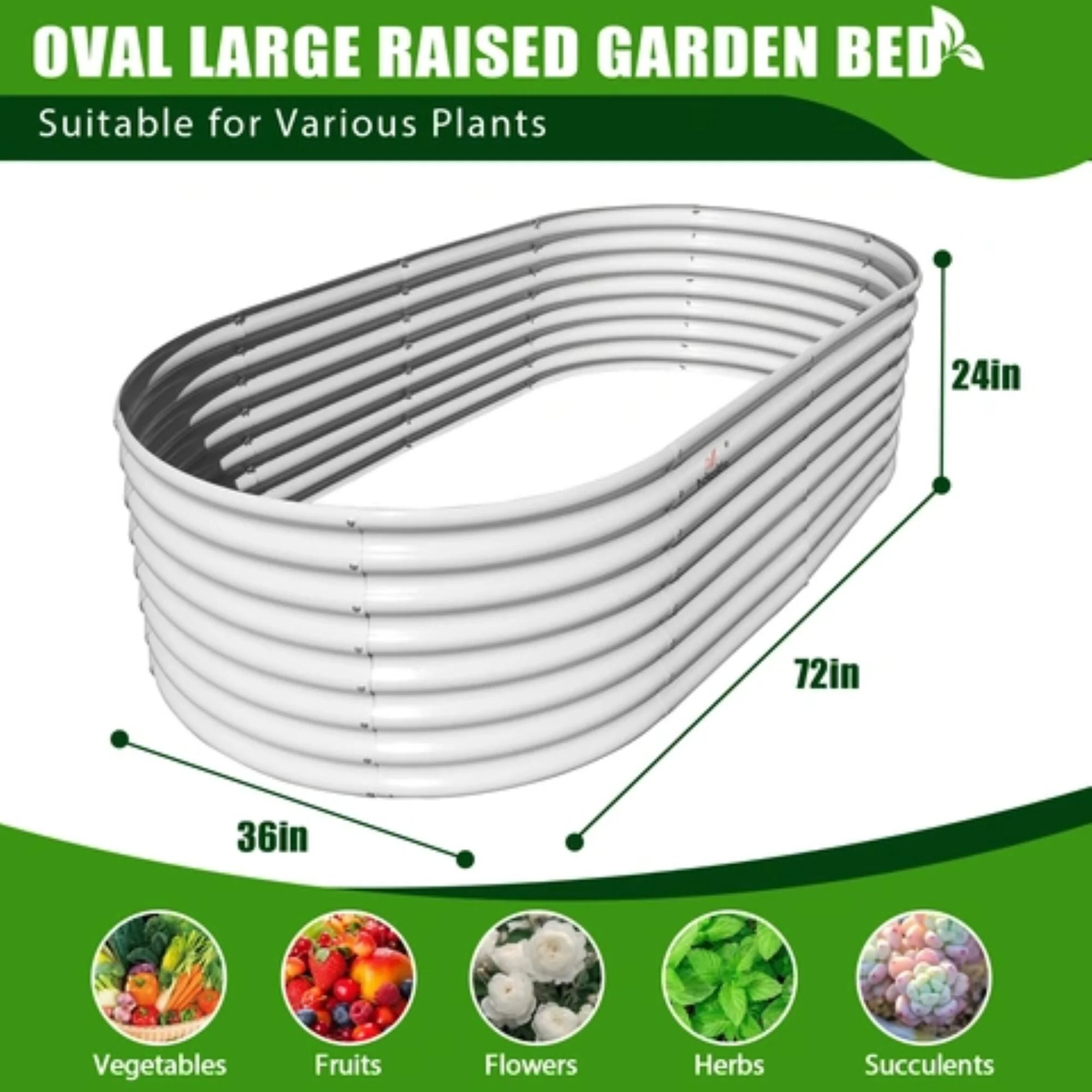 72x36x24 inches Galvanized Raised Garden Bed Outdoor,White Oval