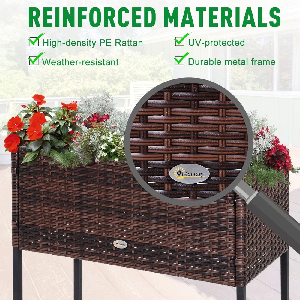 Outsunny Indoor/Outdoor Rattan Flower Planter Box with Tool Storage Rack Below and Sturdy Elevated Work Area, 28" H
