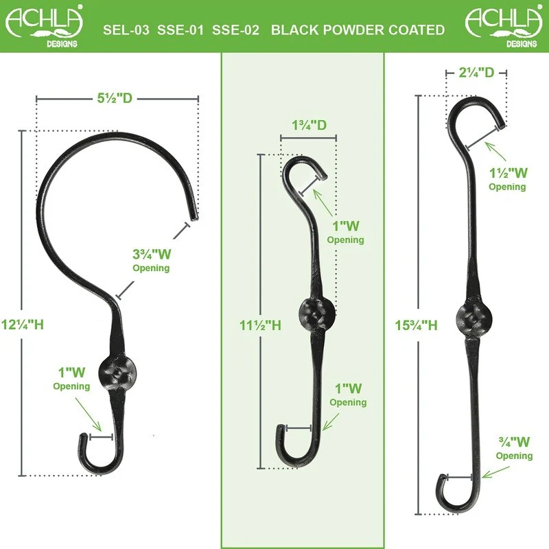 Achla Designs Set of 3 Decorative Mini S-Hooks, 3.5 Inch Tall, Black Powder Coat Finish