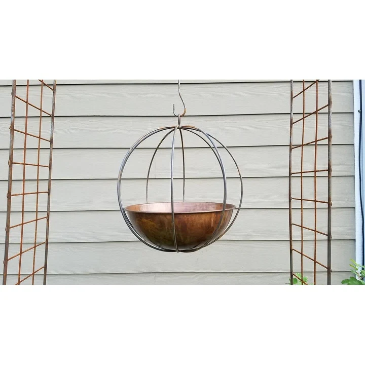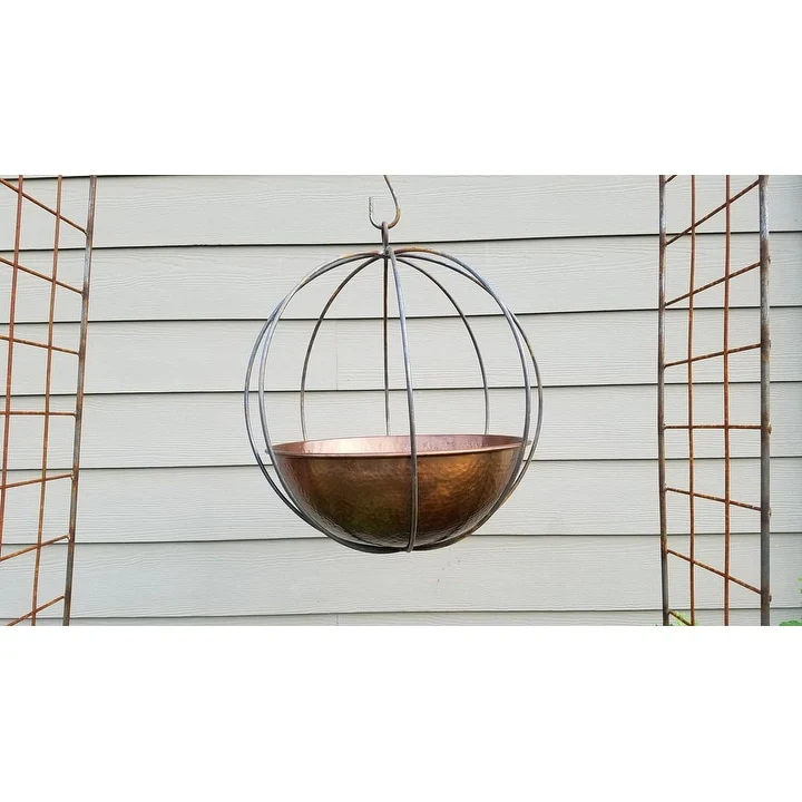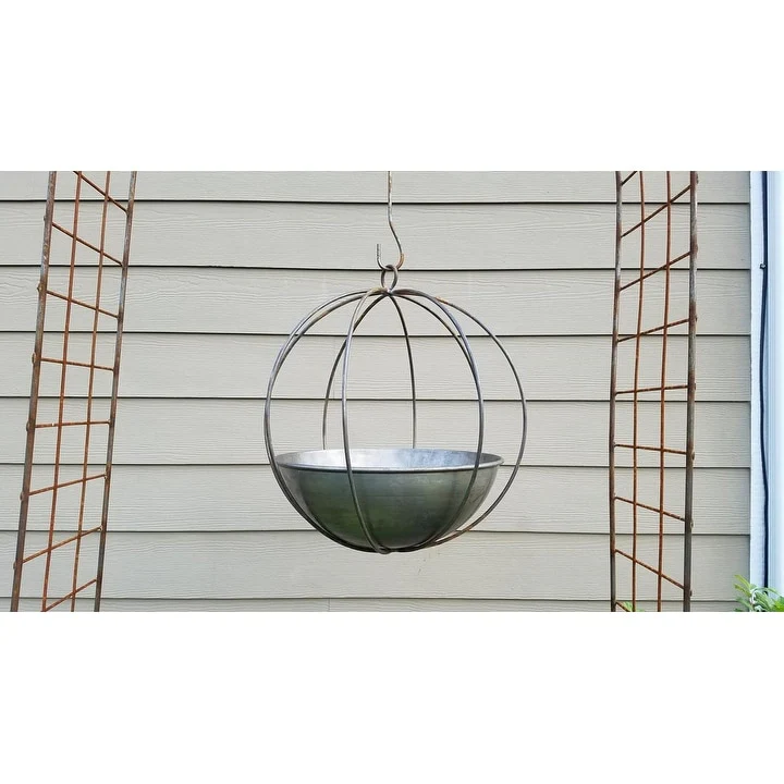 Large Hanging Globe-shaped Handmade Metal Planter with 10-inch Hook