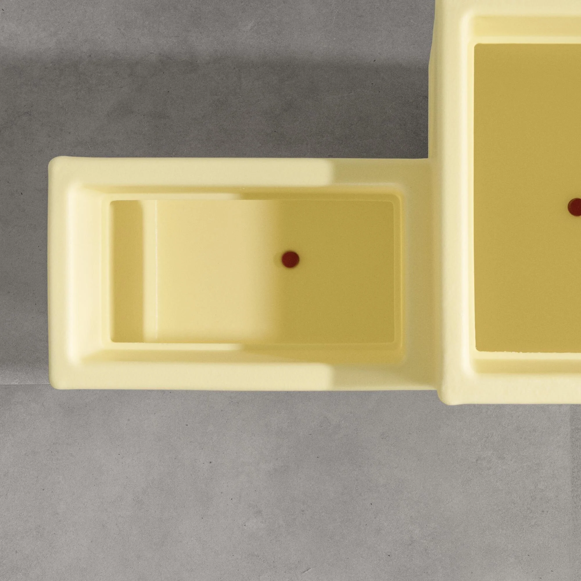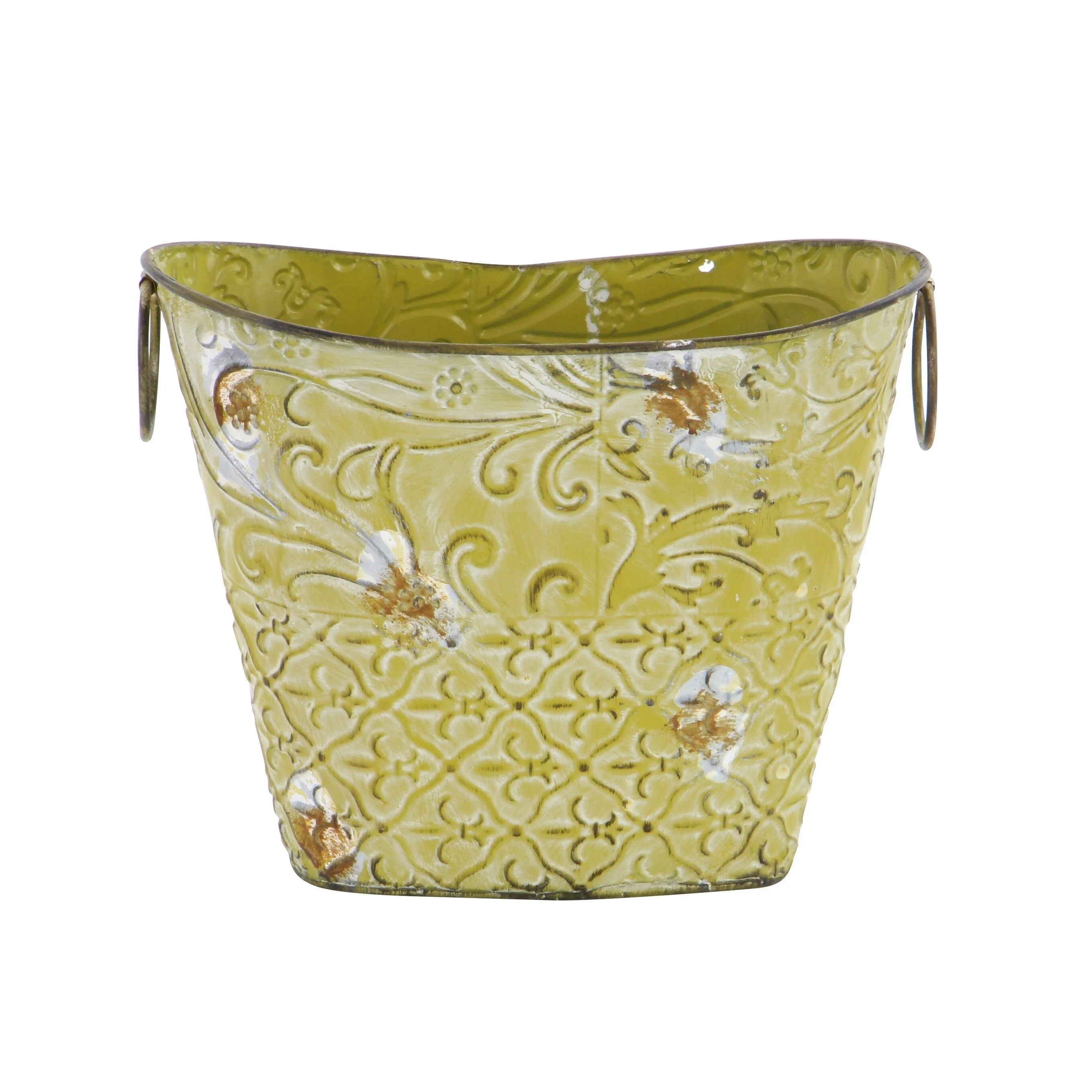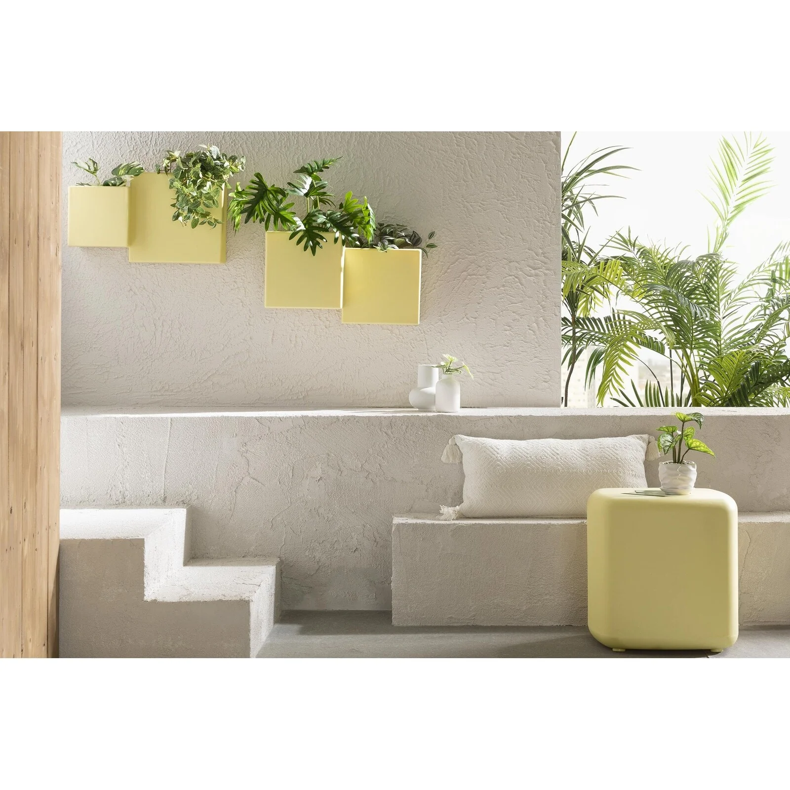 Set of 3 Antique Yellow Ceramic Planters 15 Inch Square Outdoor Garden Pots with Drainage Weather Resistant
