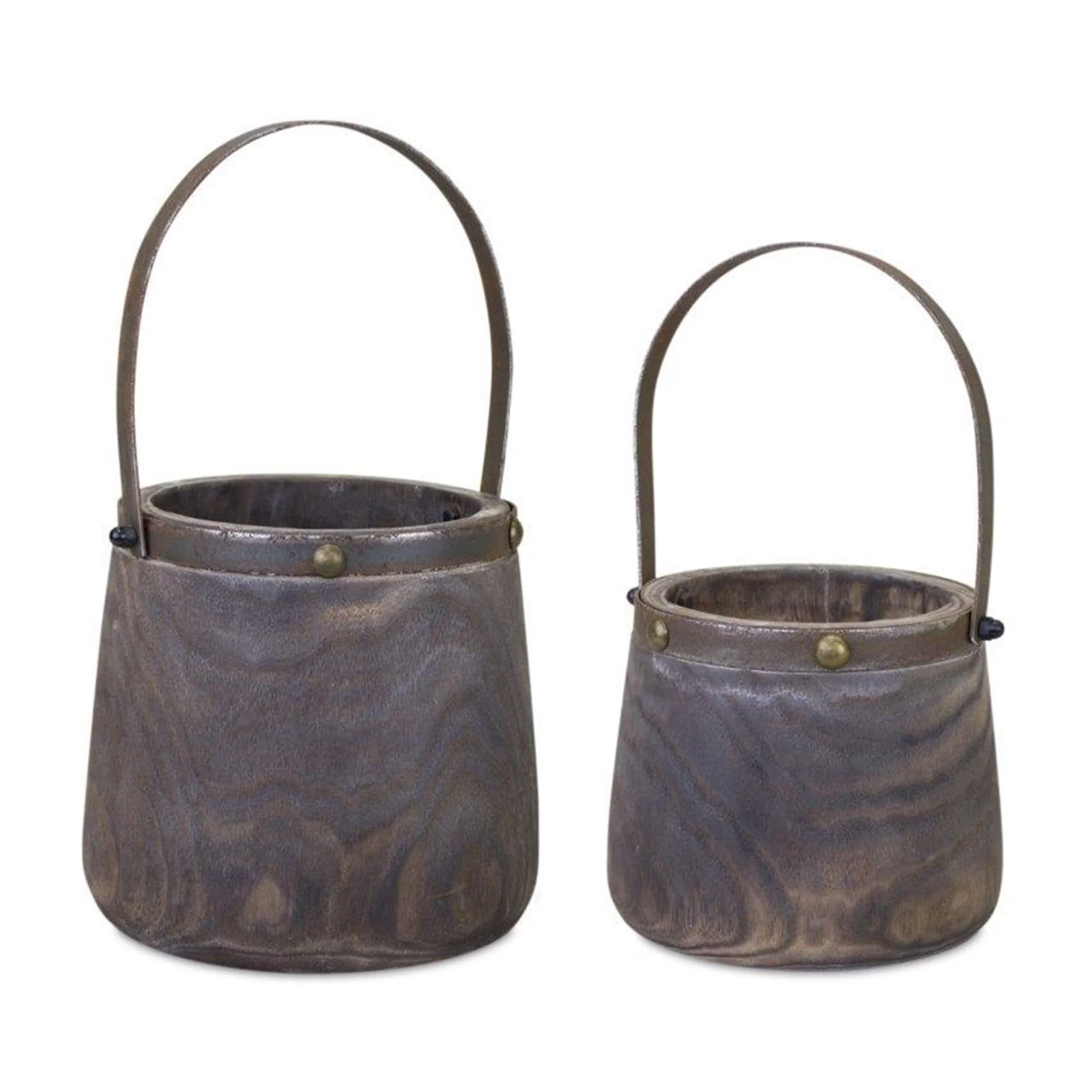 Wooden Pail Planters with Handle - 14" - Set of 2
