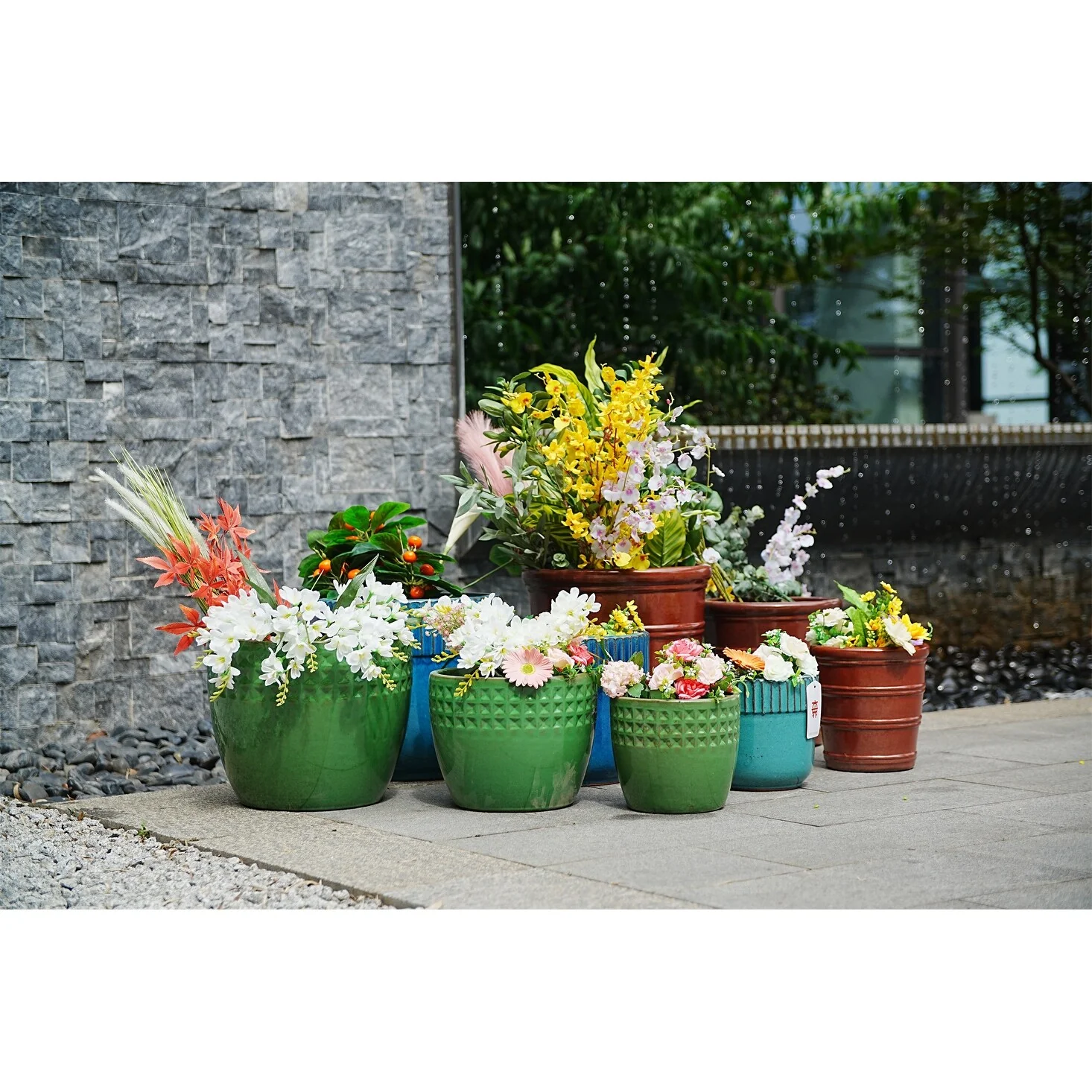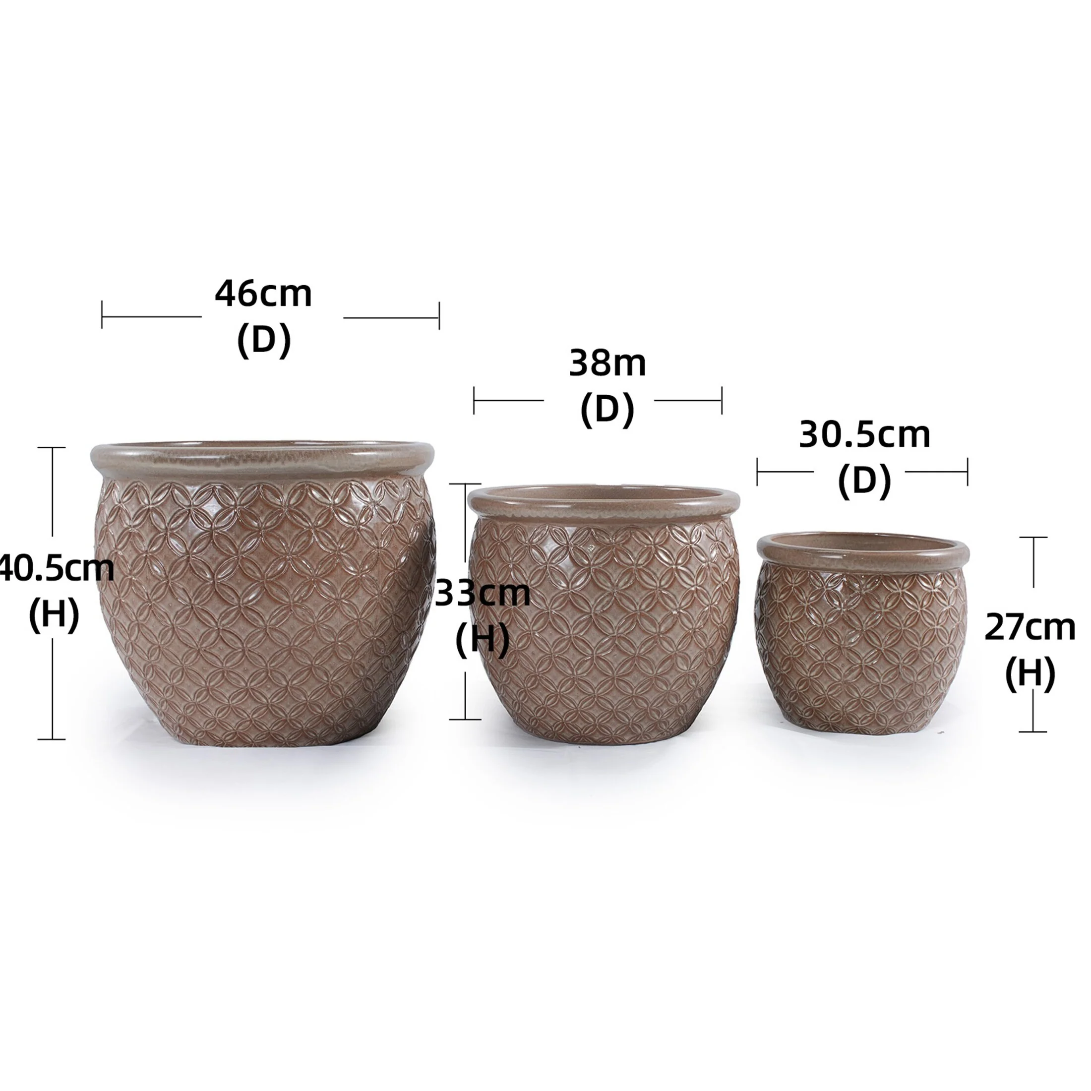3pc Durable Ceramic Pots with Weatherproof Coating