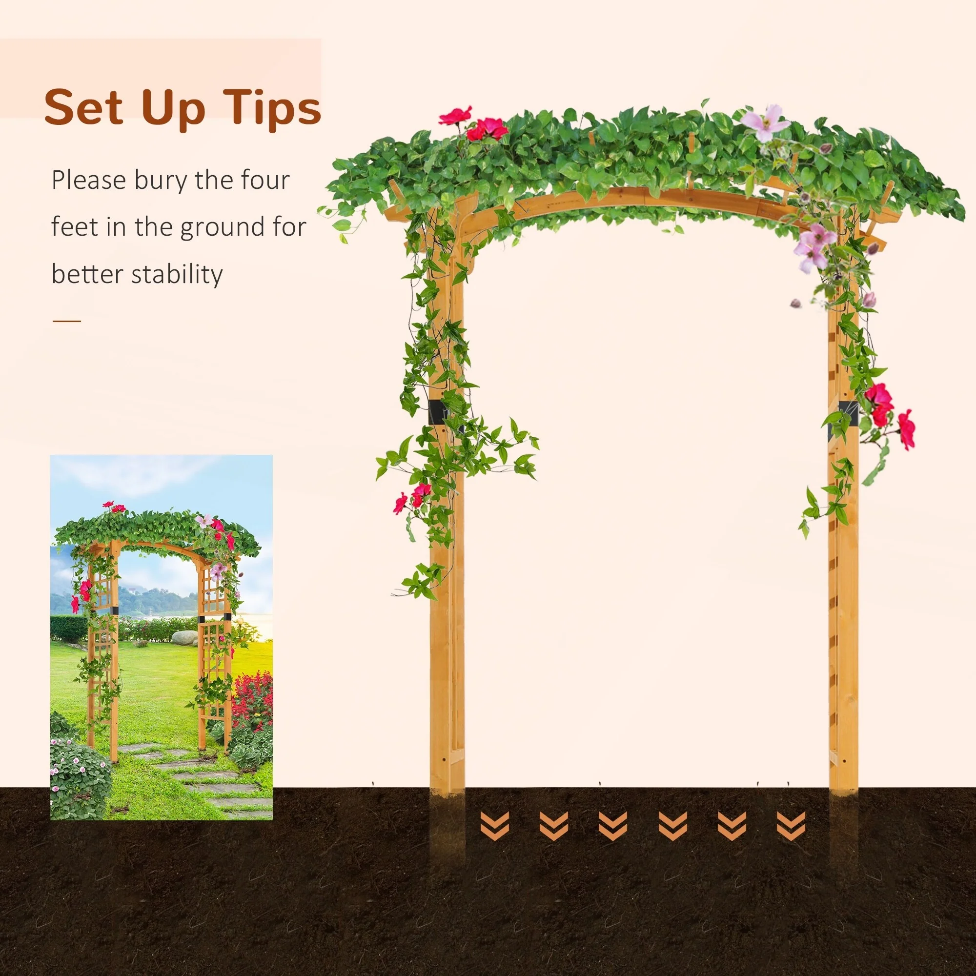 Outsunny 90in Wood Garden Arbor Arch with Trellis Wall