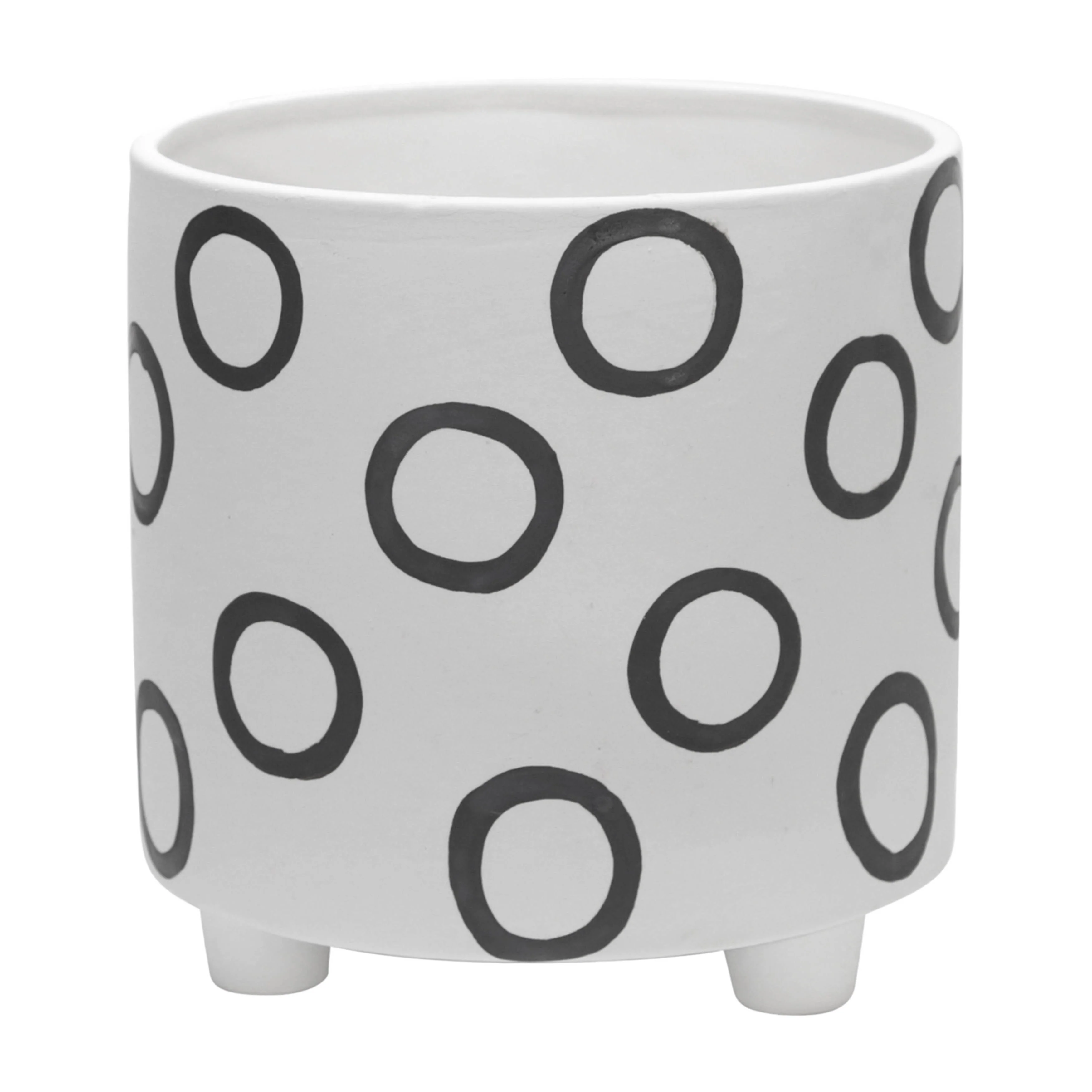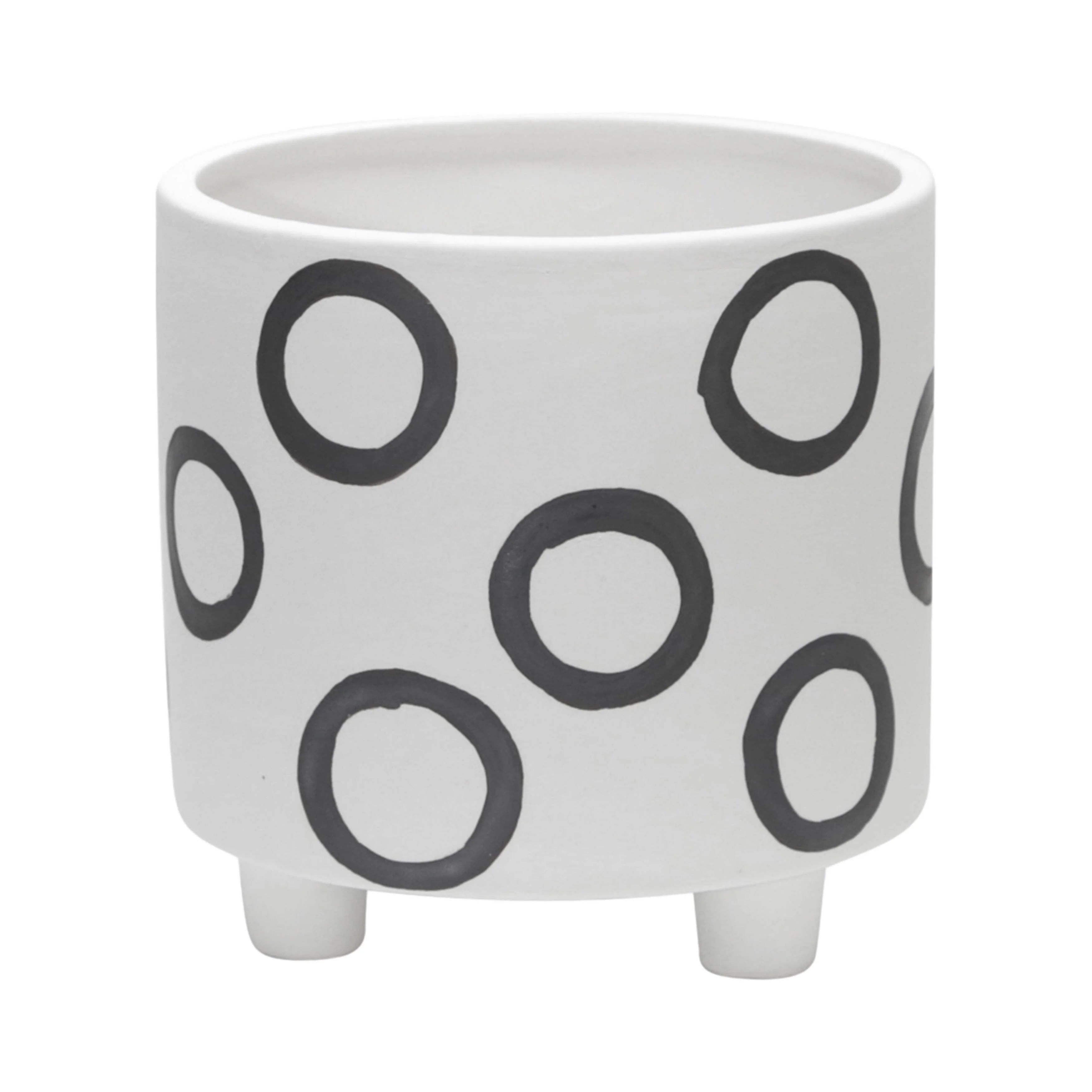 Stoneware Footed Planter with Painted Geometric Design - 8.3"L x 8.3"W x 6.5"H