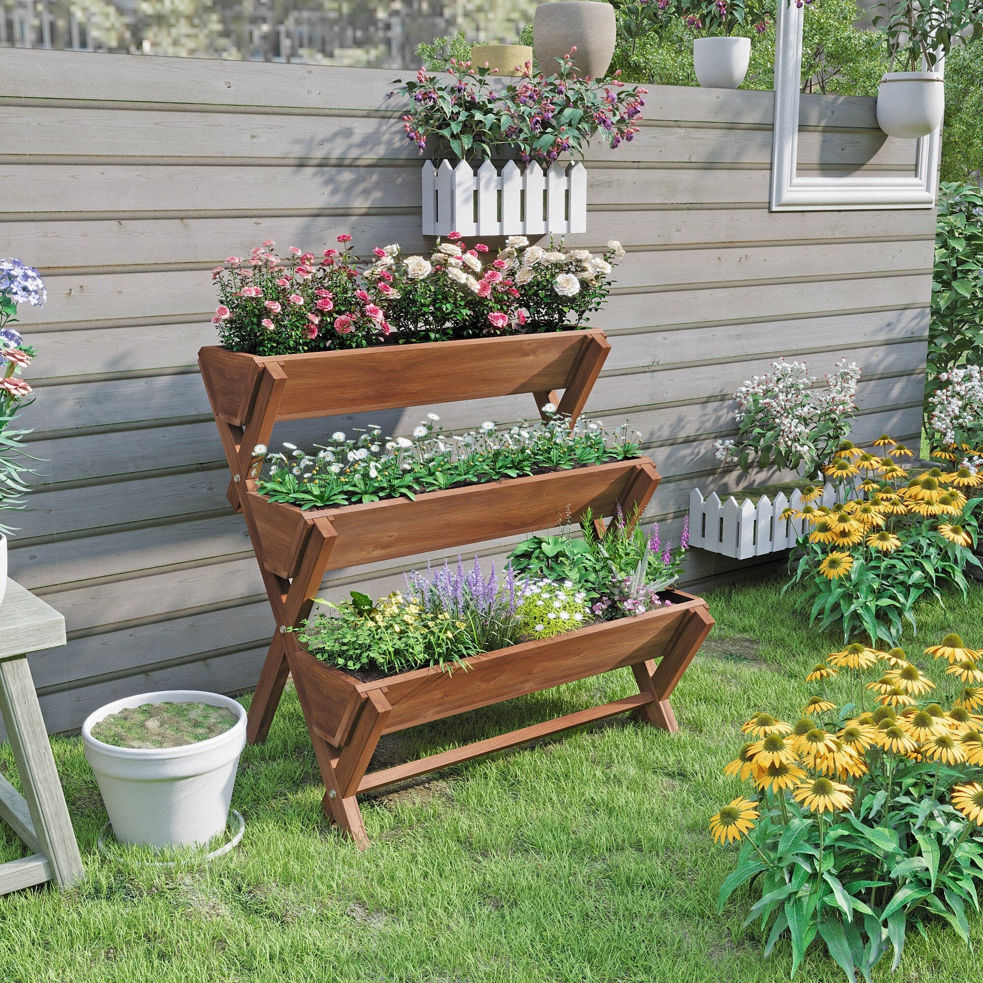 Raised Garden Bed , Fir Wood Freestanding Elevated Garden Planters - 35''x22''x36''