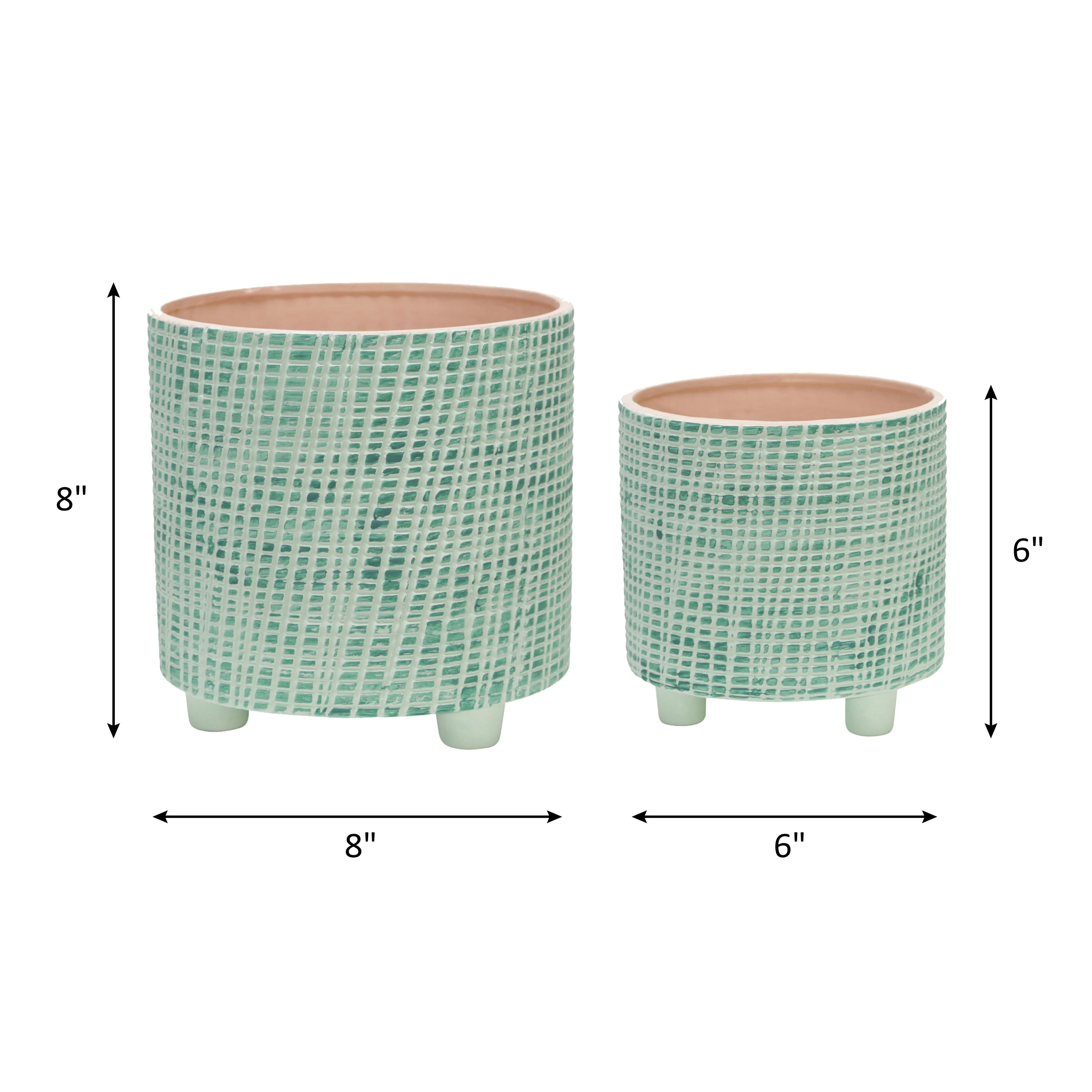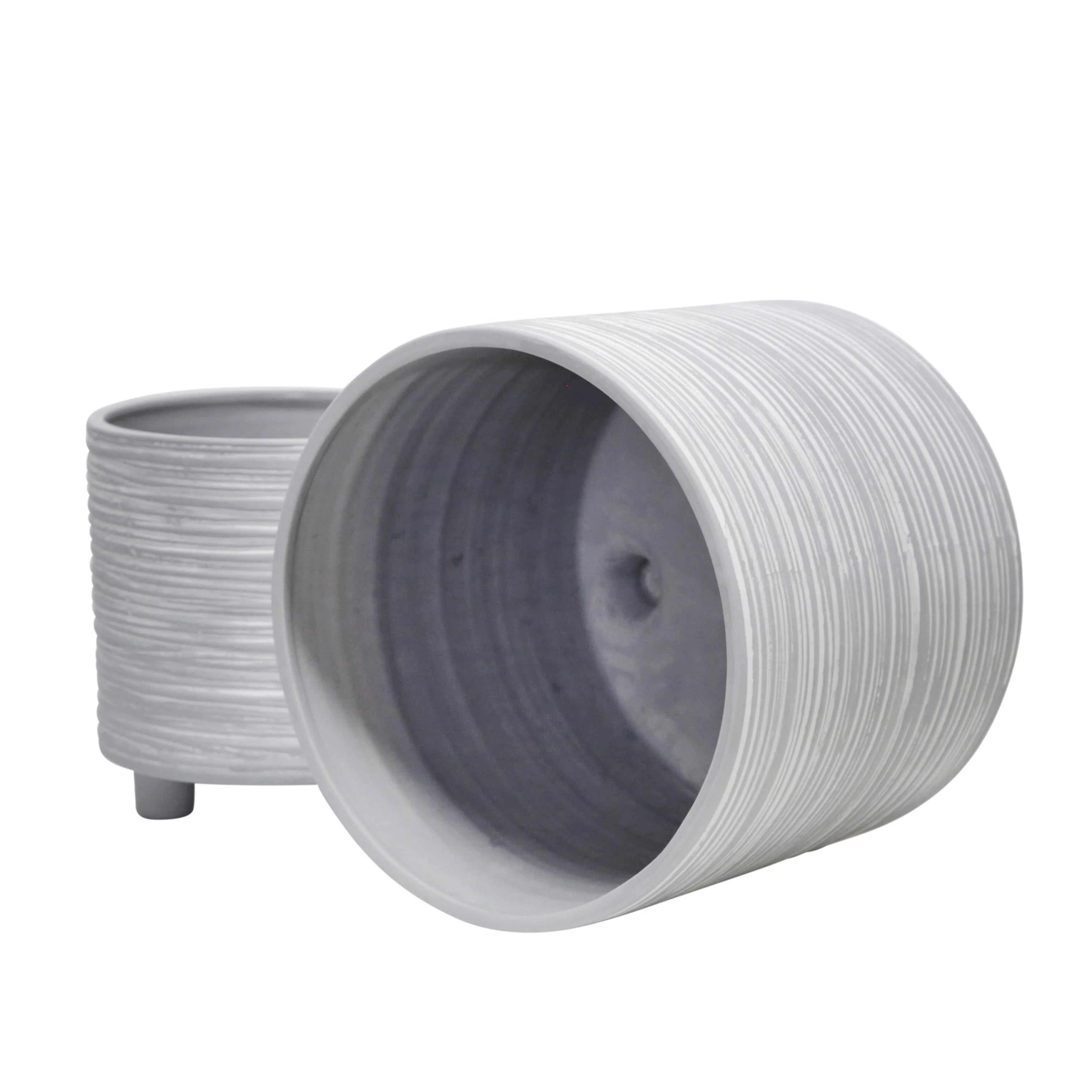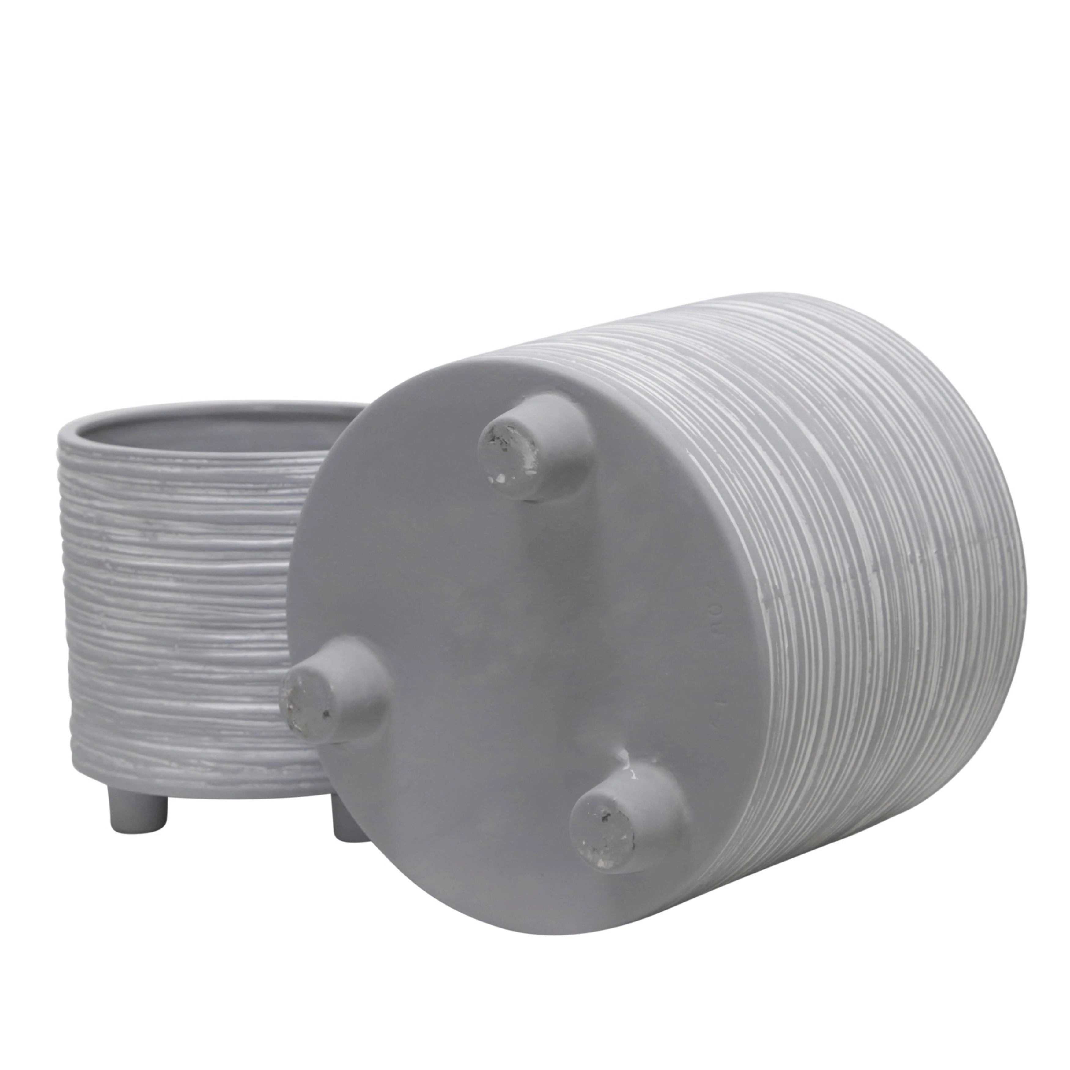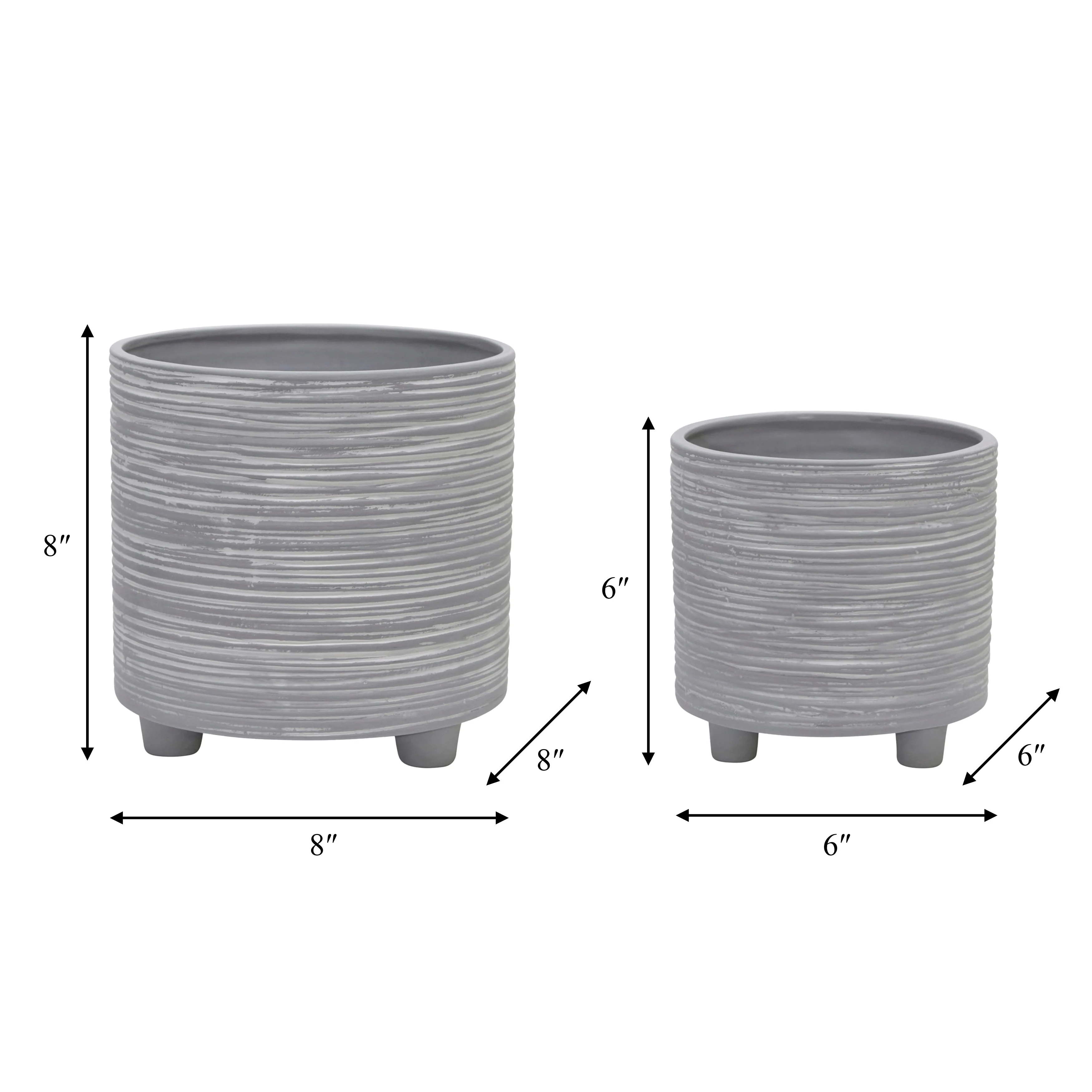 Ceramic Ribbed Planter Set of 2with Footed Base and Textured Finish - 5.75�� x 5.9�� x 5.75�� (D x W x H)