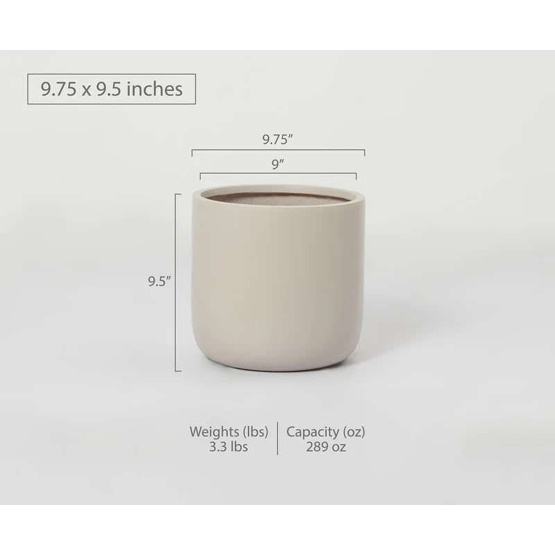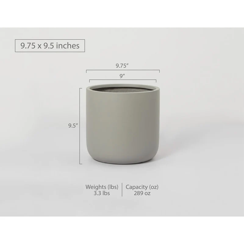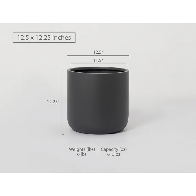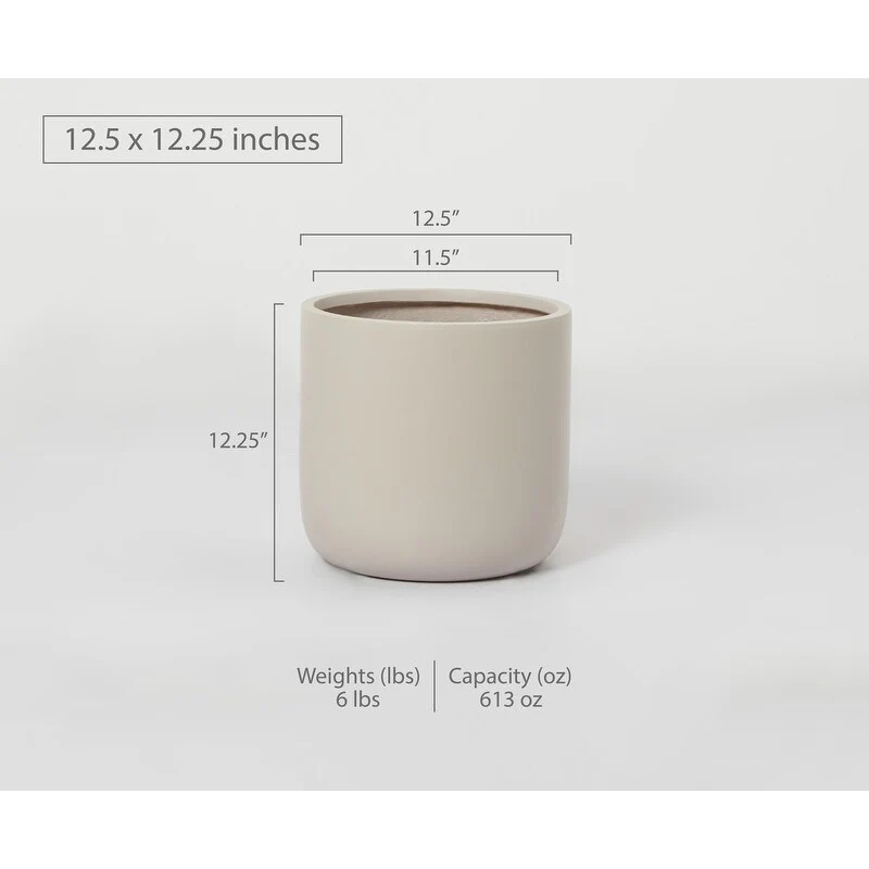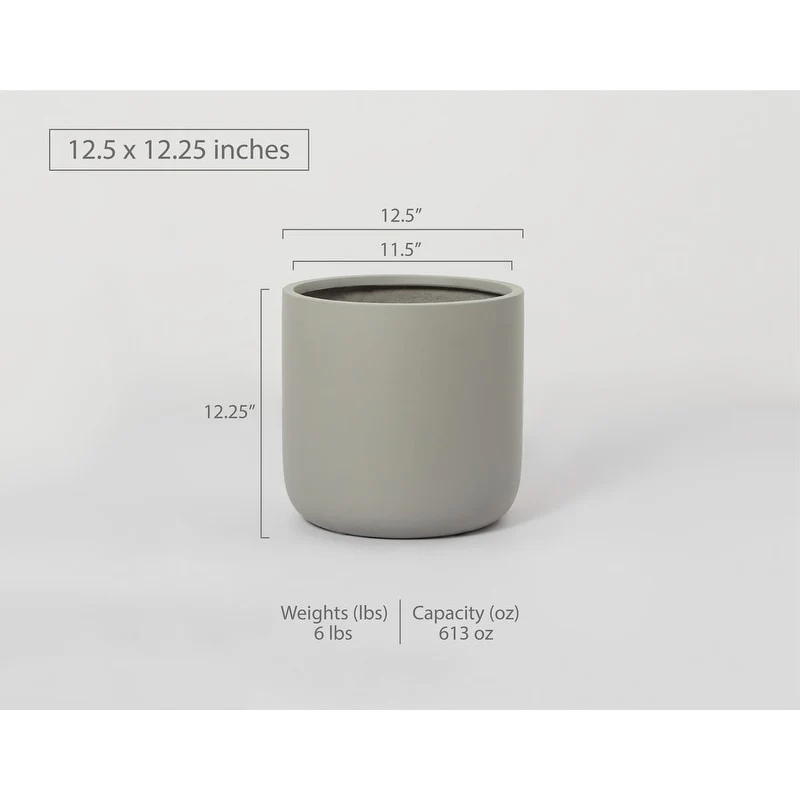 Indoor/Outdoor Large Minimalist Fiberstone Lightweight Cylinder Round Planter Pot - 12, 9 in