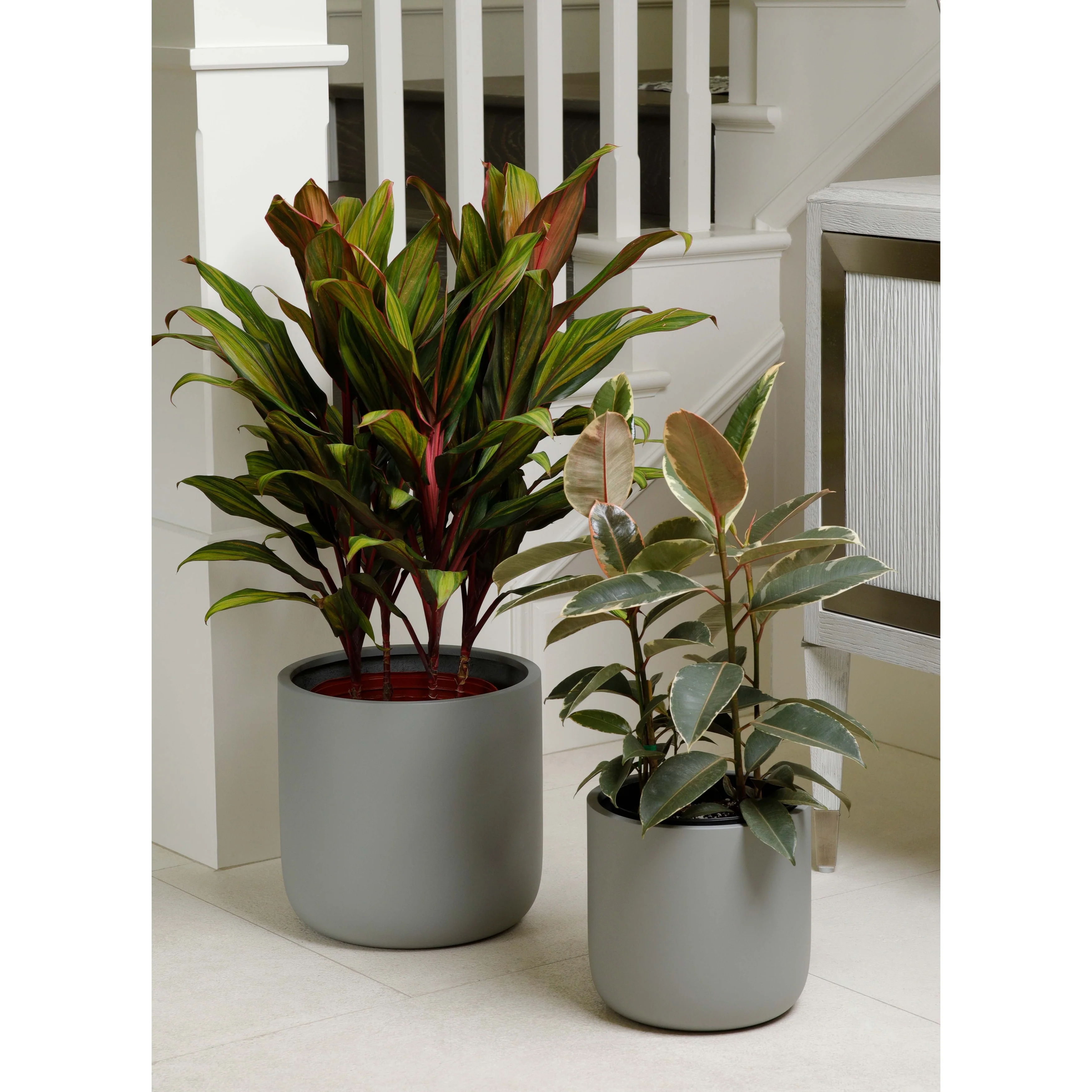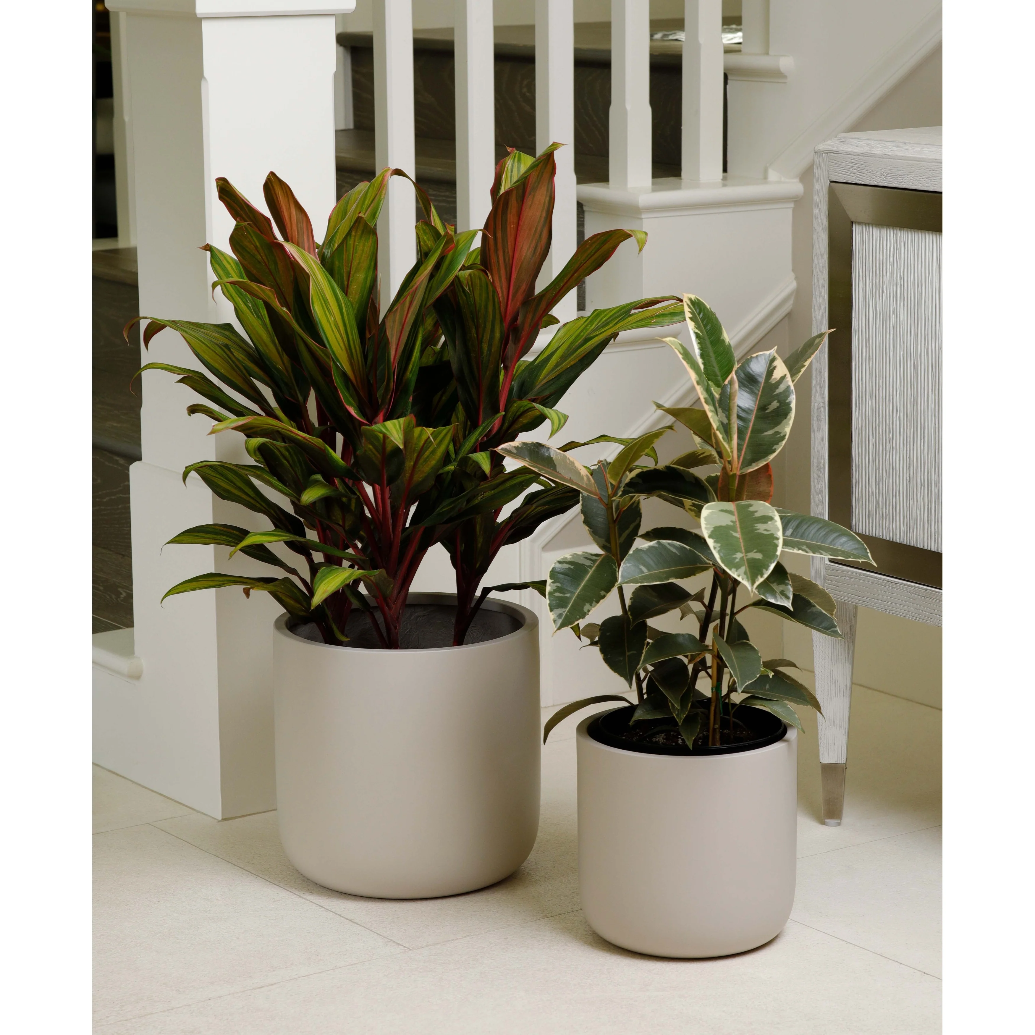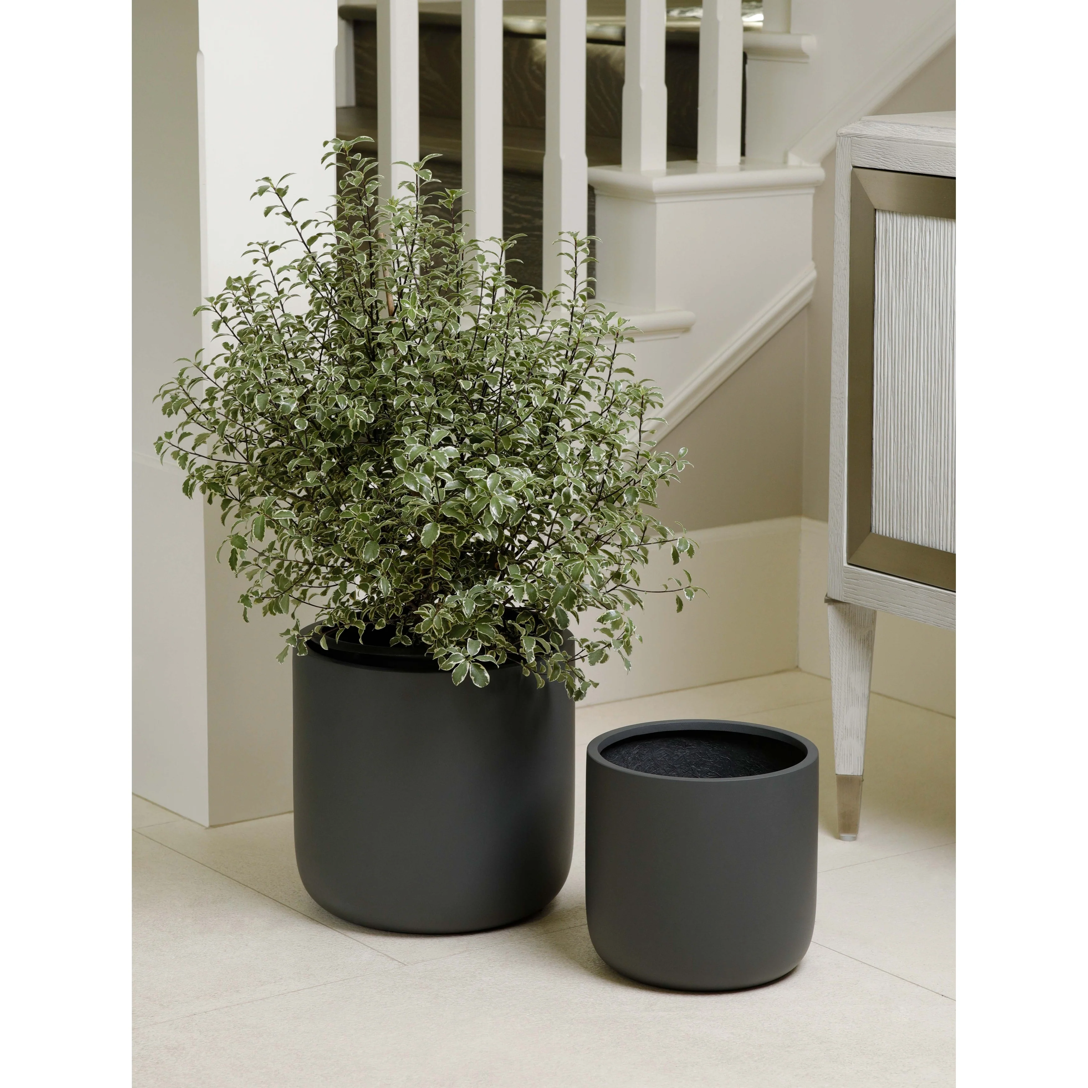 Indoor/Outdoor Large Minimalist Fiberstone Lightweight Cylinder Round Planter Pot - 12, 9 in