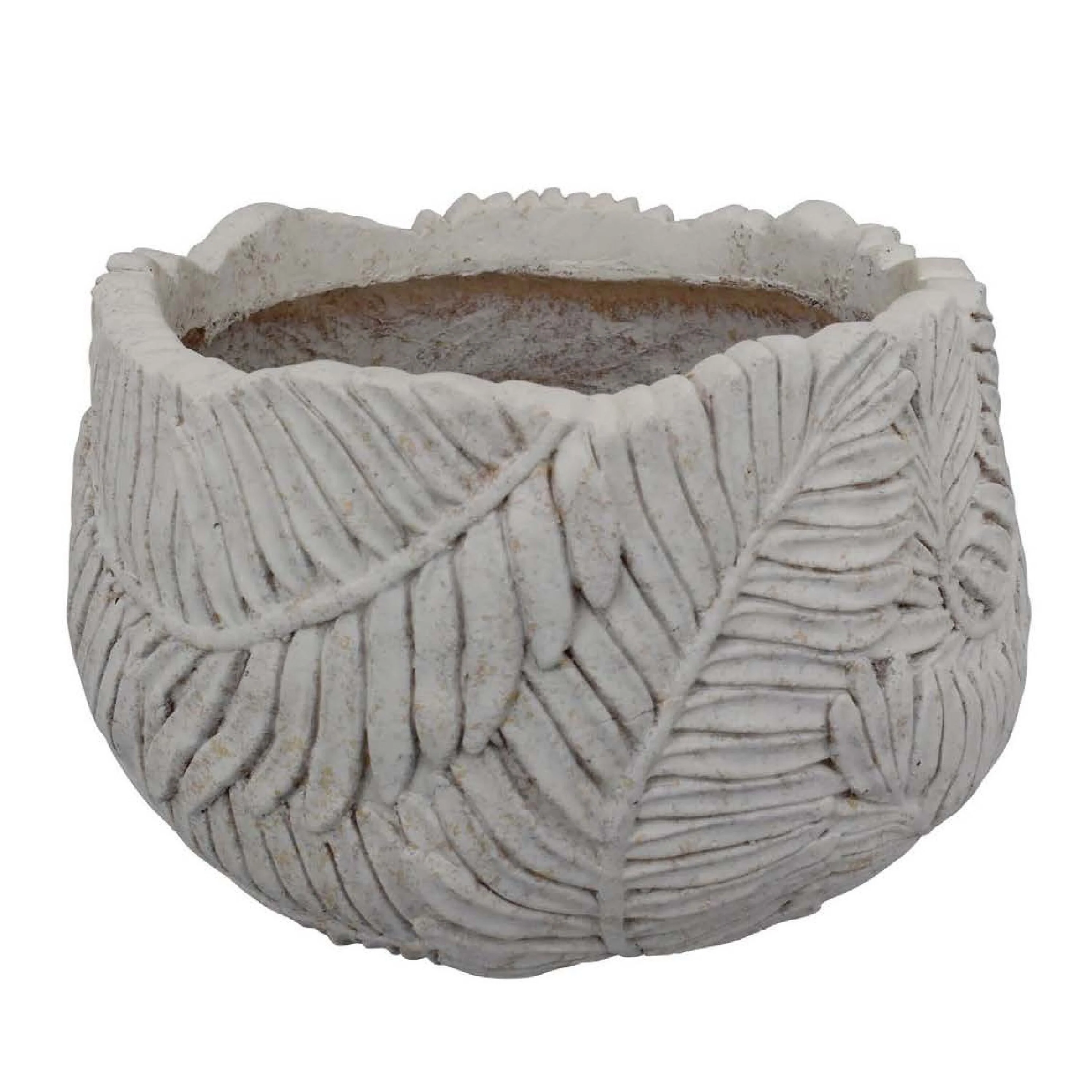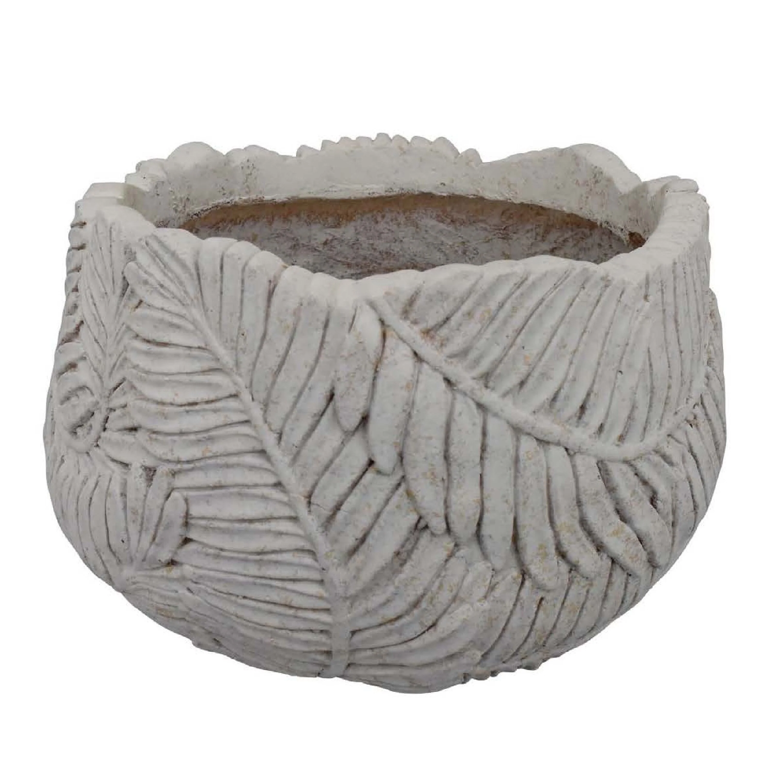Sicily Accent Planter with Leaf Embossed Surface, Flared Gray Resin