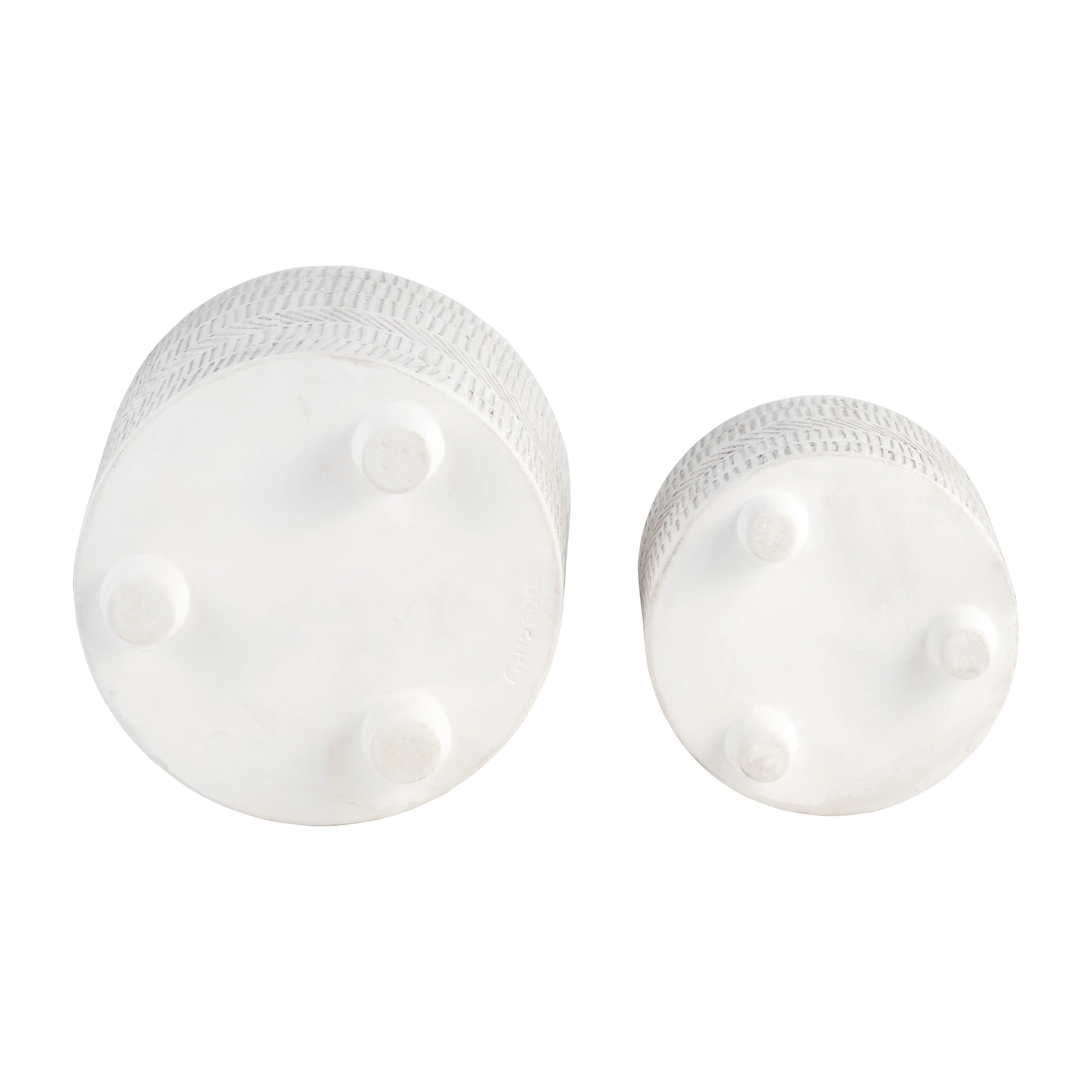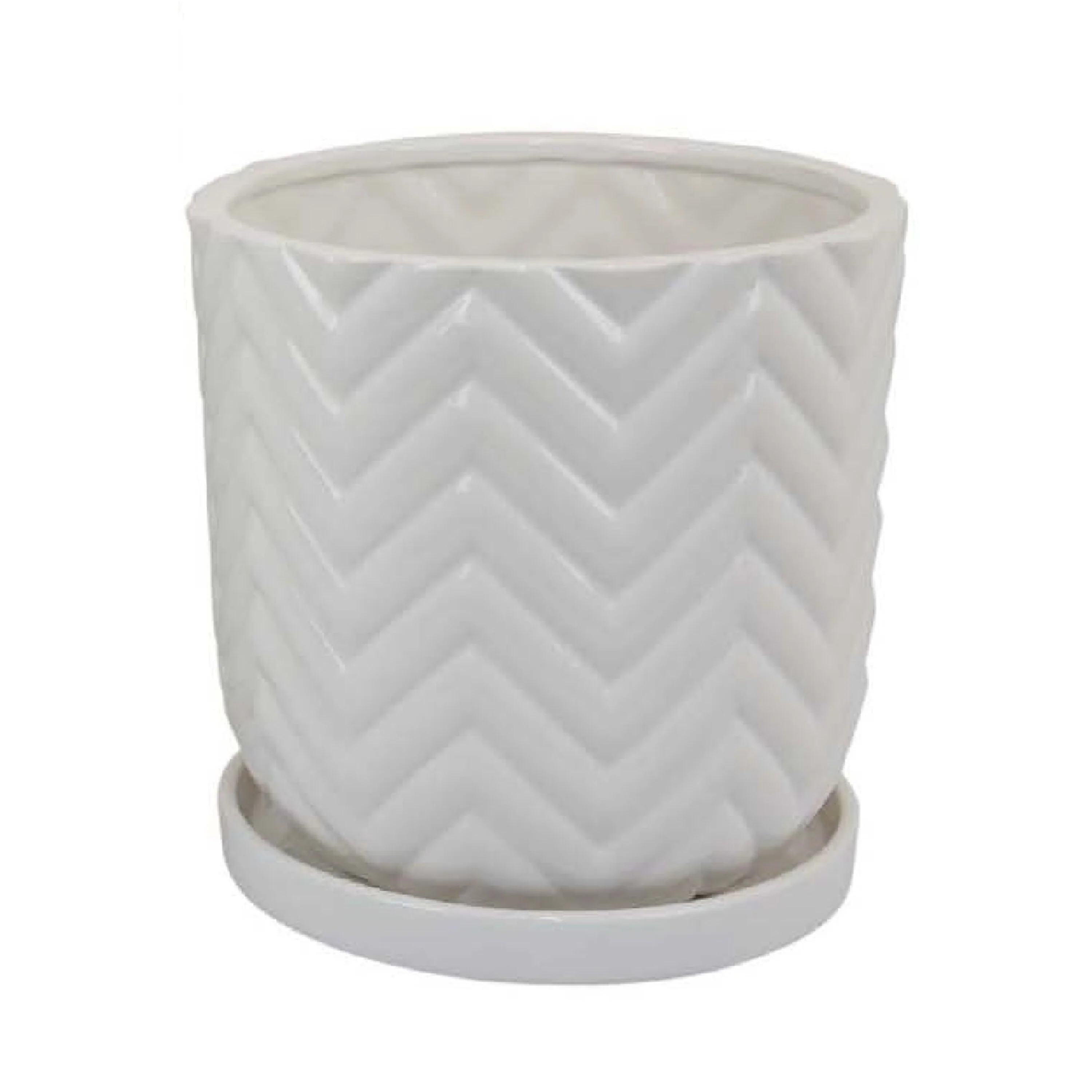 Camie Planter Set of 2, Saucers, Chevron Wave Patterns, White Ceramic