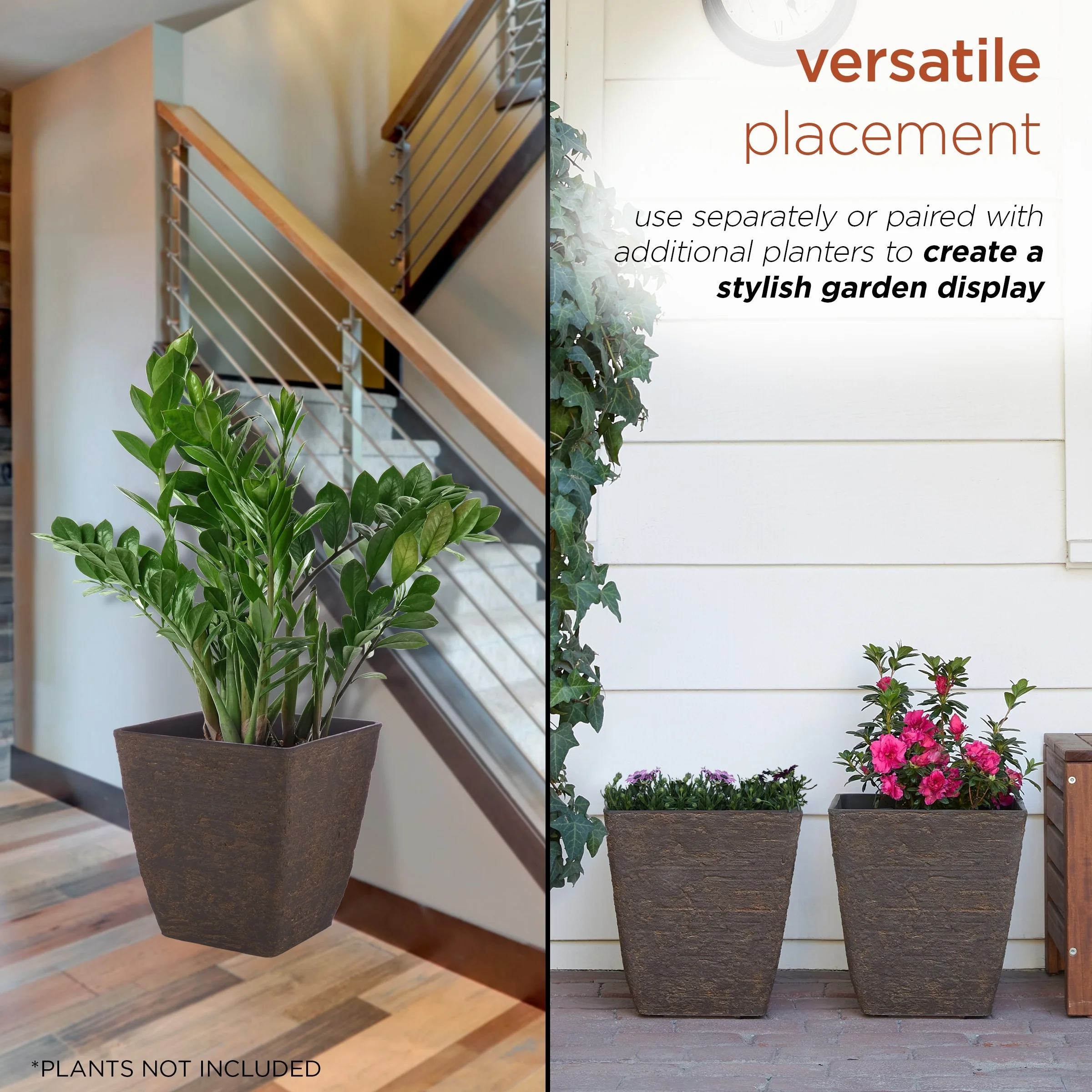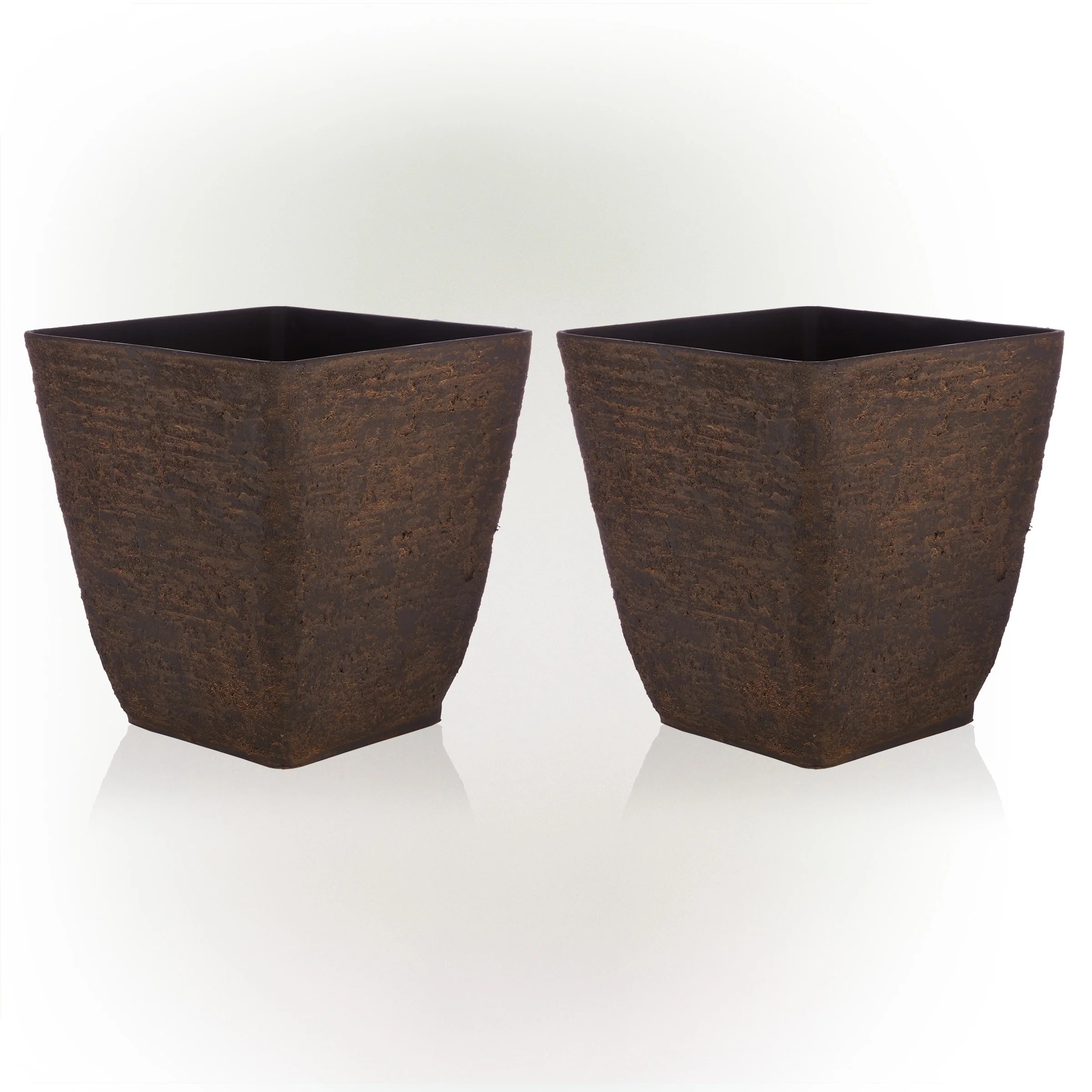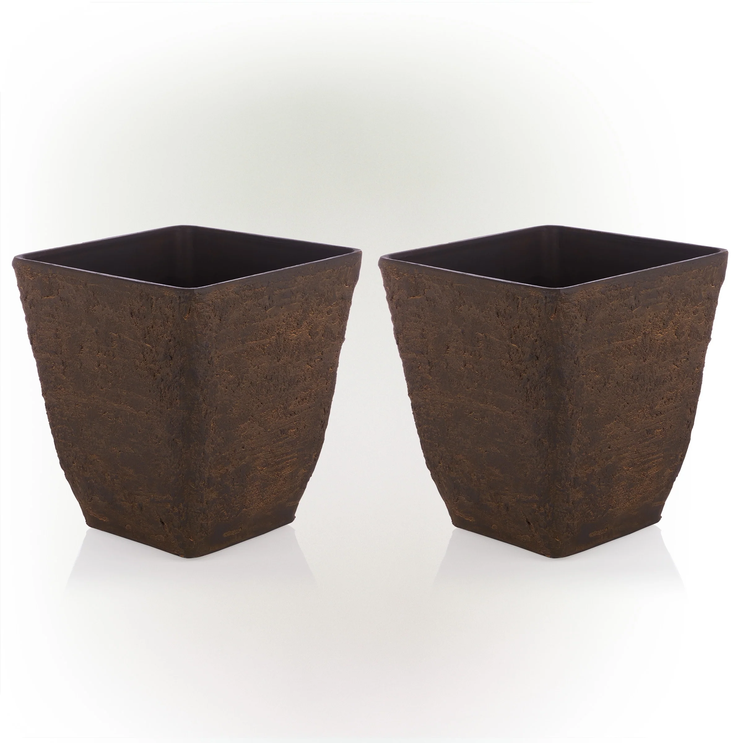 Alpine Corporation Indoor/Outdoor Stone-look Squared Planter, Large, Brown (Set of 2)