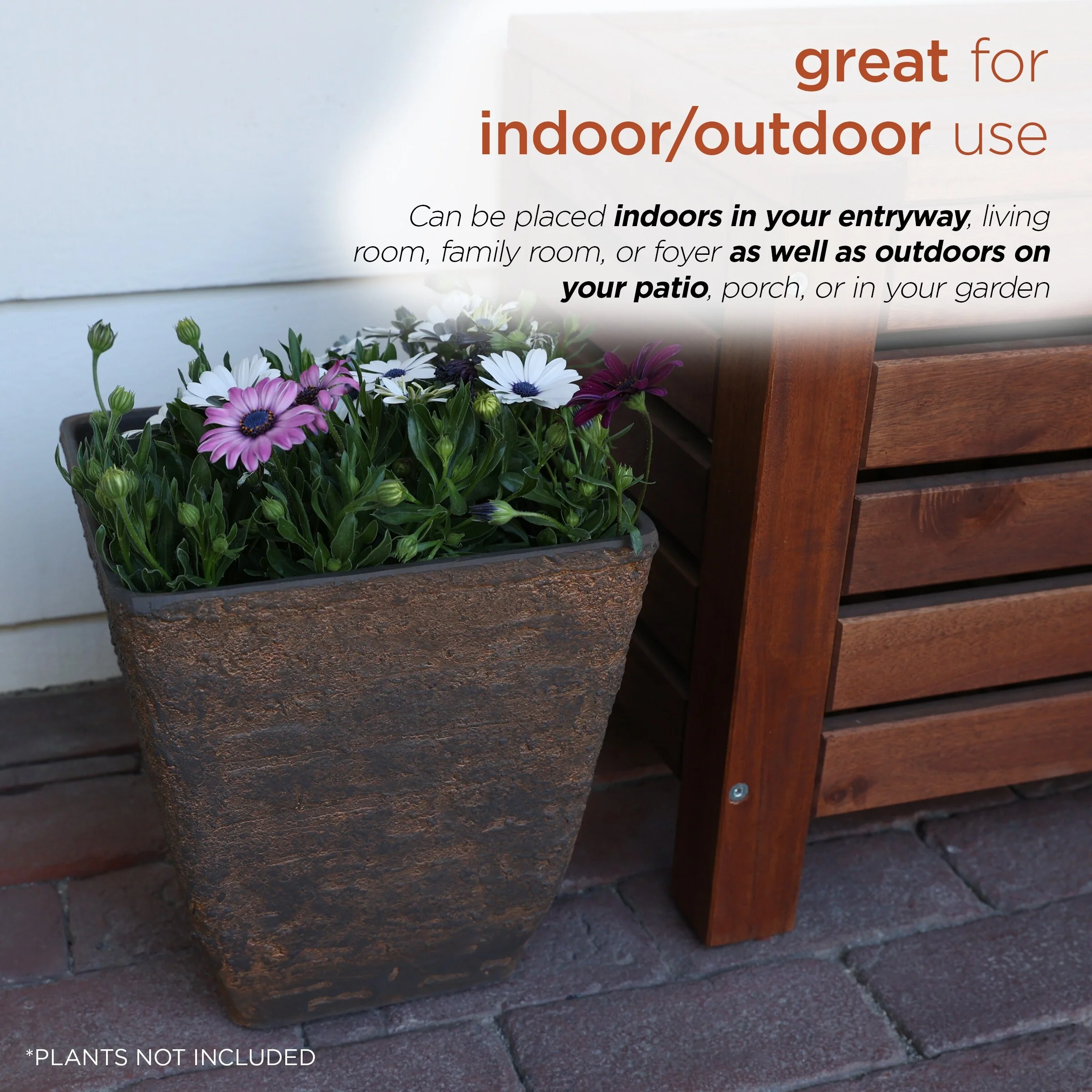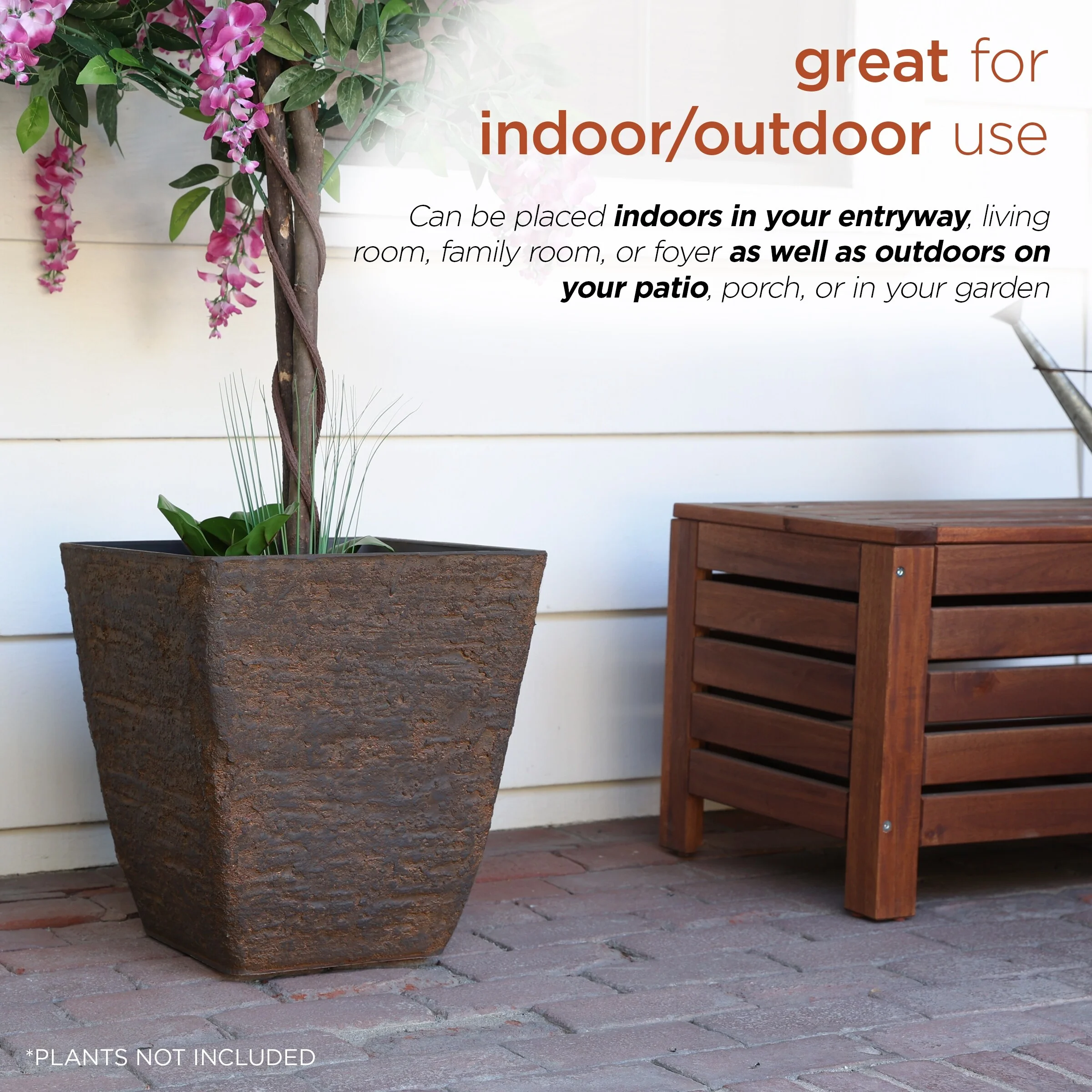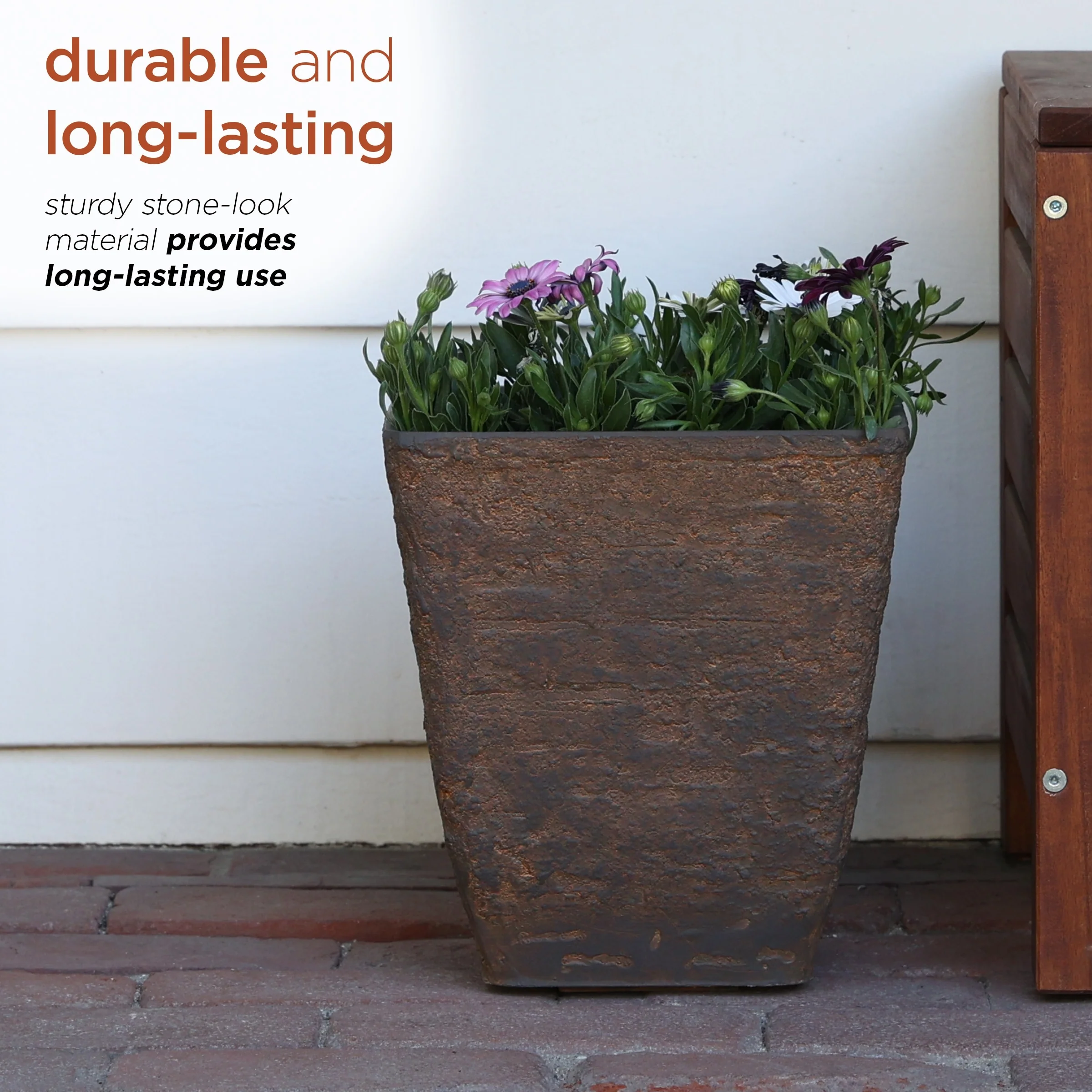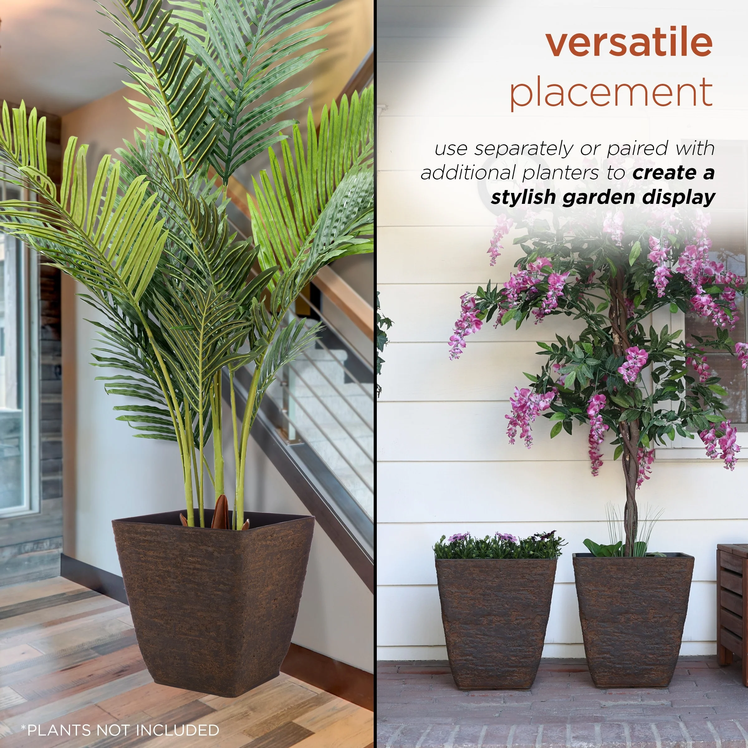 Alpine Corporation Indoor/Outdoor Stone-look Squared Planter, Large, Brown (Set of 2)