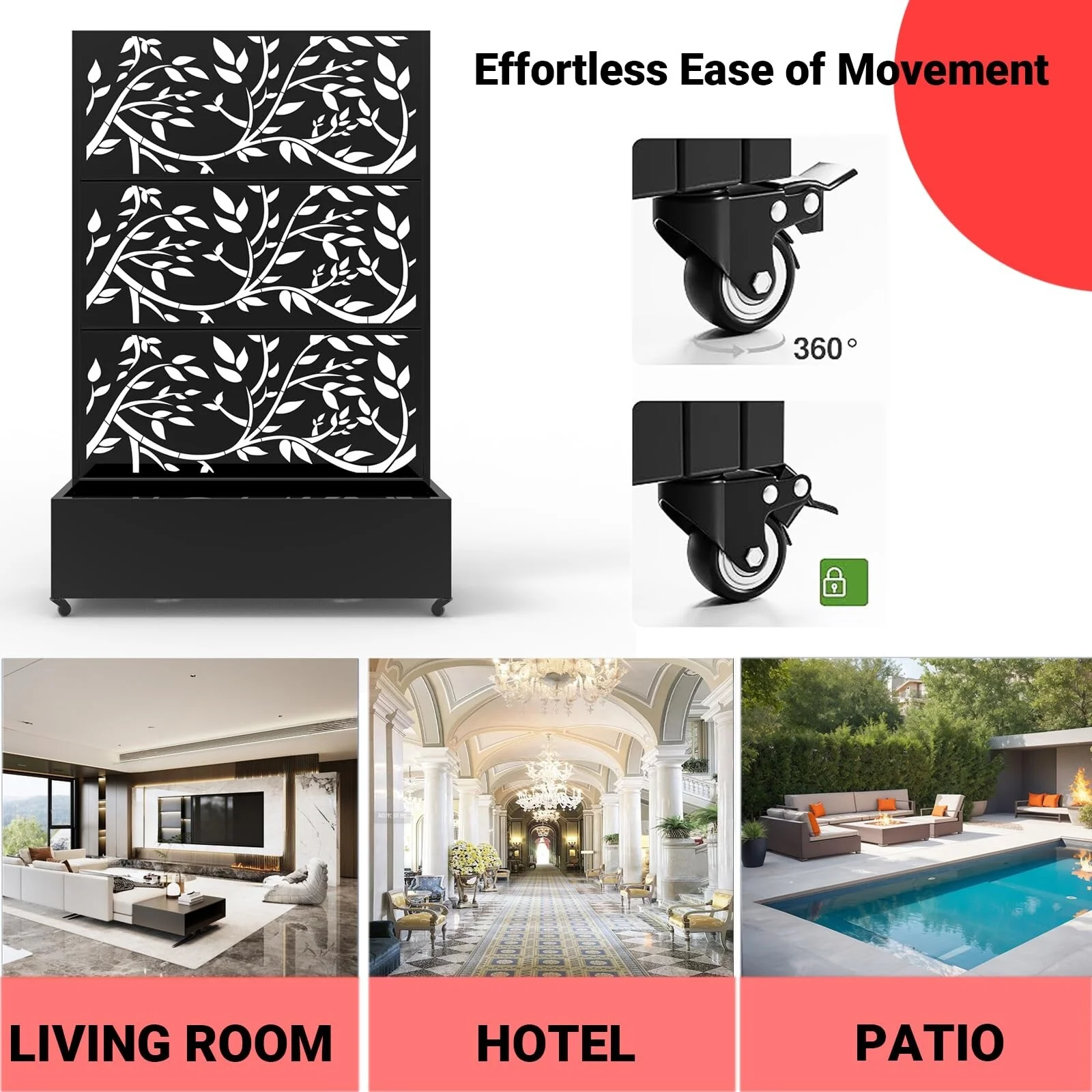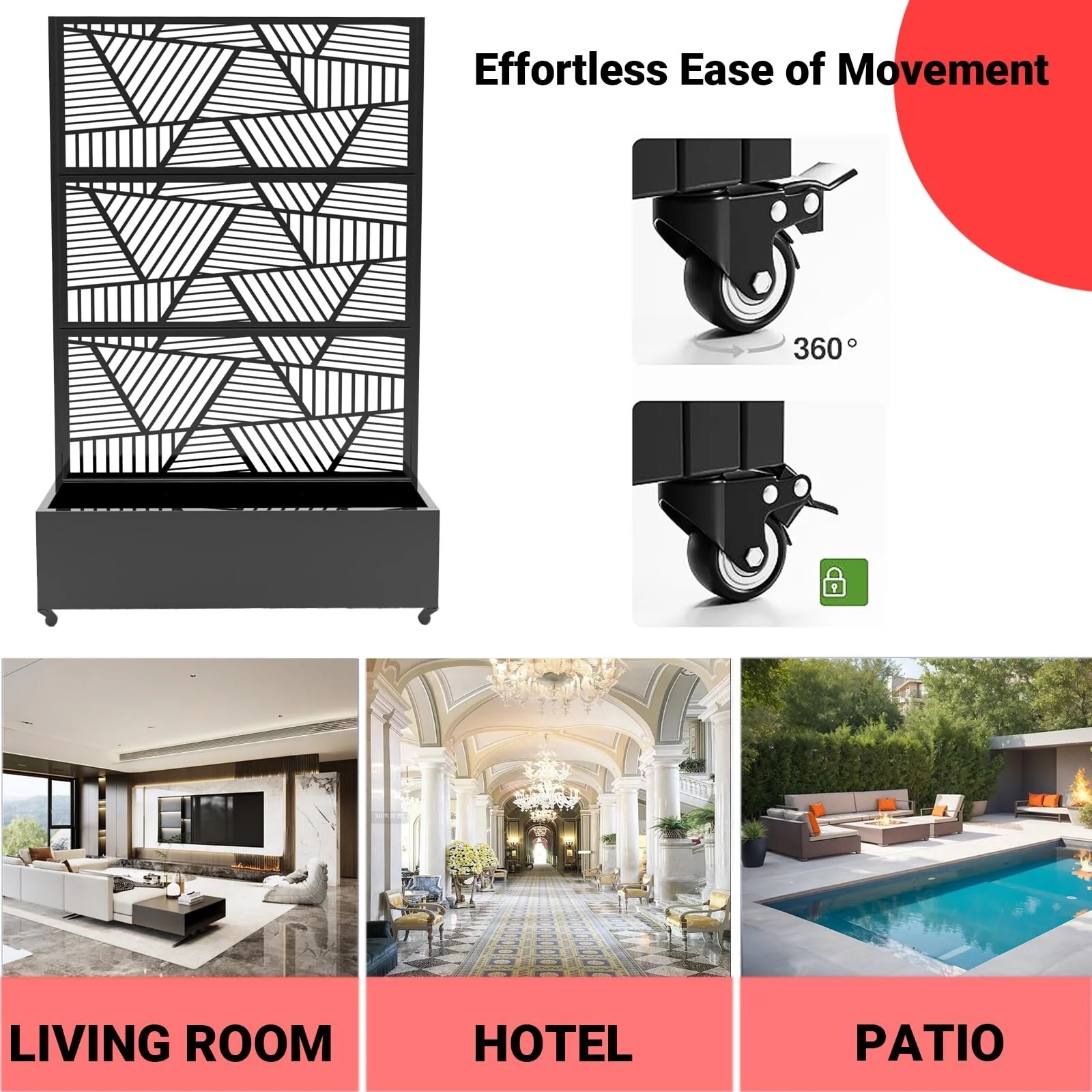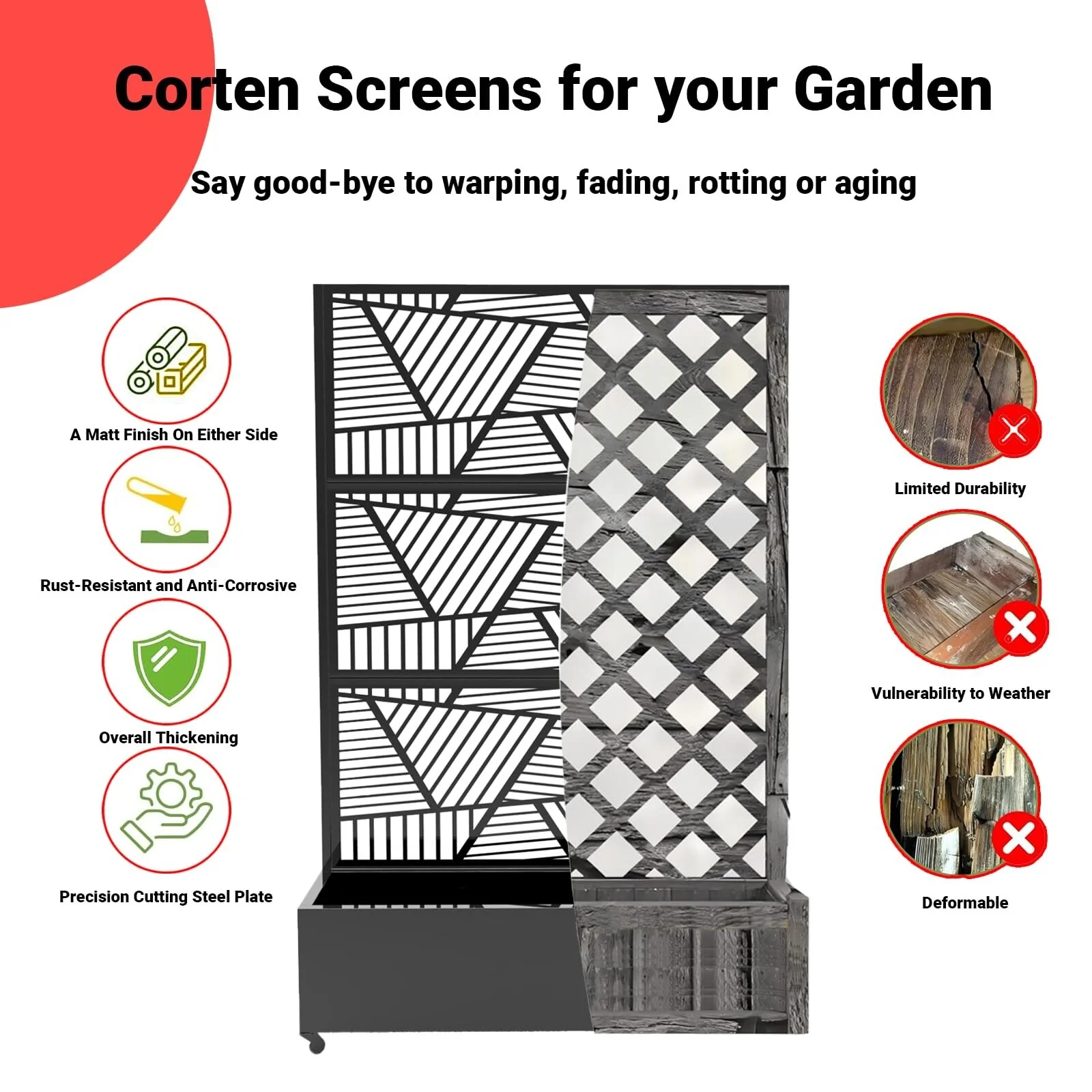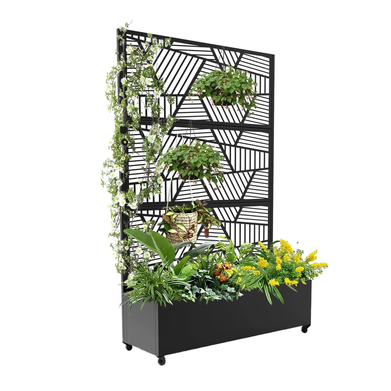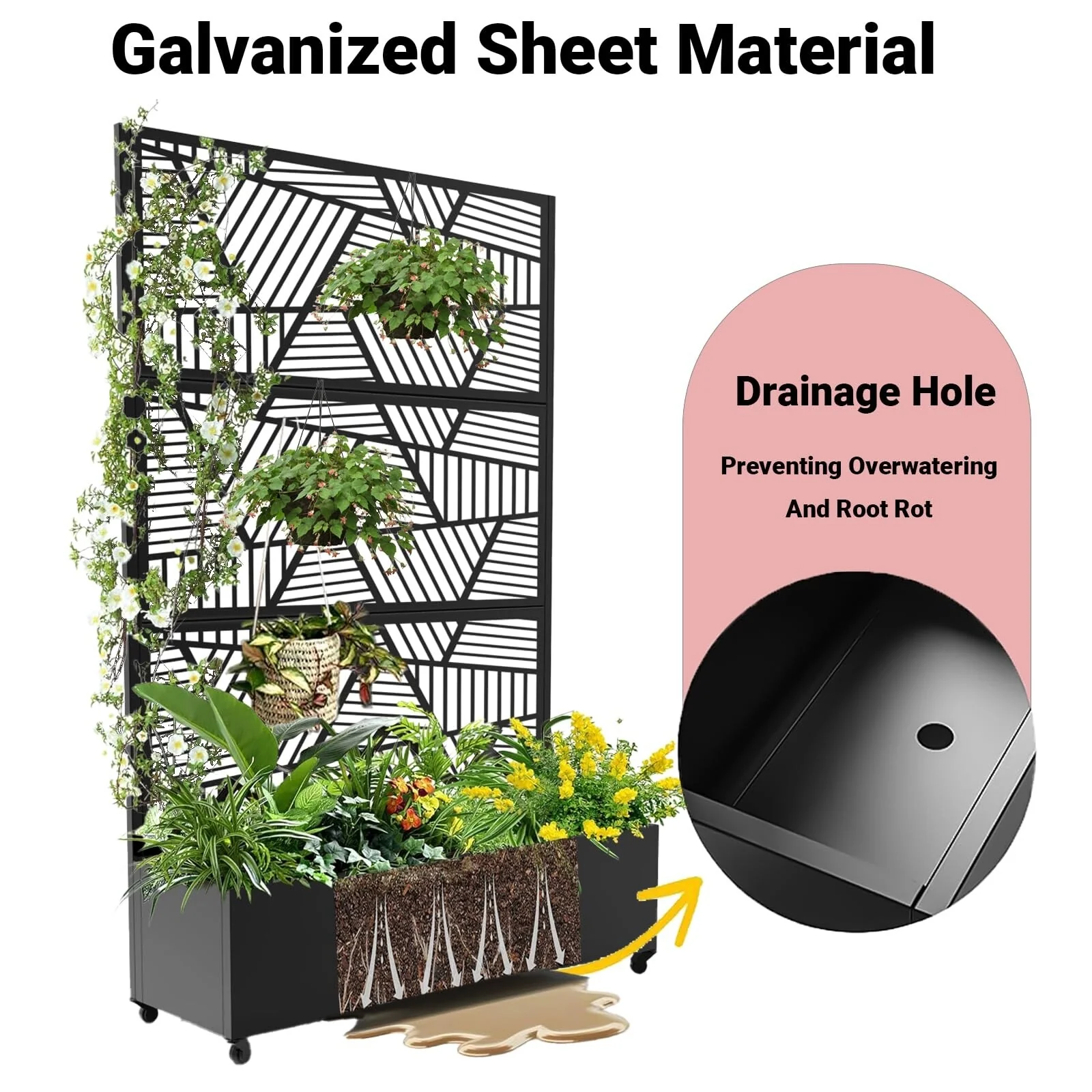 Metal Privacy Screen with Wheels �C Galvanized Steel Garden Trellis & Planter Box for Climbing Plants/Vines